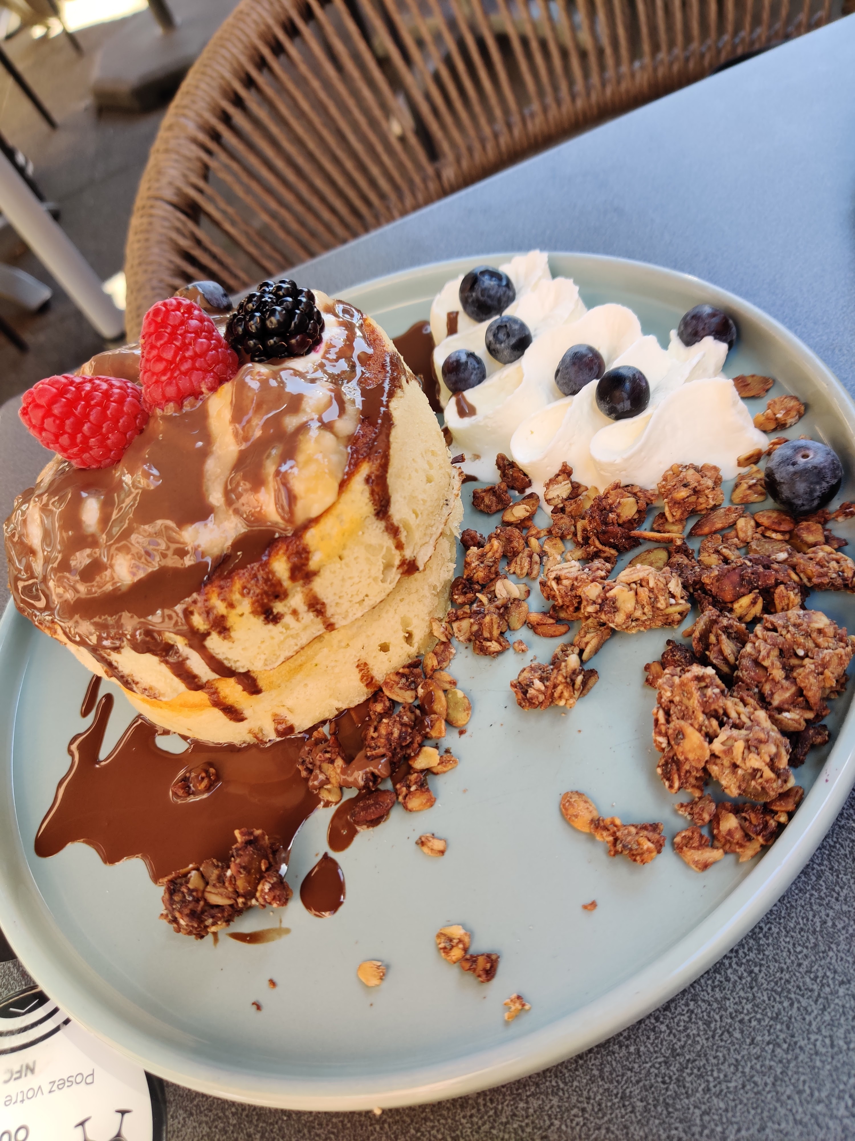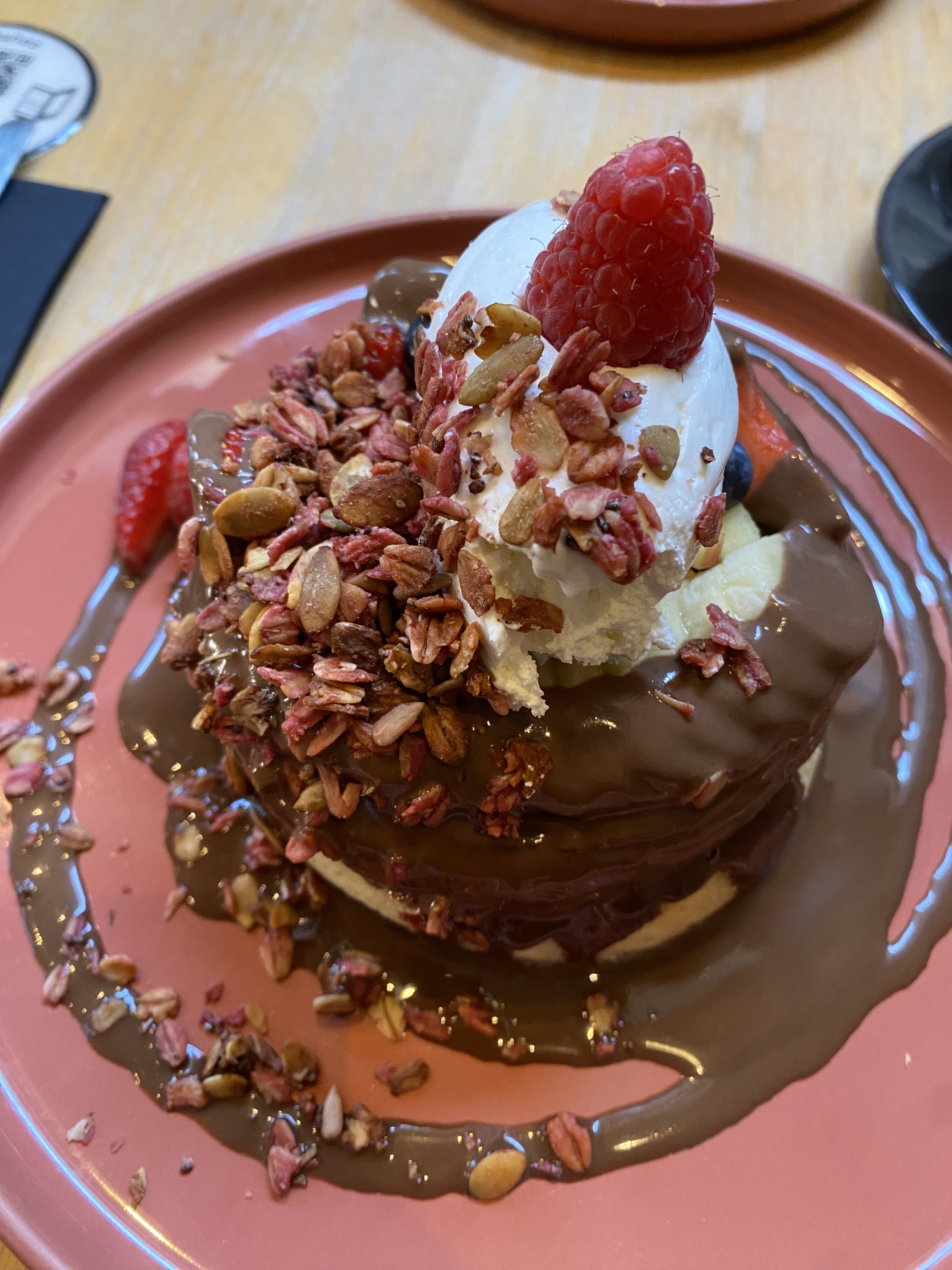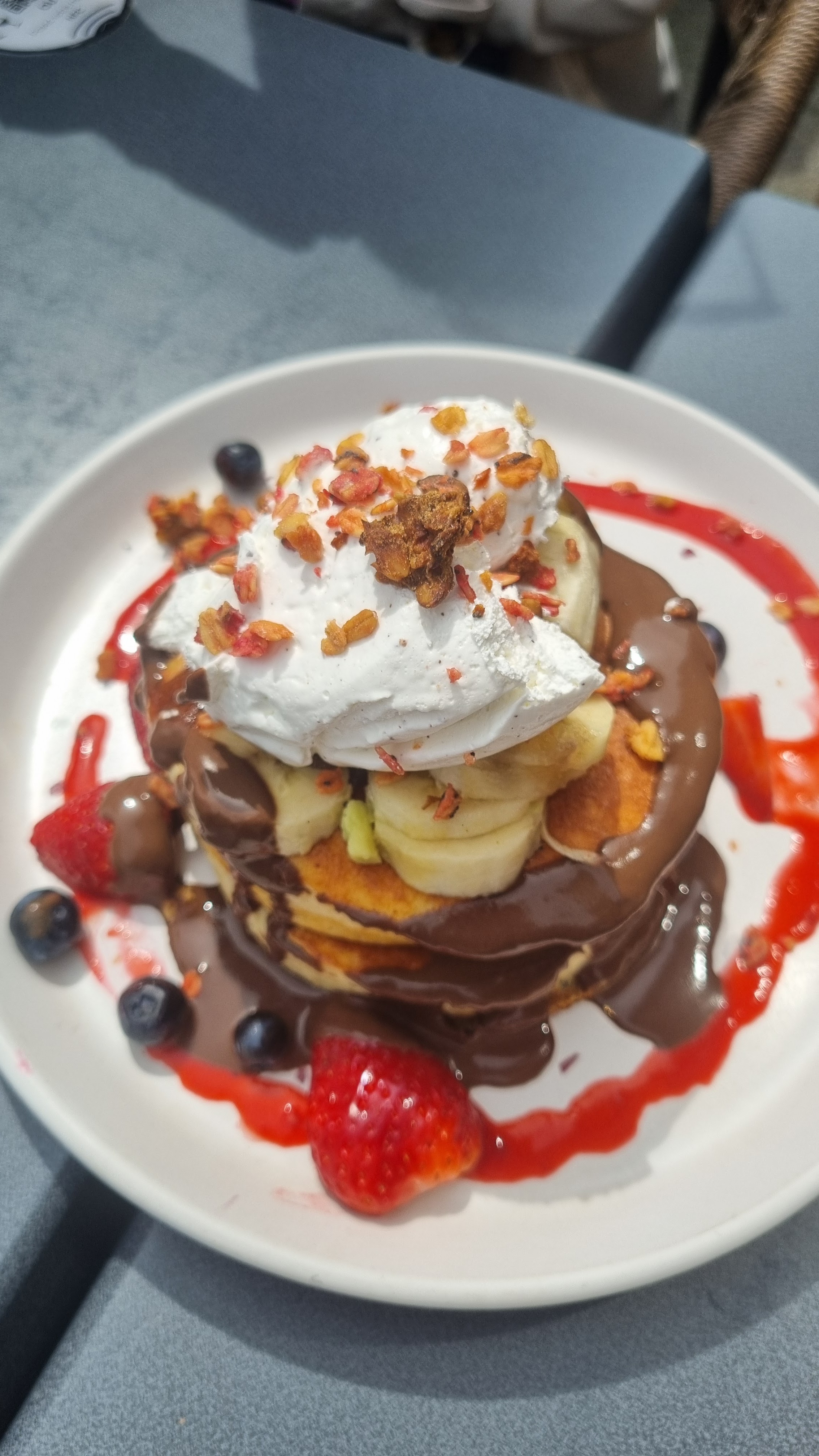 Tout simplement succulent ! Des pancakes généreux, sucré et épais. Le mélange avec les fruits rouges est délicieux et le cadre sympathique. Prix légèrement élevé mais personnel très sympa et à l’écoute des clients.
