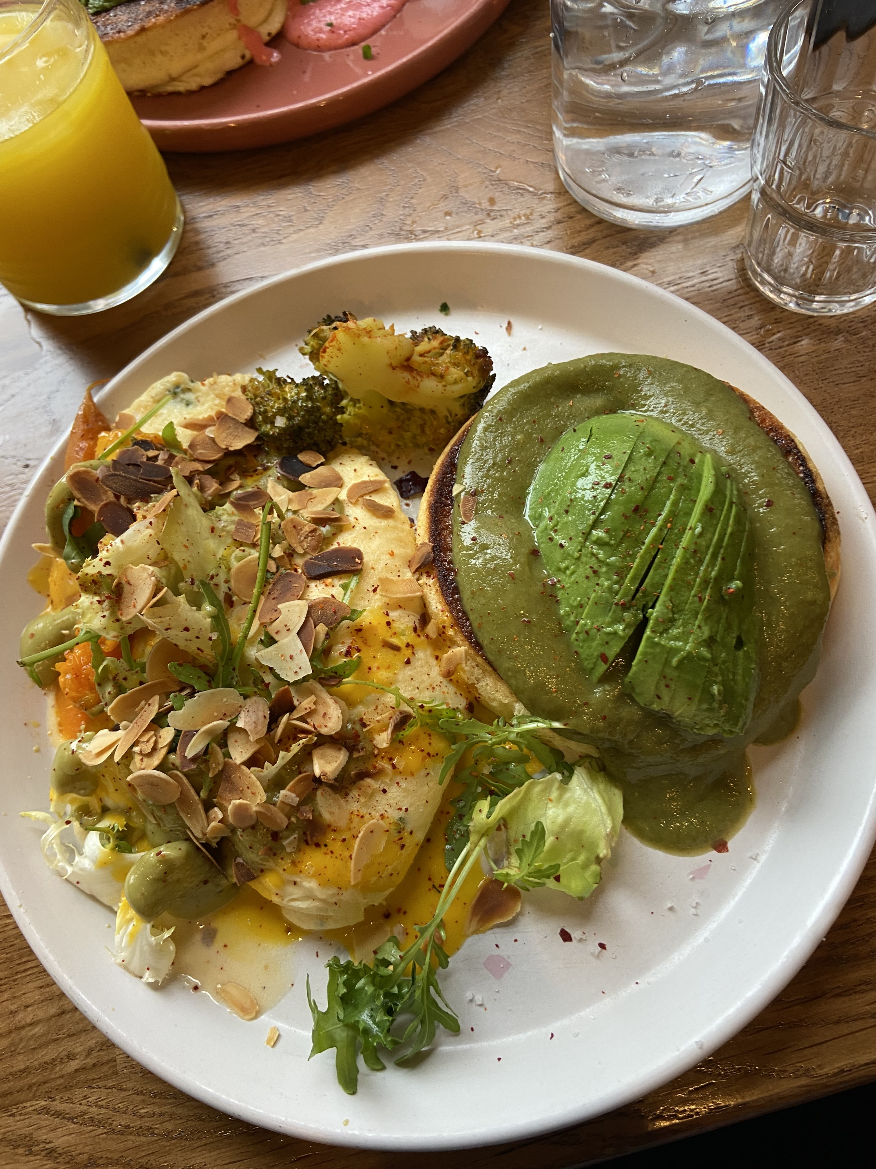 Vraiment délicieux ! Le cadre est juste trop beau, la décoration est pensée avec goût. J'ai pris les pancakes salés avec Halloumi/avocat/omelette et poireaux : une tuerie ! Hyper copieux aussi,on en a pour son argent 😊 Je reviendrai pour goûter le sucré car ça m'a bien calé.