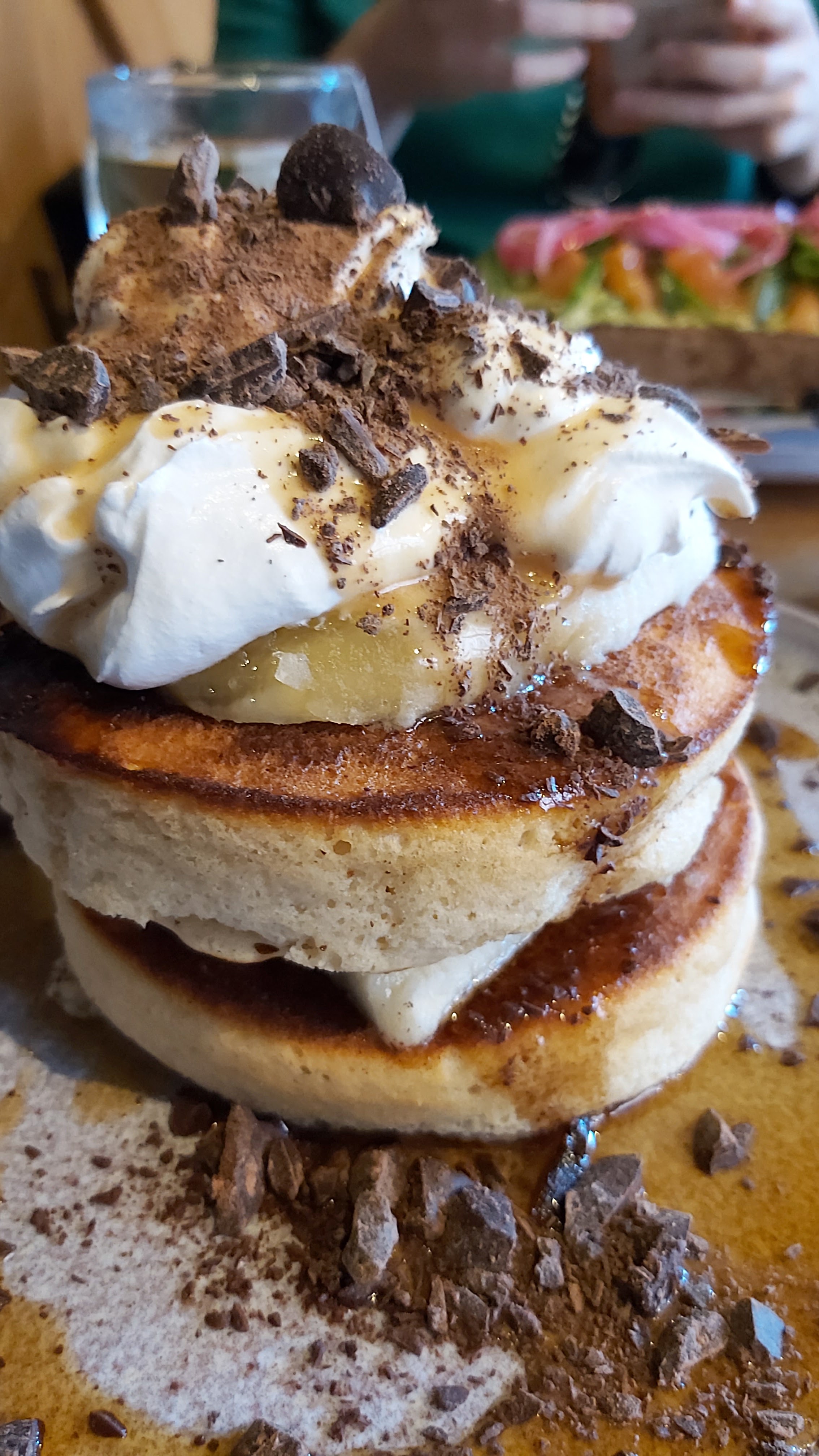 Pancakes à tomber. Le cadre est très classe. Rien à redire c était parfait.
