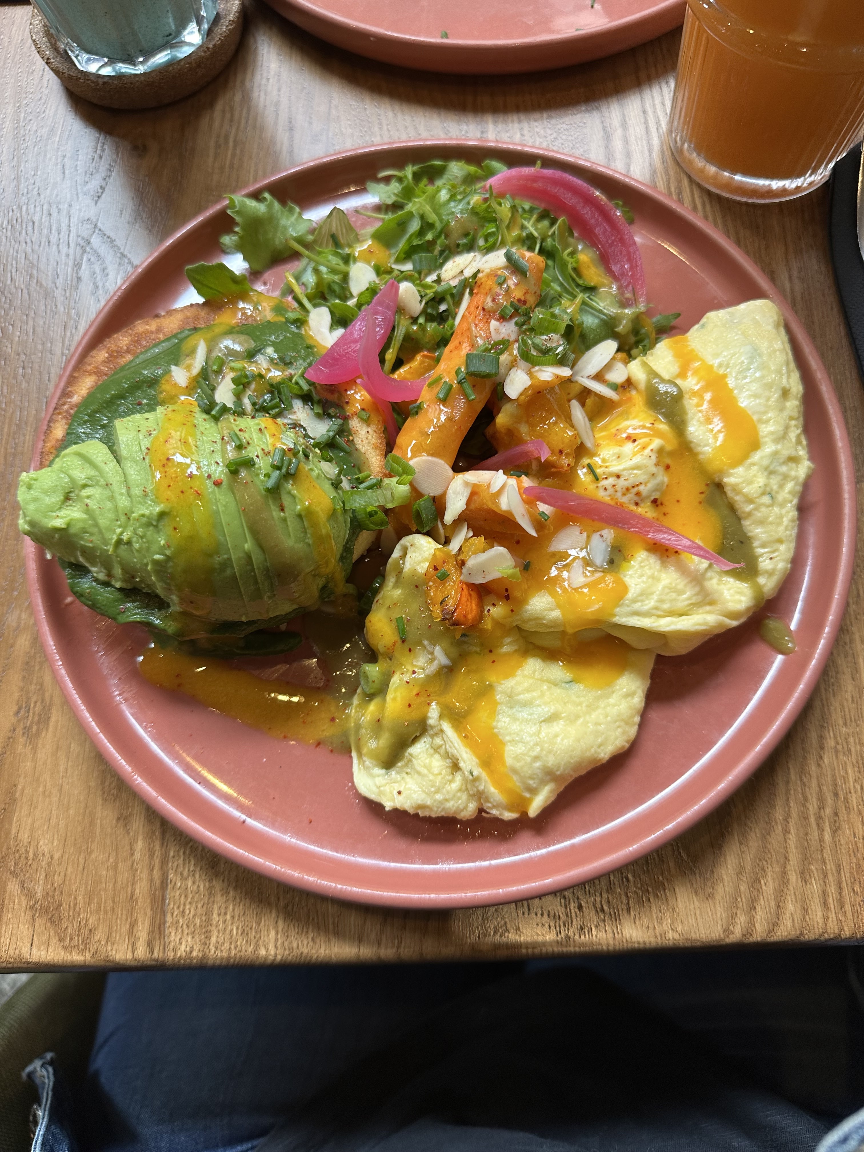 beaucoup de choix (notamment végétariens et vegan), associations inhabituelles et surprenantes, portions généreuses... parfait pour un brunch!