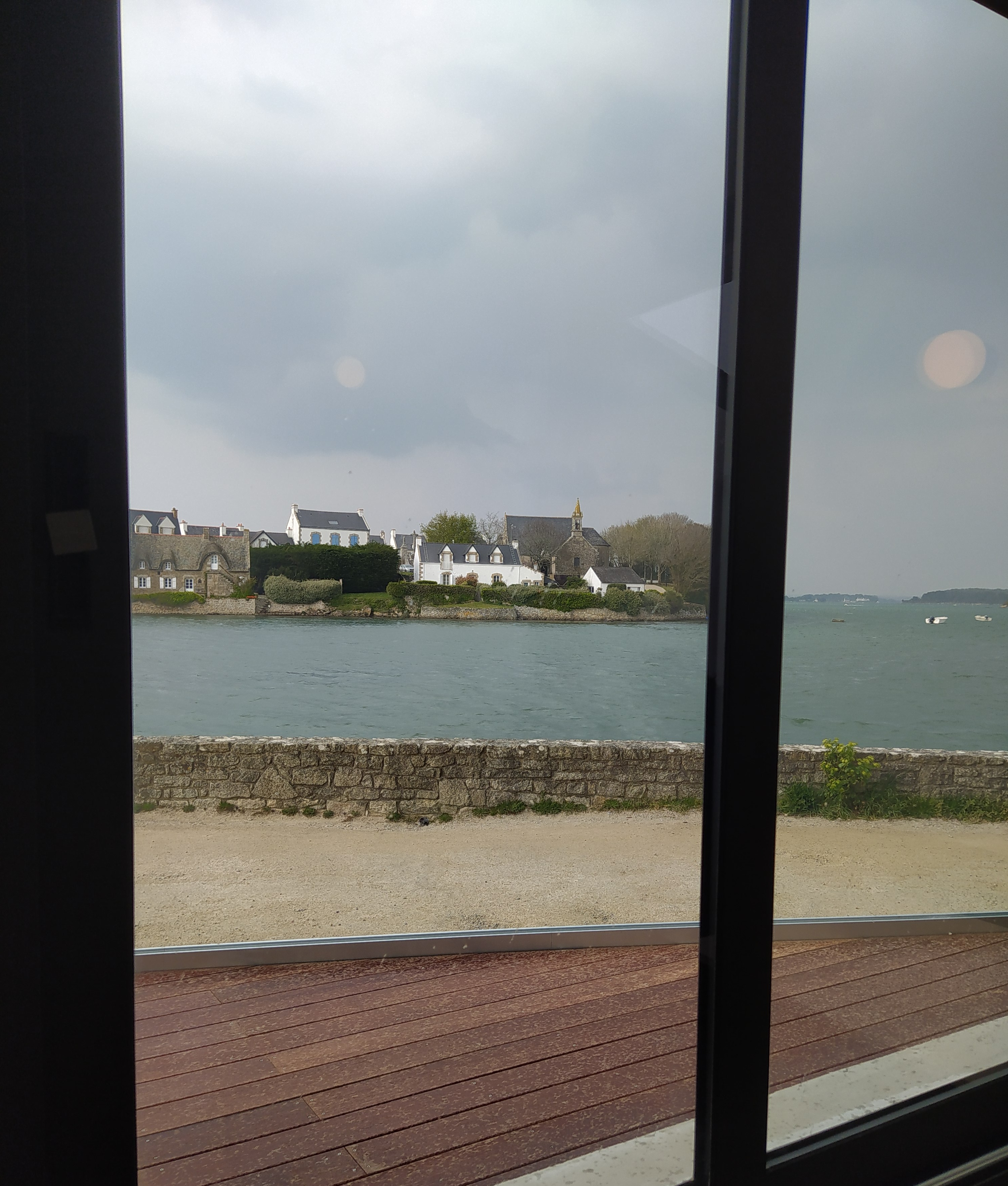 Il est indispensable de réserver car l'endroit est désormais prisé. Point de vue magnifique sur l'île cado et la rivière d'Etel.