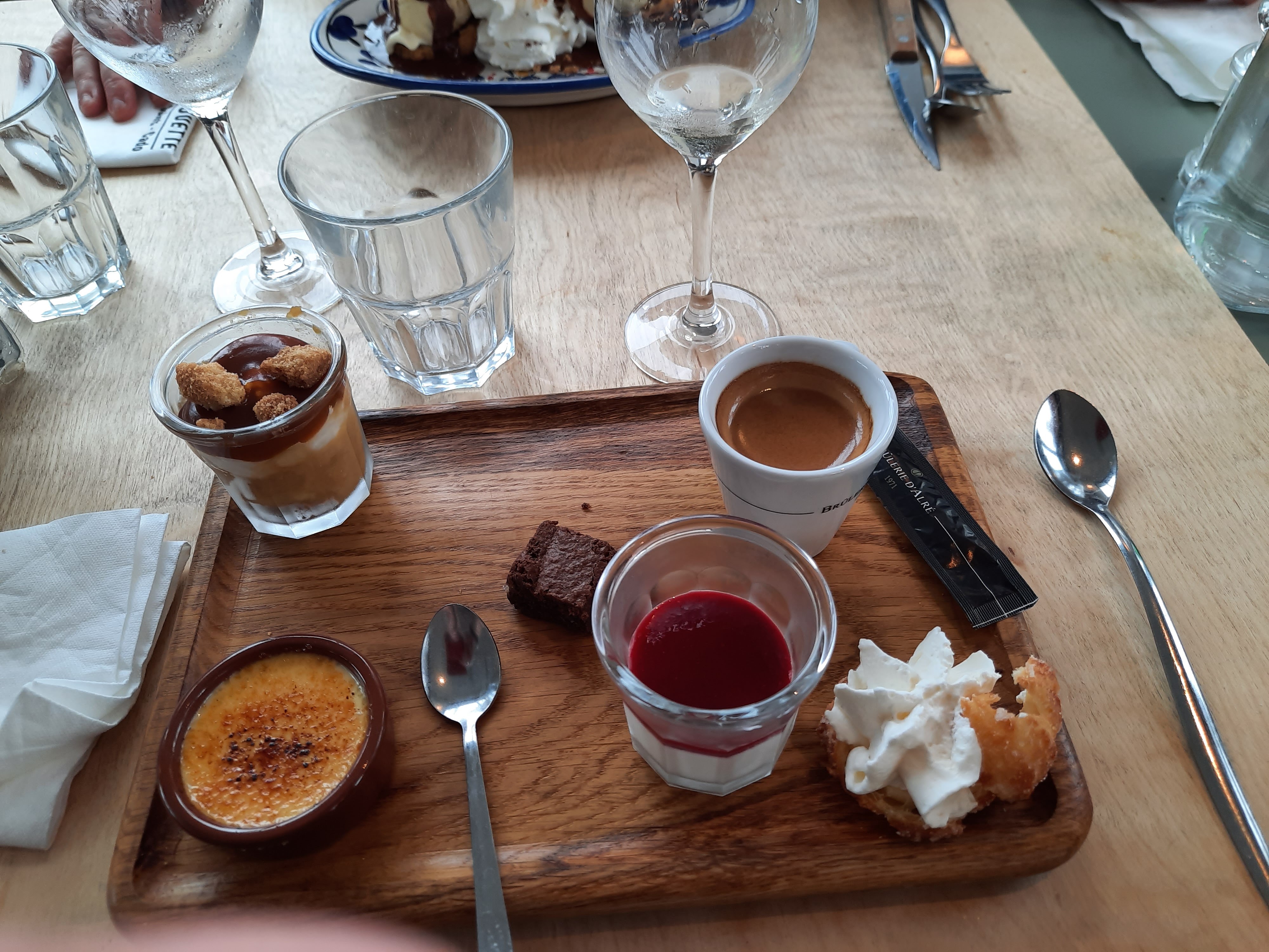 bon repas 👍 (moules/frites) puis crêpes aux pommes, à conseiller Le seul hic, le service .. :-( (fait par des non professionnels... ) qui ne fond que gesticuler dans tous les sens ... service hors sujet.... Bref pour le principal ça reste correct et bonne amabilité de la dame qui doit être la patronne :-)