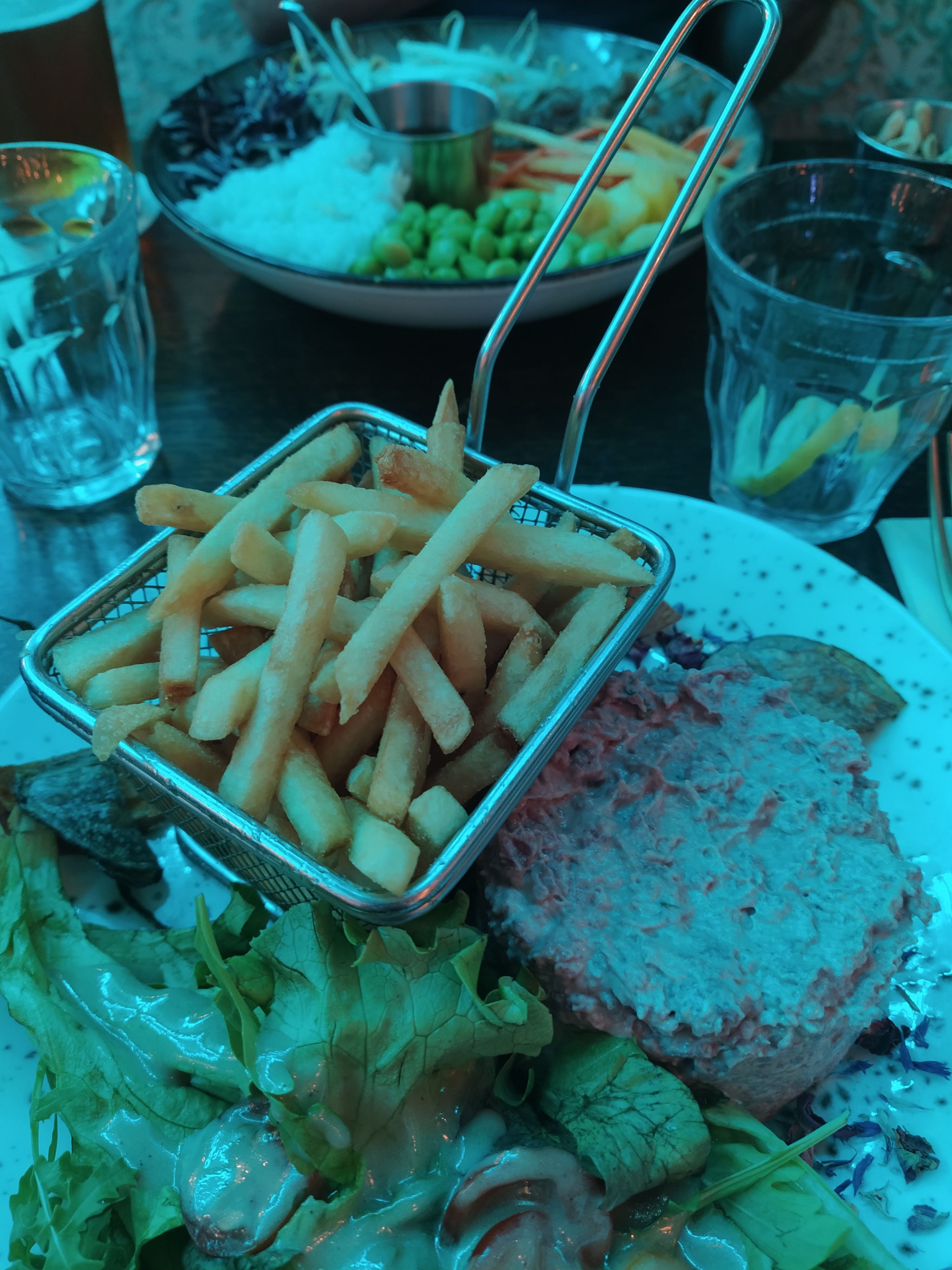 La décoration ne fait pas tout, très mauvais rapport qualité prix sur le secteur (calamars, fish and chips), le burger végétarien était correct. Allez plutôt vers la rue de la gaieté Montparnasse pour trouver de meilleurs restaurants.