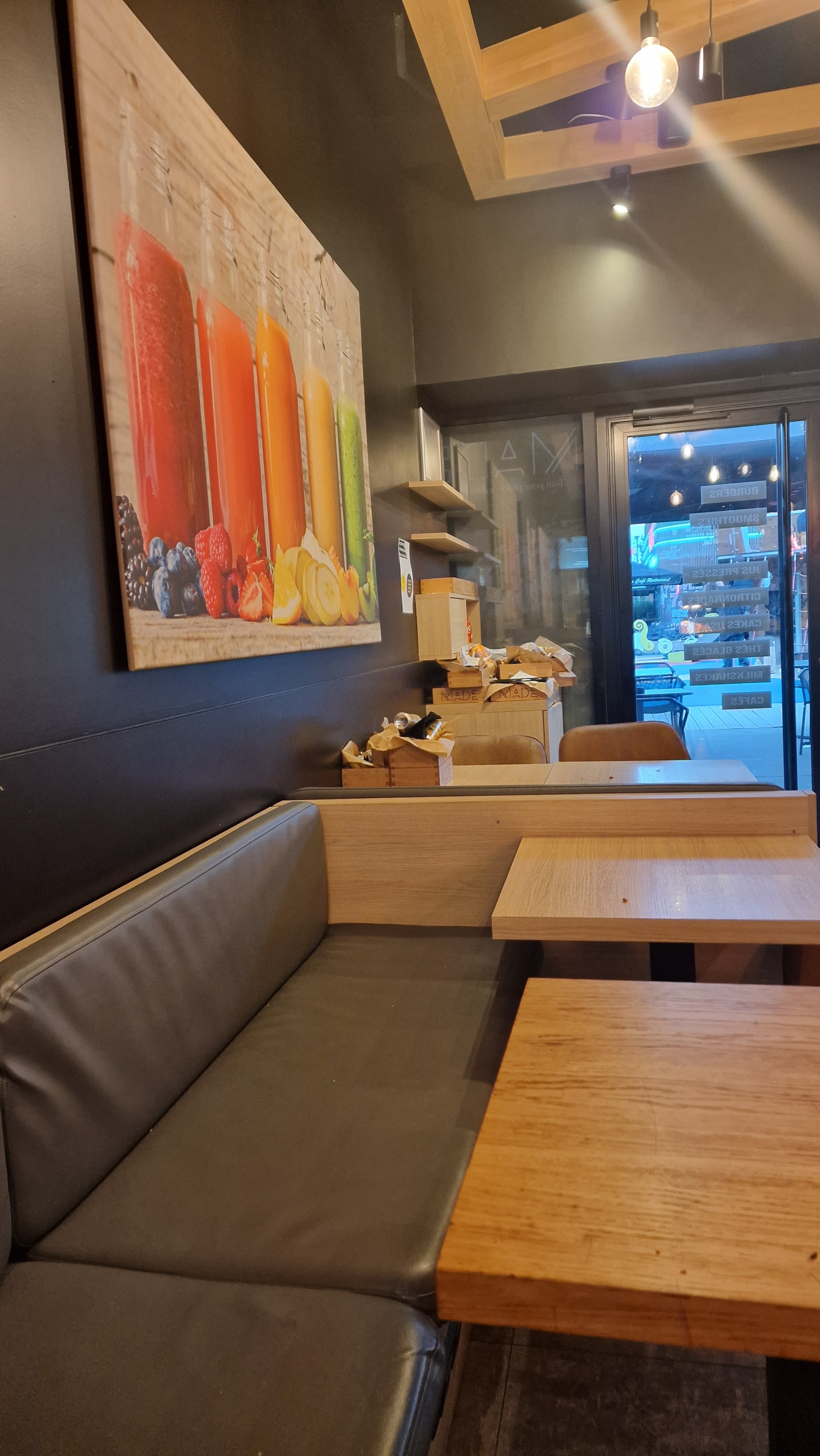 Des bons burgers, frites et smoothies. Programme de points intéressant. Les lieux sont propres et accueillants. Cependant à plusieurs reprises des oublis dans les commandes à emporter. Bien que l'entreprise se montre bienveillante et fait des gestes commerciaux dans cette situation, mais c'est un peu fatiguant de revenir à la maison et s'apercevoir qu'il manque qqch, surtout à plusieurs reprises...