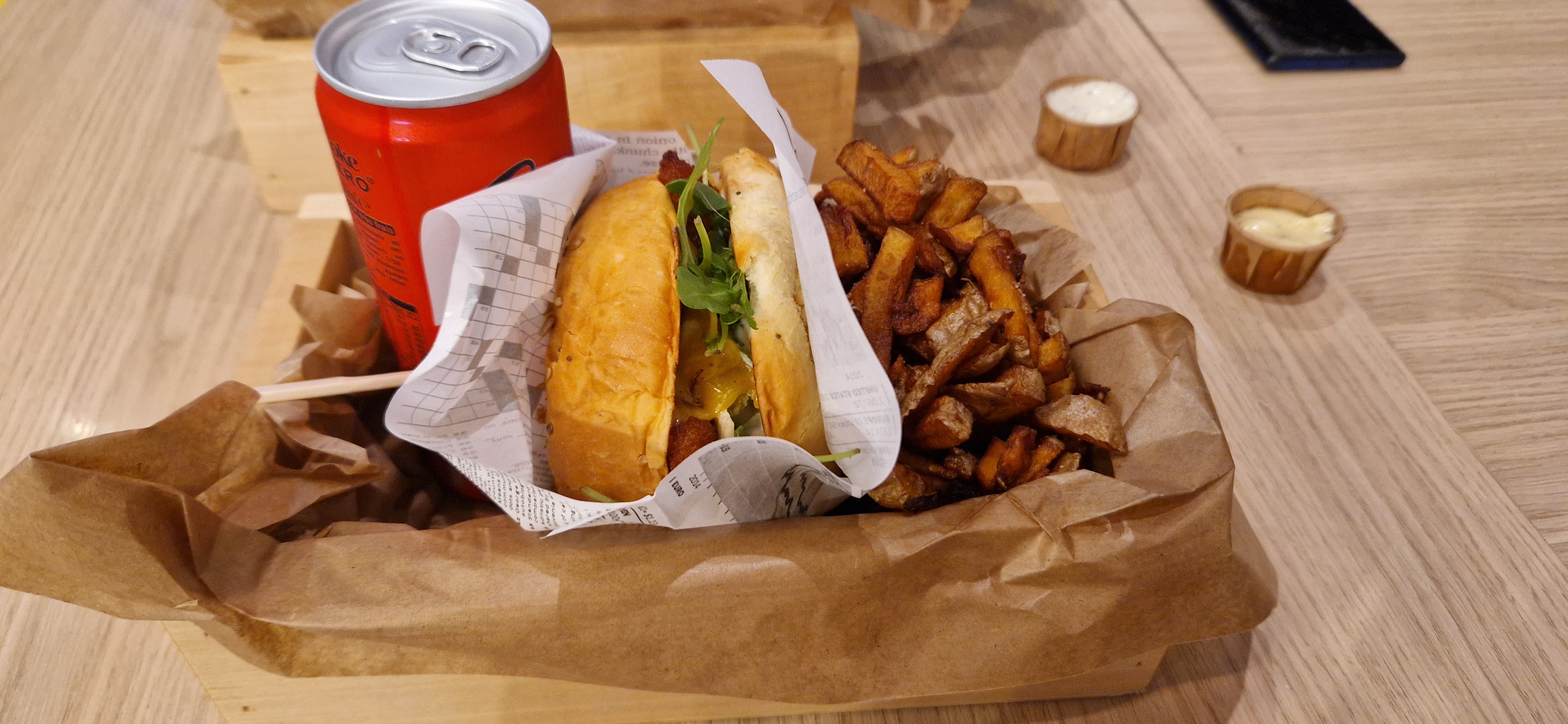Le concept est sympa, la commande rapide ainsi que la distribution. Burgers originals bien complet et délicieux, frites et sauce maison. Le tout servi dans la caissette avec la boisson...