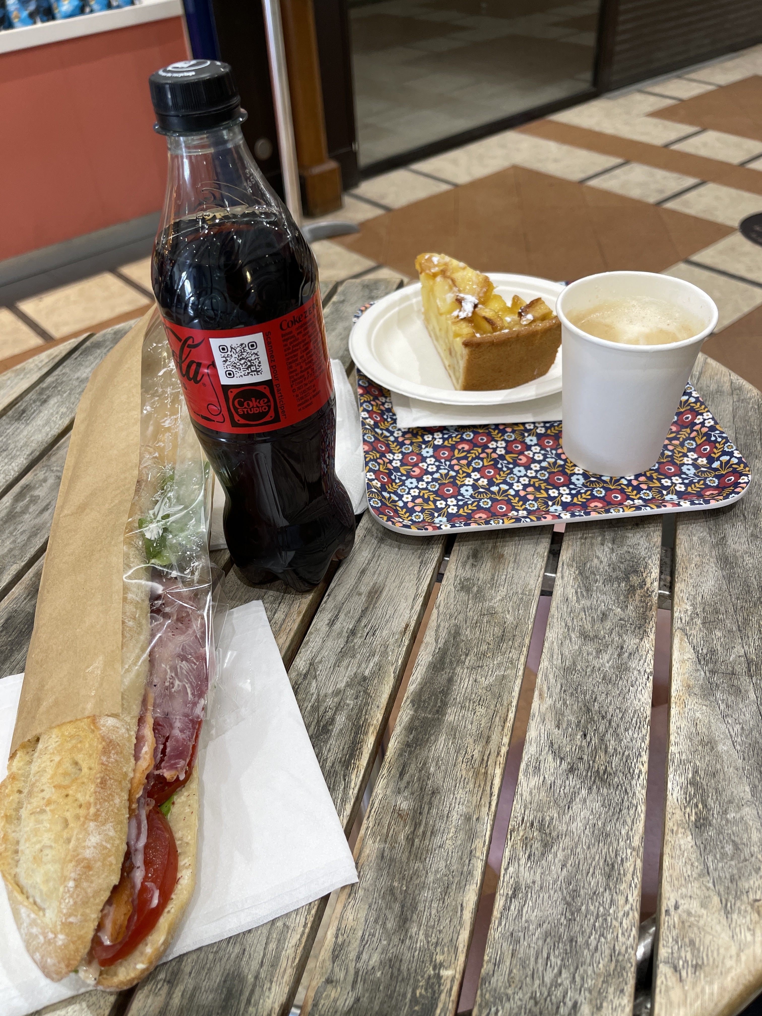 C'est la première fois que j'arrive ici et j'ai été surpris par de bons sandwichs et une tarte aux pommes avec une bouchée de pêches et de pommes ! Le personnel était très et facile à communiquer en anglais. Fortement recommandé avant et après la visite de Versailles ~