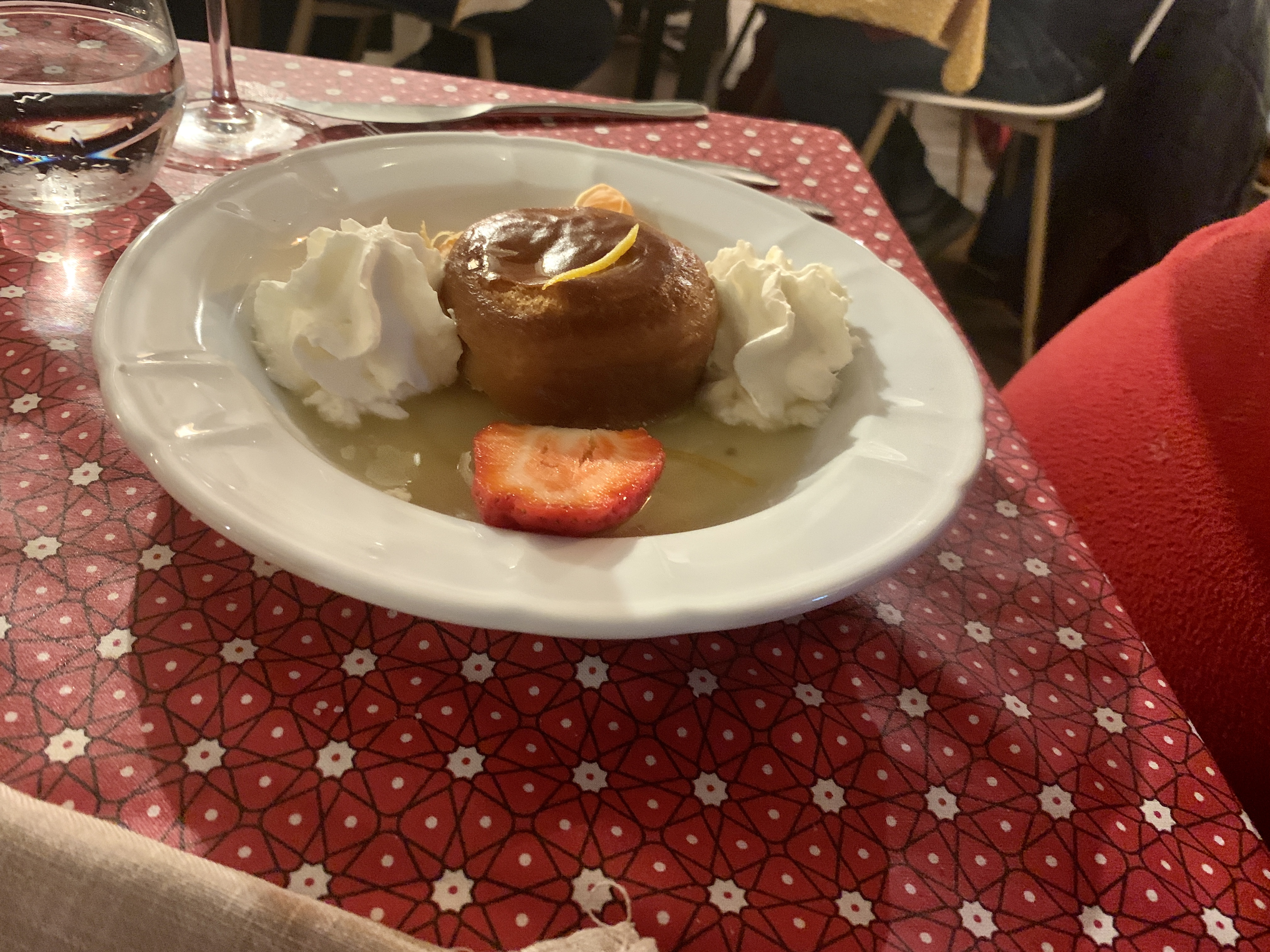 Jardin charmant, cuisine . savoureuse.... Sauf que..... Le service très très long... Et serveuse avec la scoumoune .. Cerise sur le gâteau,e le dessert me tombe sur la tête ou presque... Arrosée de limoncello et du sirop du baba... Y a mieux comme service