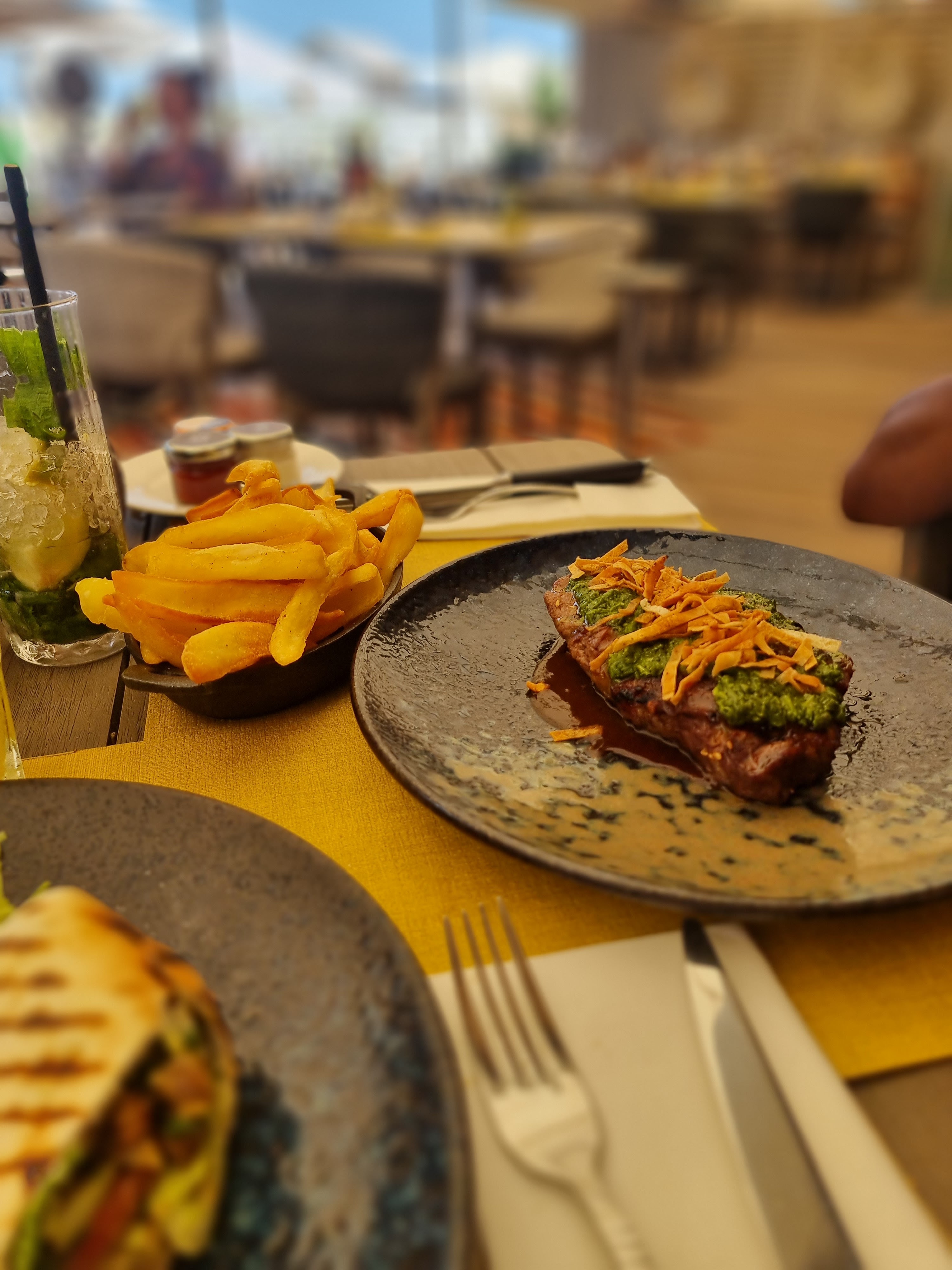 L’ambiance et le cadre sont très biens, le service également rien à reprocher mais dans notre week-end, c’était le restaurant que nous avons aimé loin niveau nourriture, et très très cher pour rien d’exceptionnel… les frites à 7€ sont bien moins bonnes que d’autres petits restaurant moins chers, le café a 5€ j’ai trouvé ça abusé pour un café vraiment pas ouf, je n’ai pas aimé mon french aux épinard, sans goût… la brochette : 39€… Ça ne me dérange pas quand la note est un peu élevée lorsqu’on se régale, mais si c’est moins bon que partout ailleurs ça m’embête. J’étais déjà venu l’été dernier et c’était pourtant meilleur, mais le menu a changé. Pire coup de gueule pour le café a 5€, c’est un café quoi… même à Monaco où on est allé, il est moins cher.