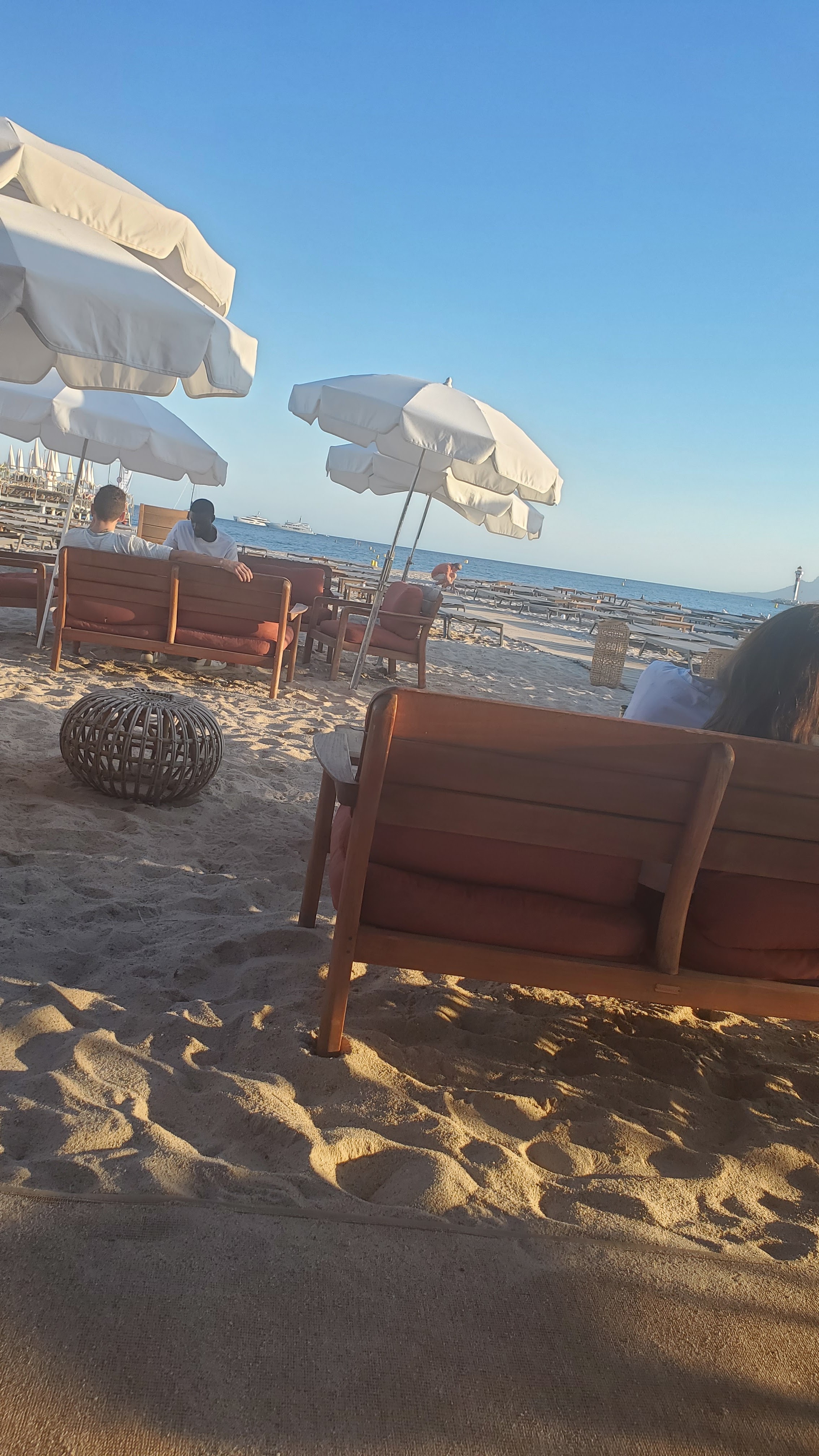 Nous avons été très bien accueilli par une équipe jeune dynamique et au petits soins. Nous avons partagé des mézzés très bons et copieux. Les cocktails sont aussi bon et bien équilibrés. Très bien installé dans le sable au couché du soleil le DJ dispense une ambiance musicale très mainstream mais agréable on s'est tremousséà plusieurs reprises. Le rapport qualité prix est cohérent avec le standing de la Croisette. En bref je recommande vivement pour l'apéritif. Nous reviendrons pour manger une fois au moins dans l'été !!!