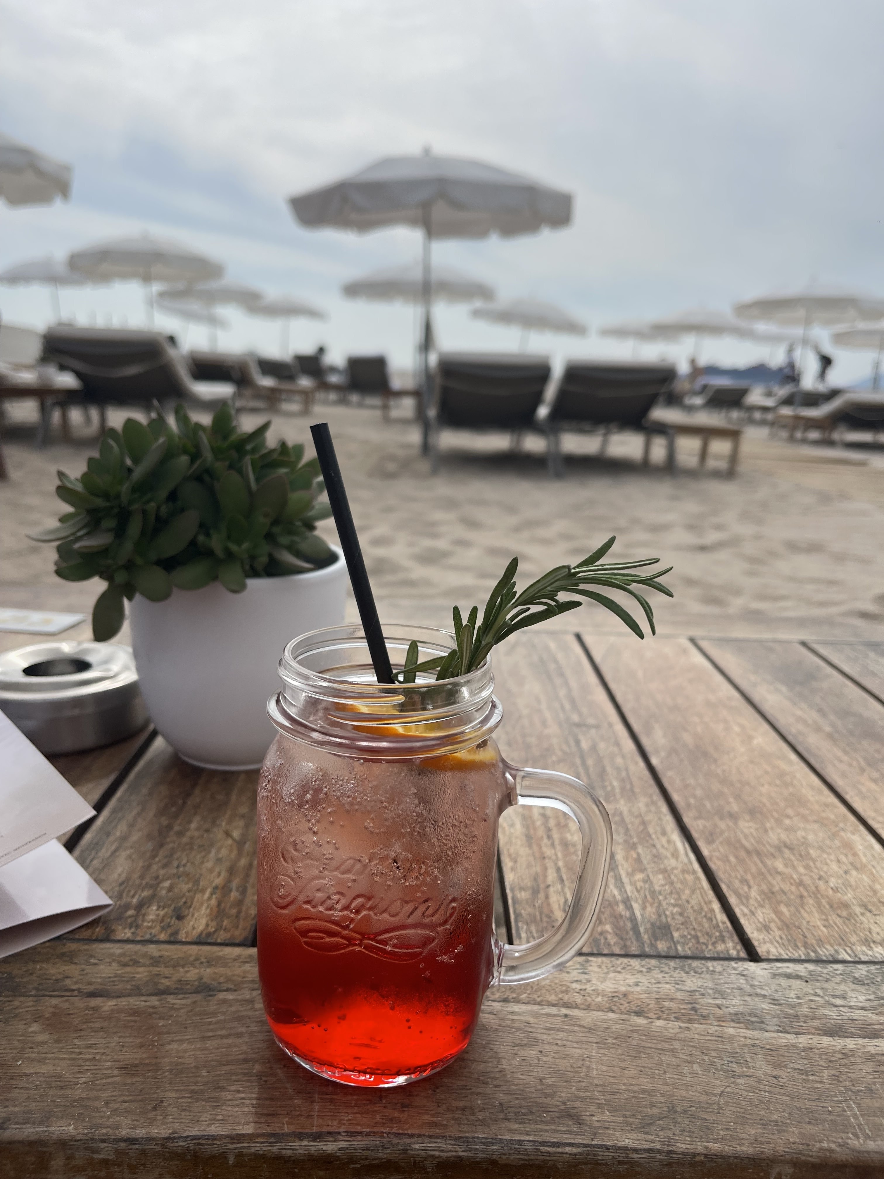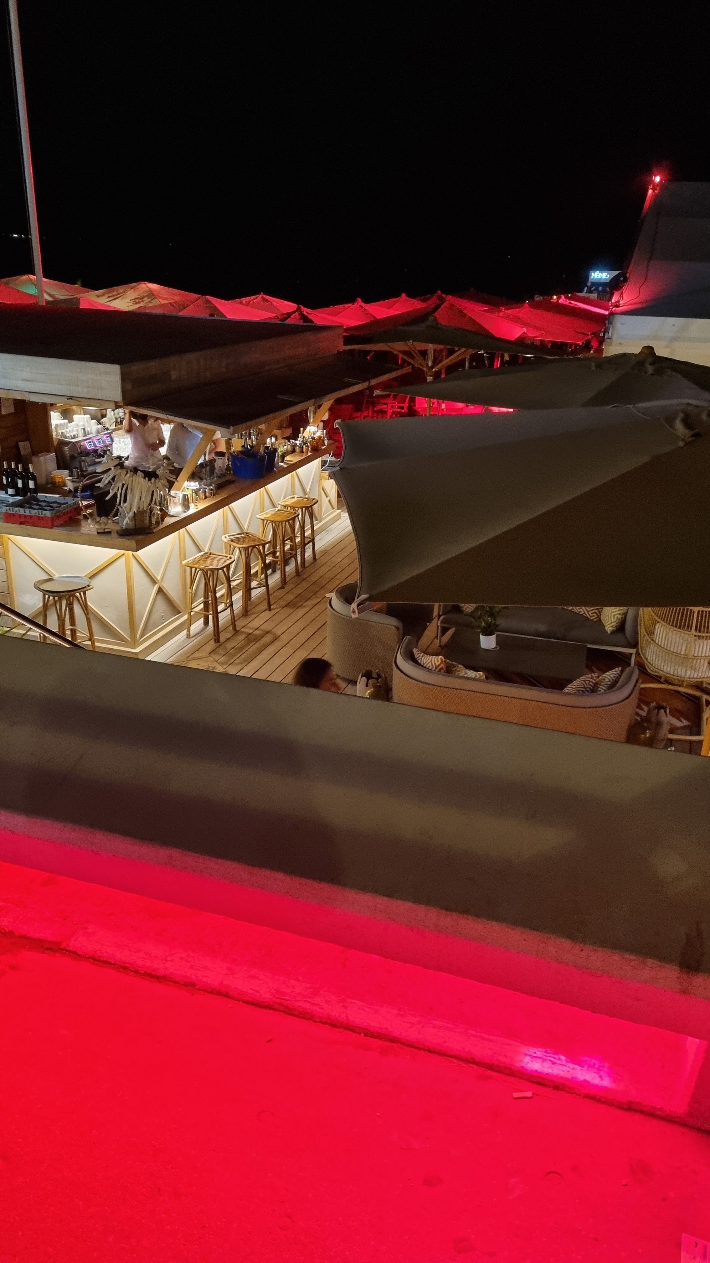 Très déçus, nous y avons bu un cocktail avec mon compagnon sur la plage devant les transats. Cocktails gorgés d’eau/glaçon, sans goût avec très peu d’alcool, le tout à un prix de 18€/cocktail. L’alcool n’a eu aucun effet, pour preuve il n’y en avait presque pas. Néanmoins, personnels très accueillants et souriants. Je ne recommande pas cet endroit pour boire un verre. Le cadre est sympa que de nom. D’autres bars spécialistes dans les cocktails sont bien meilleurs dans le centre de Cannes.