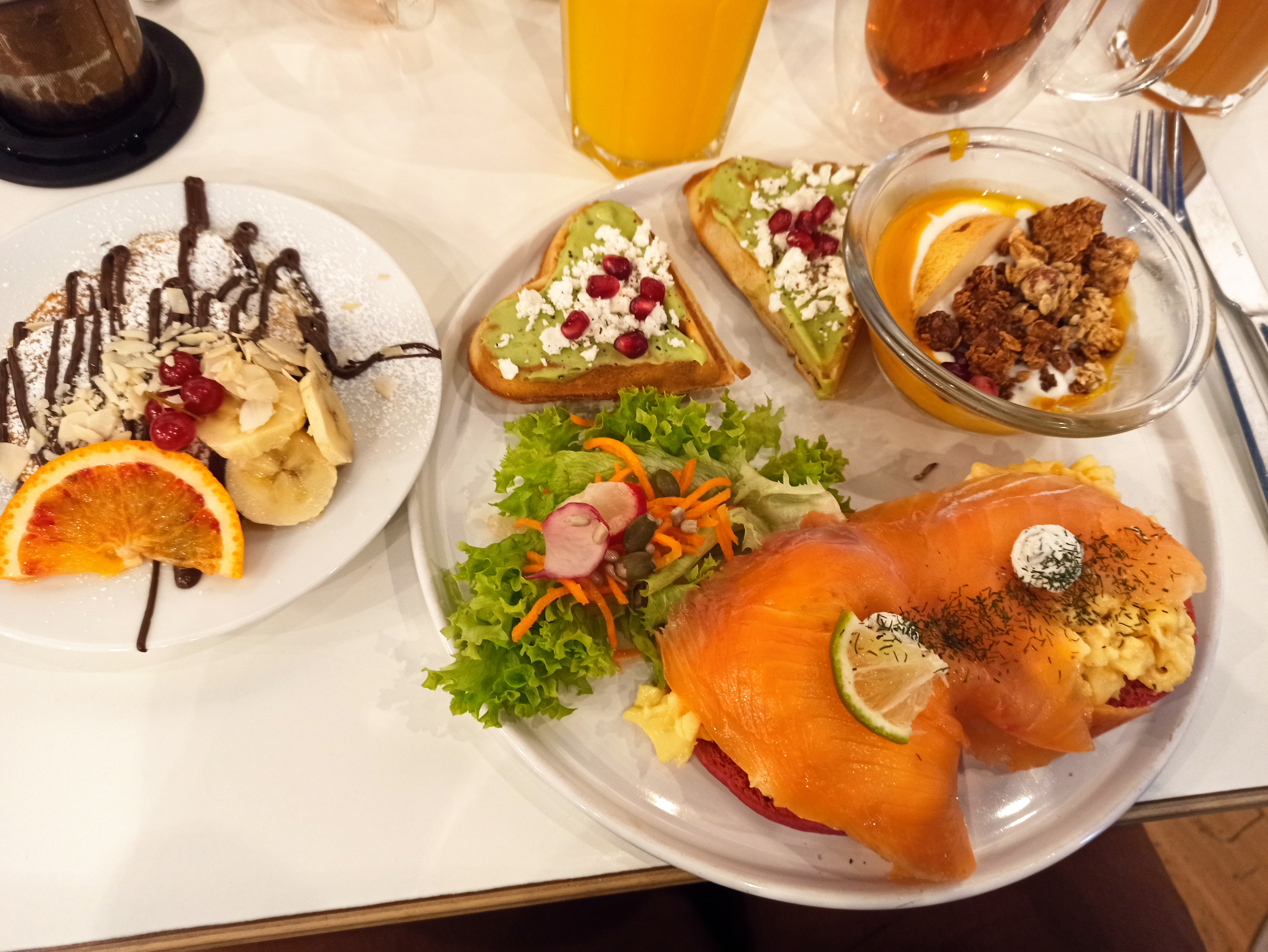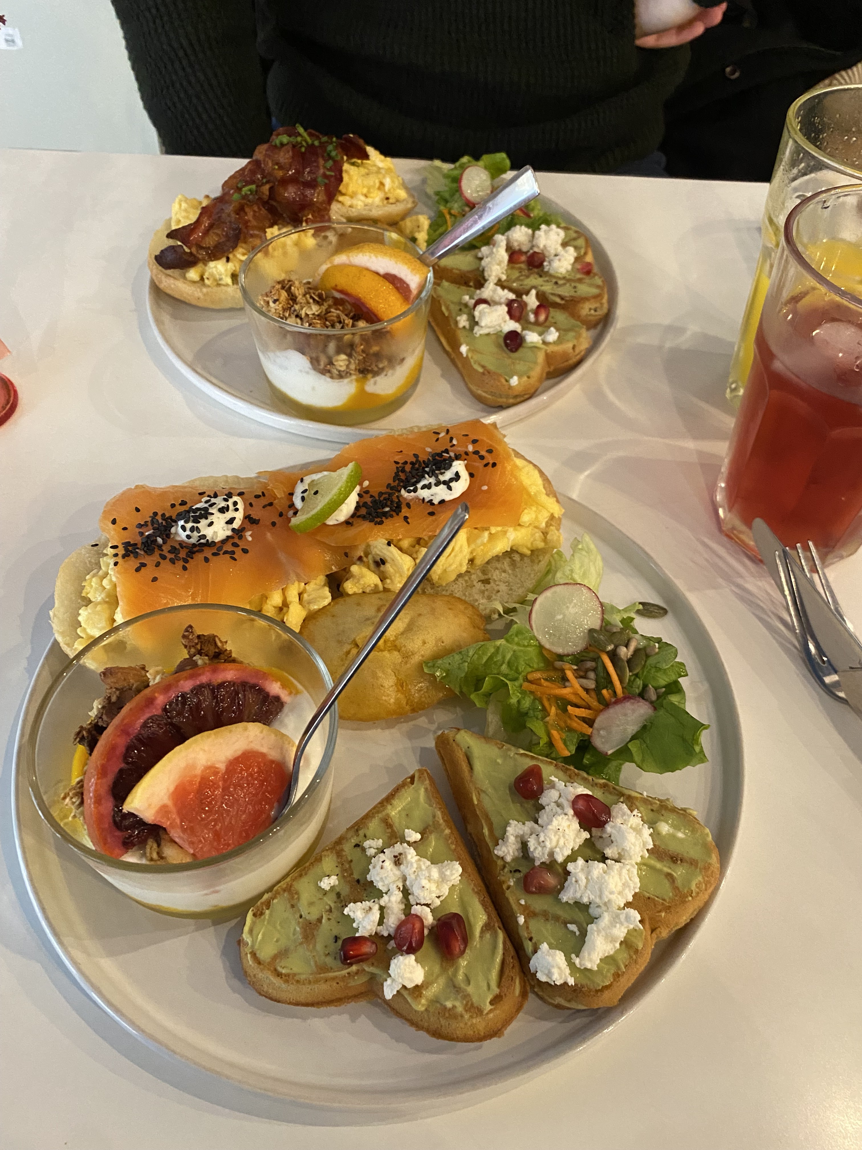 Un brunch plutôt agréable et gourmand. Les plats sont traditionnels d’un brunch: avocado toast, œuf brouillé ou plat, toast, muesli, pancakes ou brioche perdue…. On est pas perturbé. Les assiettes sont belles et délicieuses. La formule est à 25€ avec 1 boisson chaude et 1 jus de fruit (attention, les boissons chaudes ont vite un supplément à ajouter au prix final). J’ai été déçue que ni le cappuccino ni le chocolat chaud soit compris la formule (+2€!!). Par contre le choix entre 2 jus de fruits originaux est plaisant. On a été servi tres rapidement. L’endroit est plutôt mignon, plusieurs tables. C’est bébé friendly.