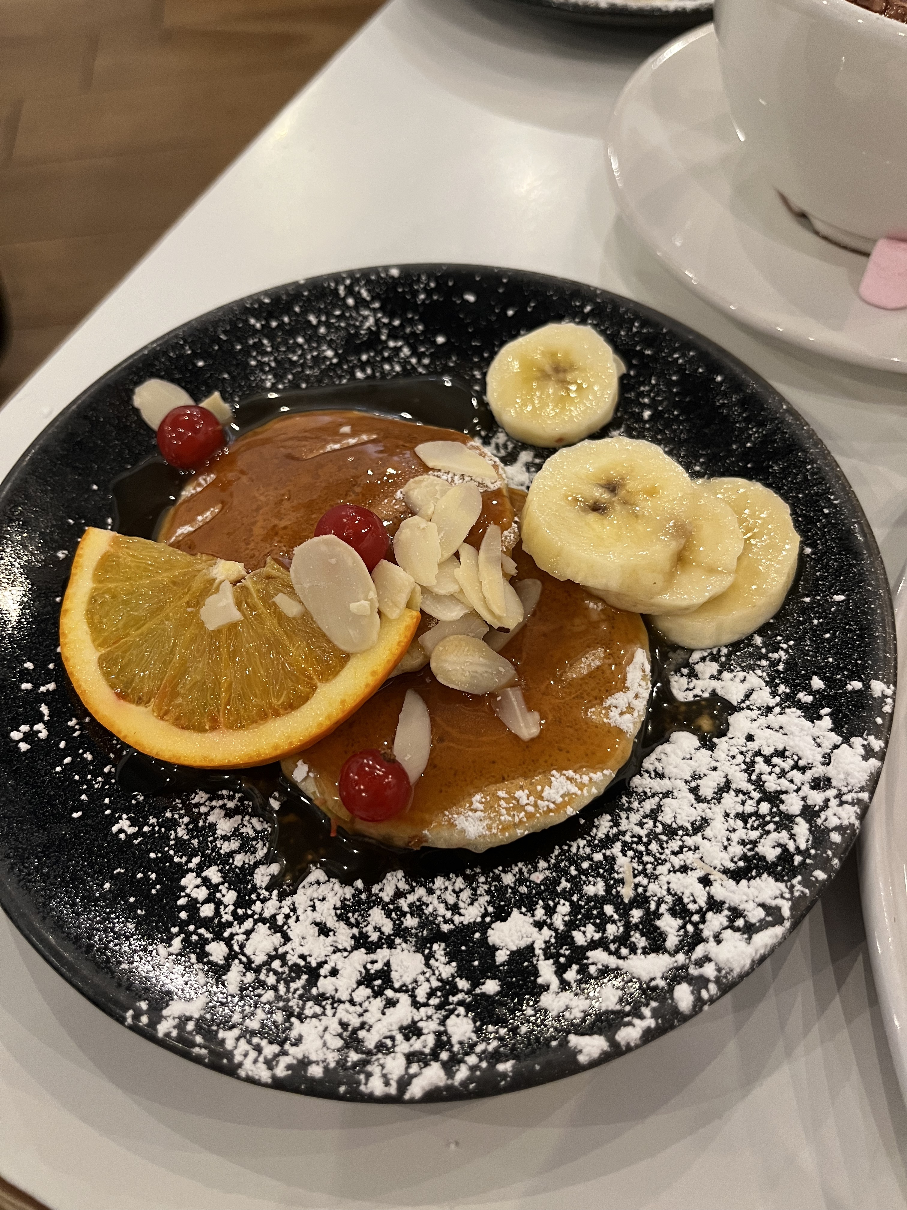 Accueil très aimable. Très bon mais petites quantités. Mon amie et moi avons été surprises par la taille des pancakes. On s’attendait à ce qu’ils soient plus gros. Le serveur a renversé du chocolat chaud de mon amie en nous servant, petite maladresse mais il s’est excusé et ce n’est pas très grave. Le chocolat chaud était bien chocolaté. Très bien pour ceux qui aiment le chocolat chaud avec plein de chocolat. J’aurais apprécié qu’il soit plus léger. Concernant le lieu, c’était assez bruyant. Nous en avons eu pour 26€ chacune.
