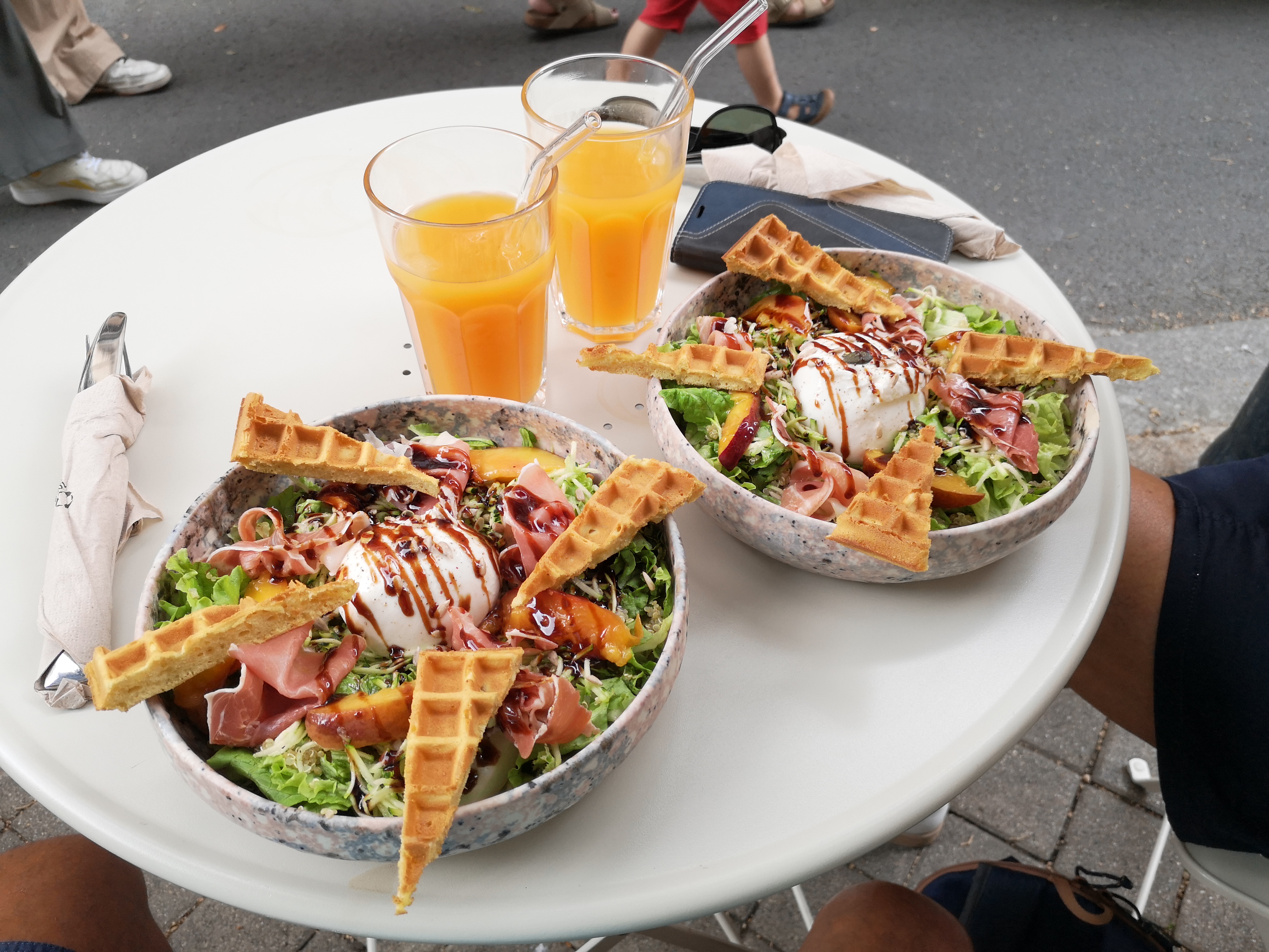 Délicieux brunch, tant le salé que le sucré! Les jus et le café étaient top aussi. Le personnel est adorable. Sans réservation on a du attendre une petite demi-heure dehors, mais assis à une table avec des petits plaids, même l’attente était agréable :)