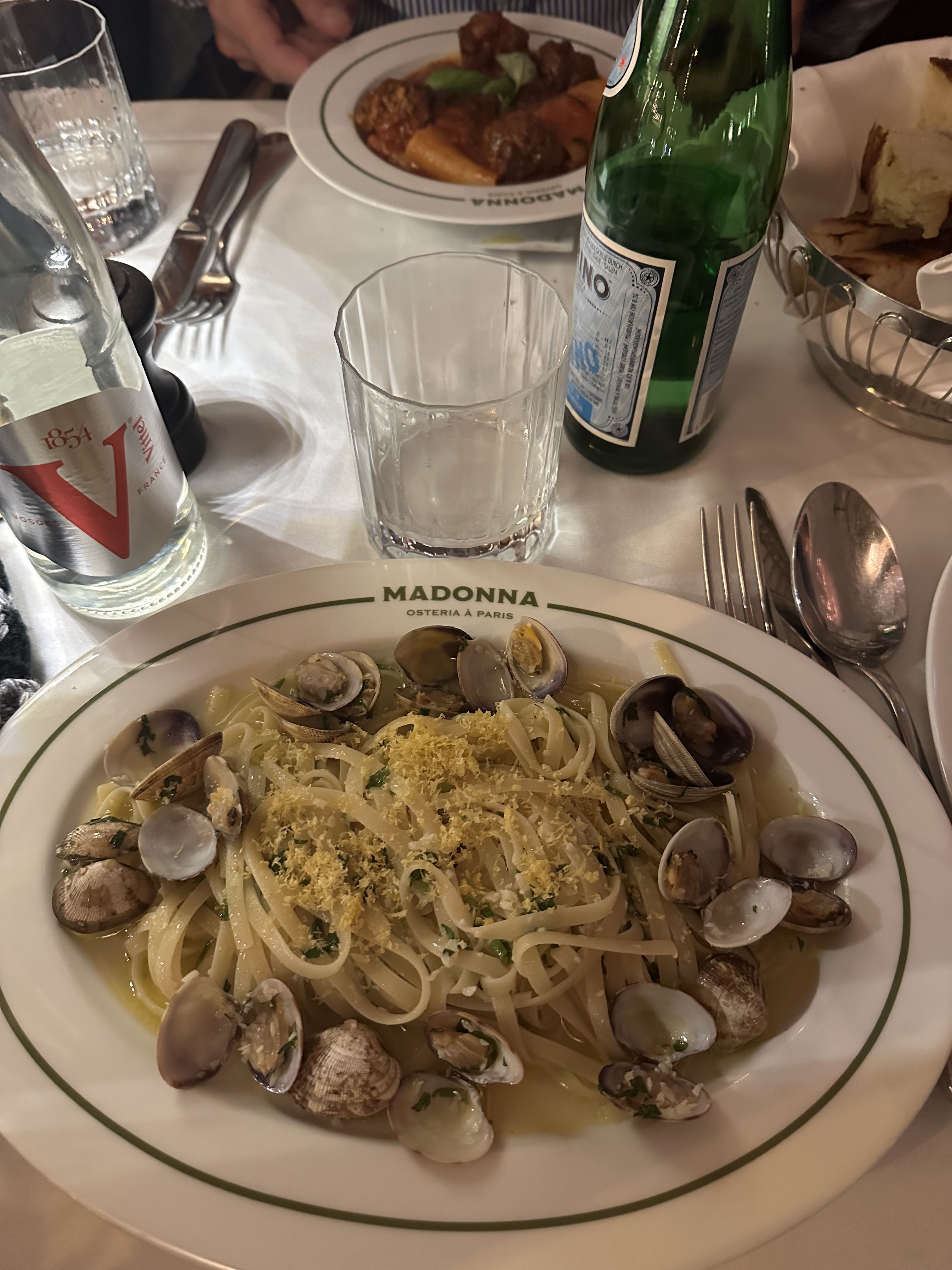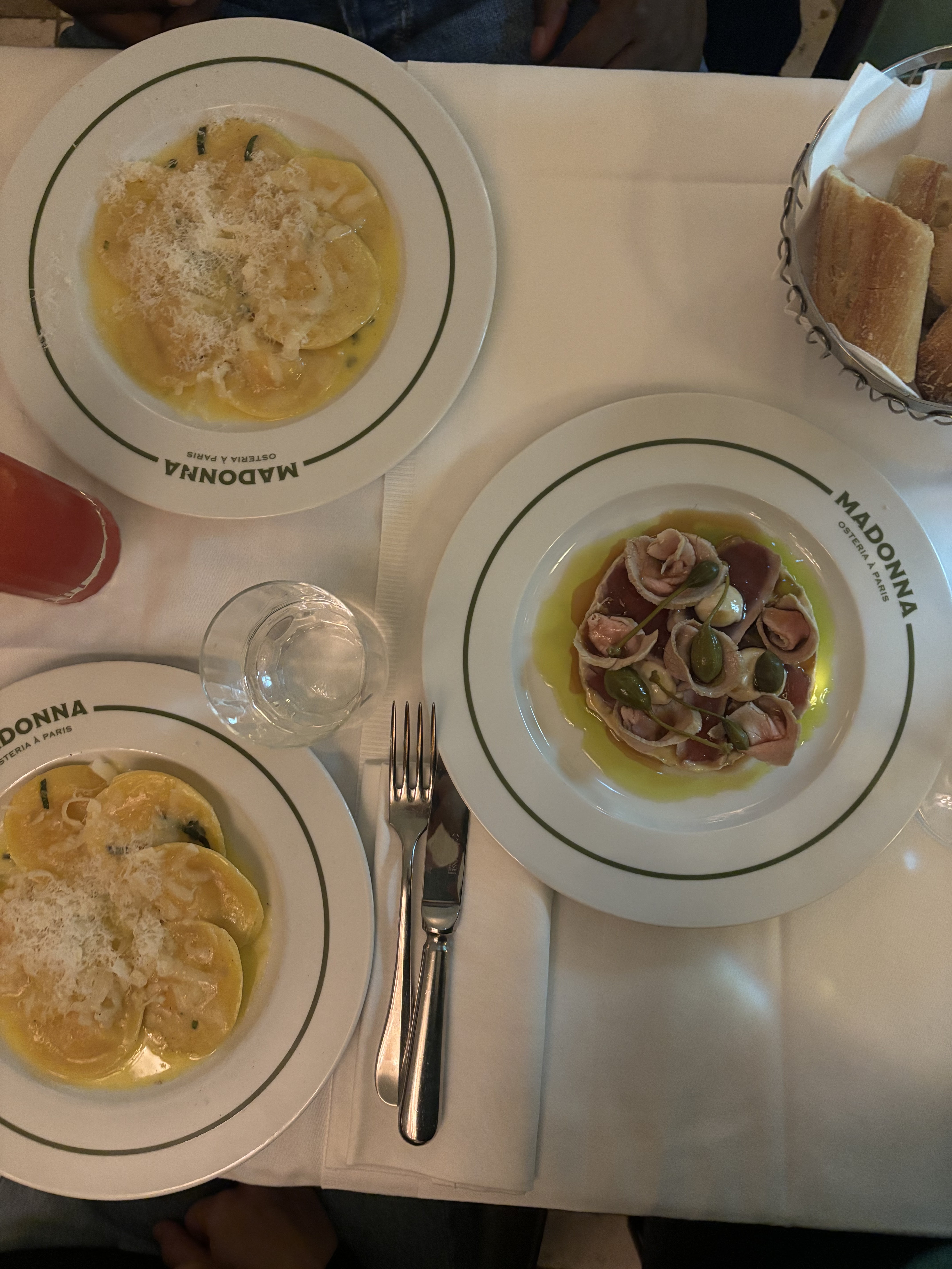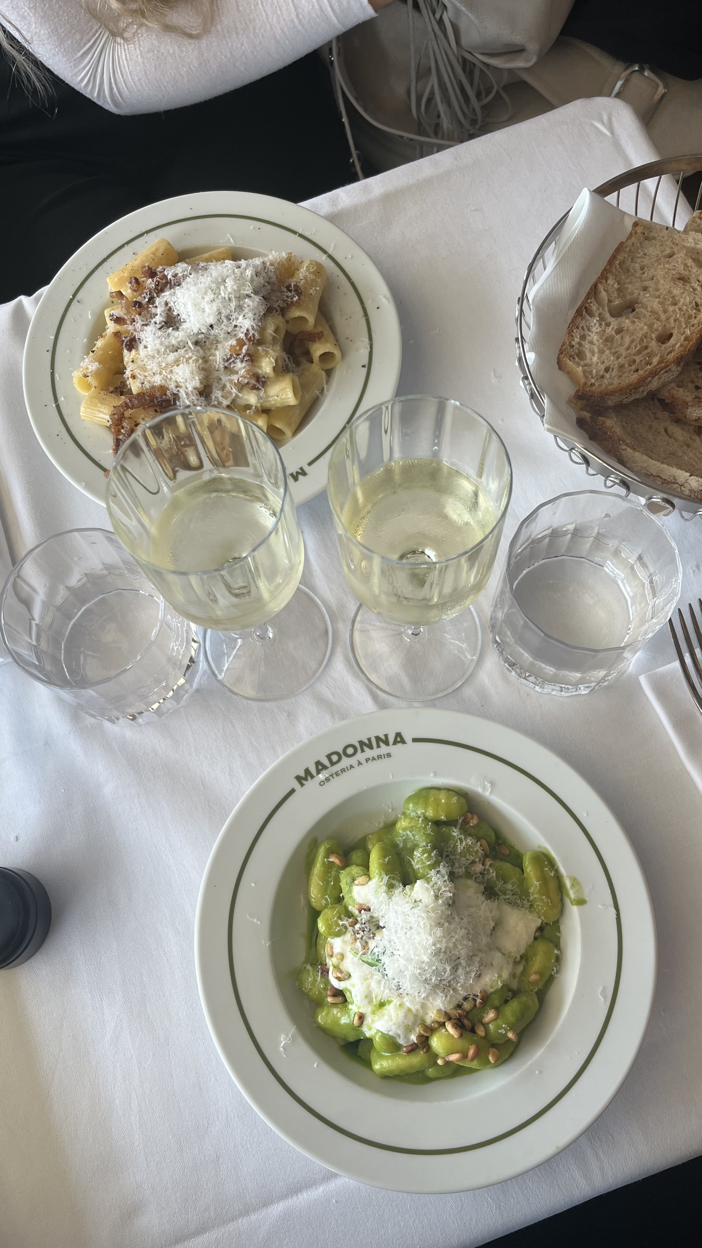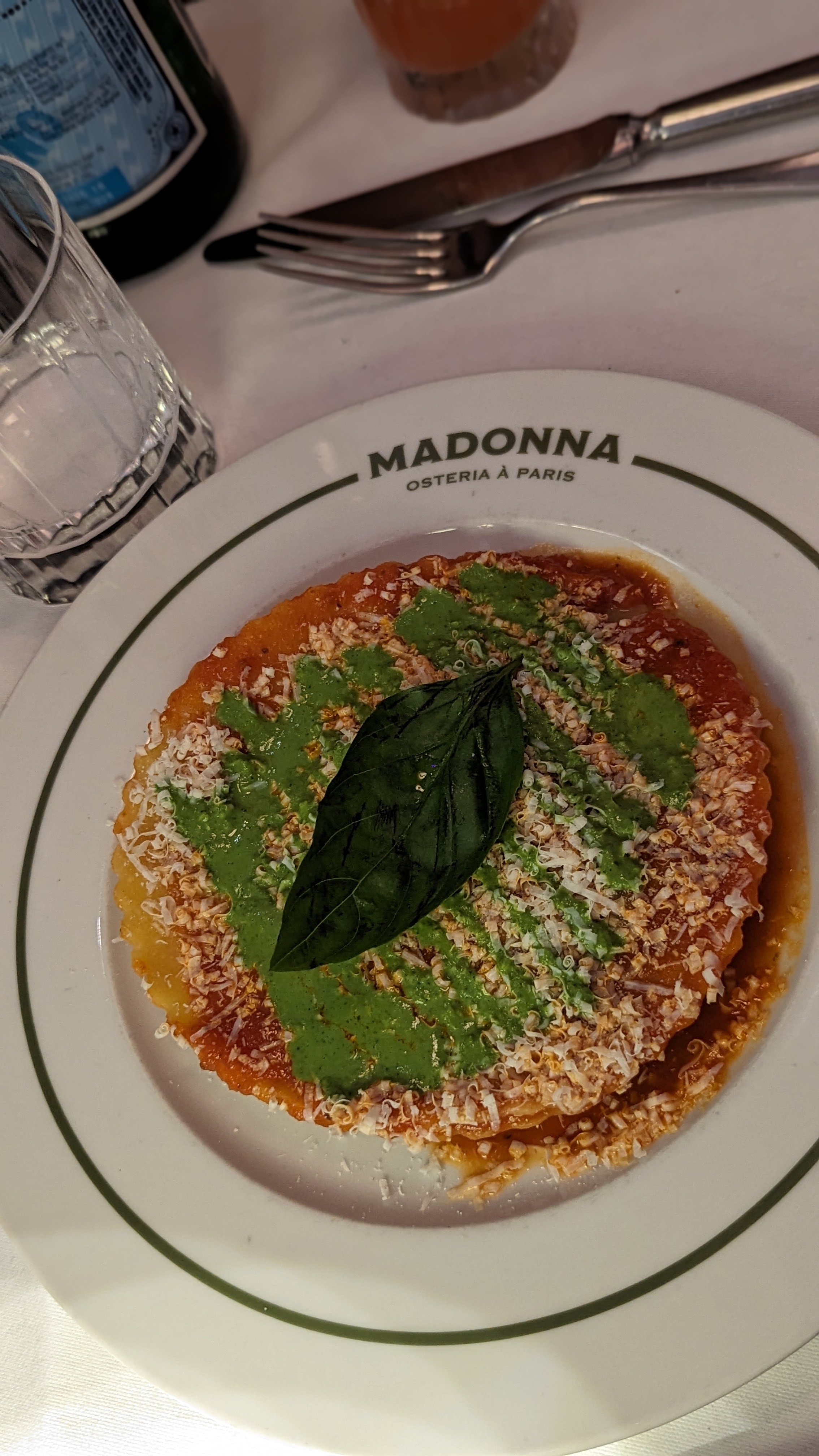 J’ai bien aimé mon dîner à Madonna, le personnel était adorable et les plats étaient bons. Le cadre est joli et le restaurant a beaucoup de succès. Cependant, vous avez une certaine proximité avec les tables d’à côté du genre 10cm qui vous sépare, je ne viendrais pas forcément ici pour un tête à tête en amoureux par exemple. Il y a beaucoup de restaurants italiens dans la capital, Madonna faisait parti de ceux que j’avais envie de tester mais bien que j’ai été satisfaite, il n’y a pas « d’éléments » (un plat, un rapport qualité prix, un cadre incroyable…) qui fait que je reviendrais.