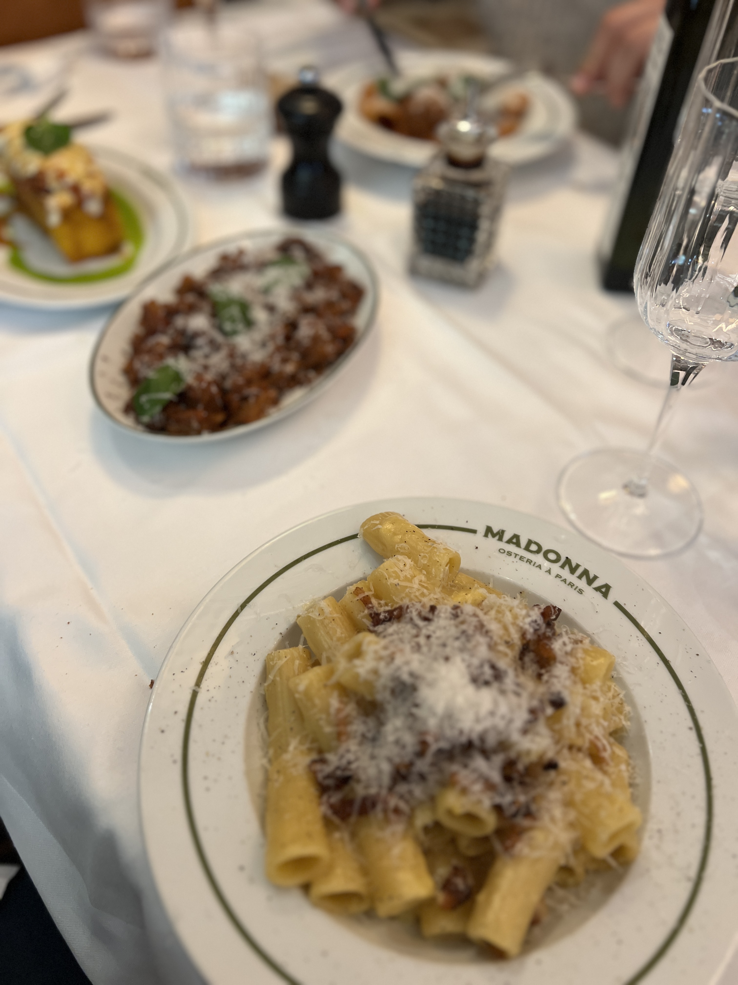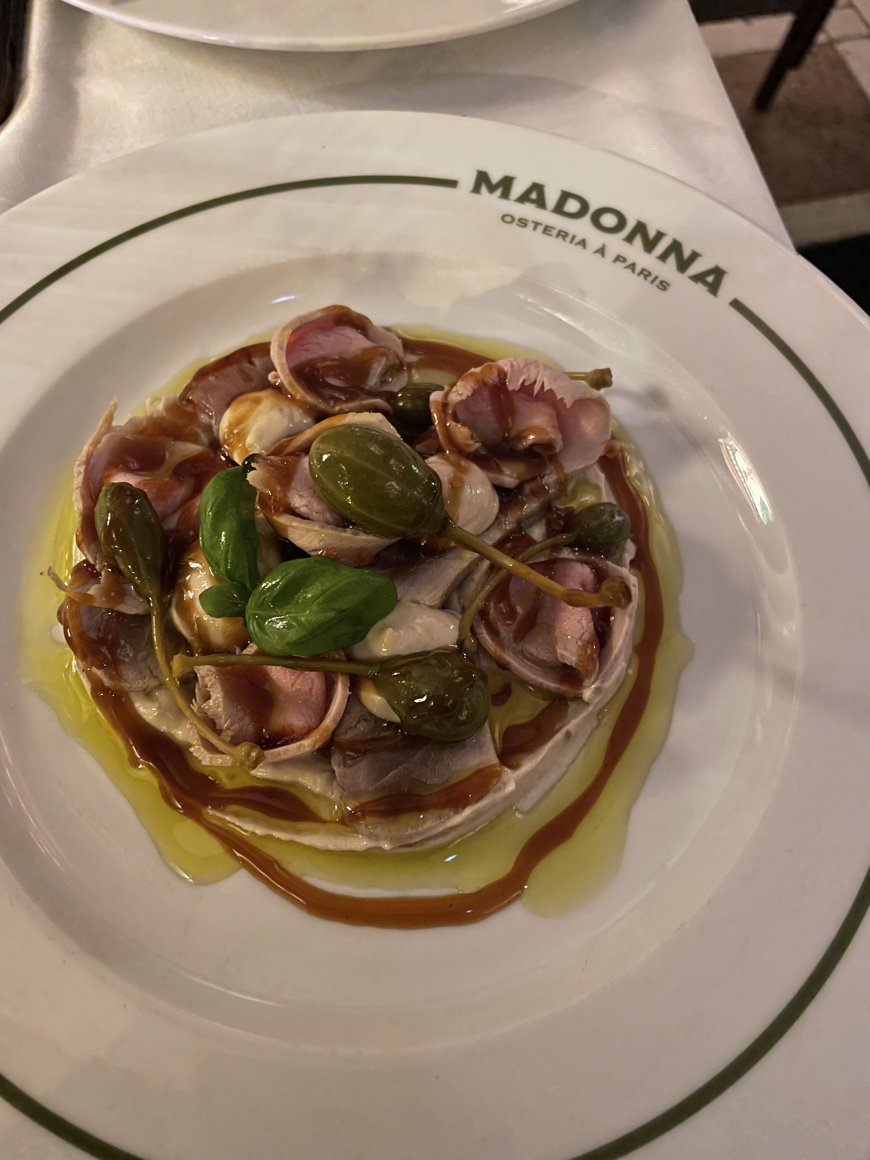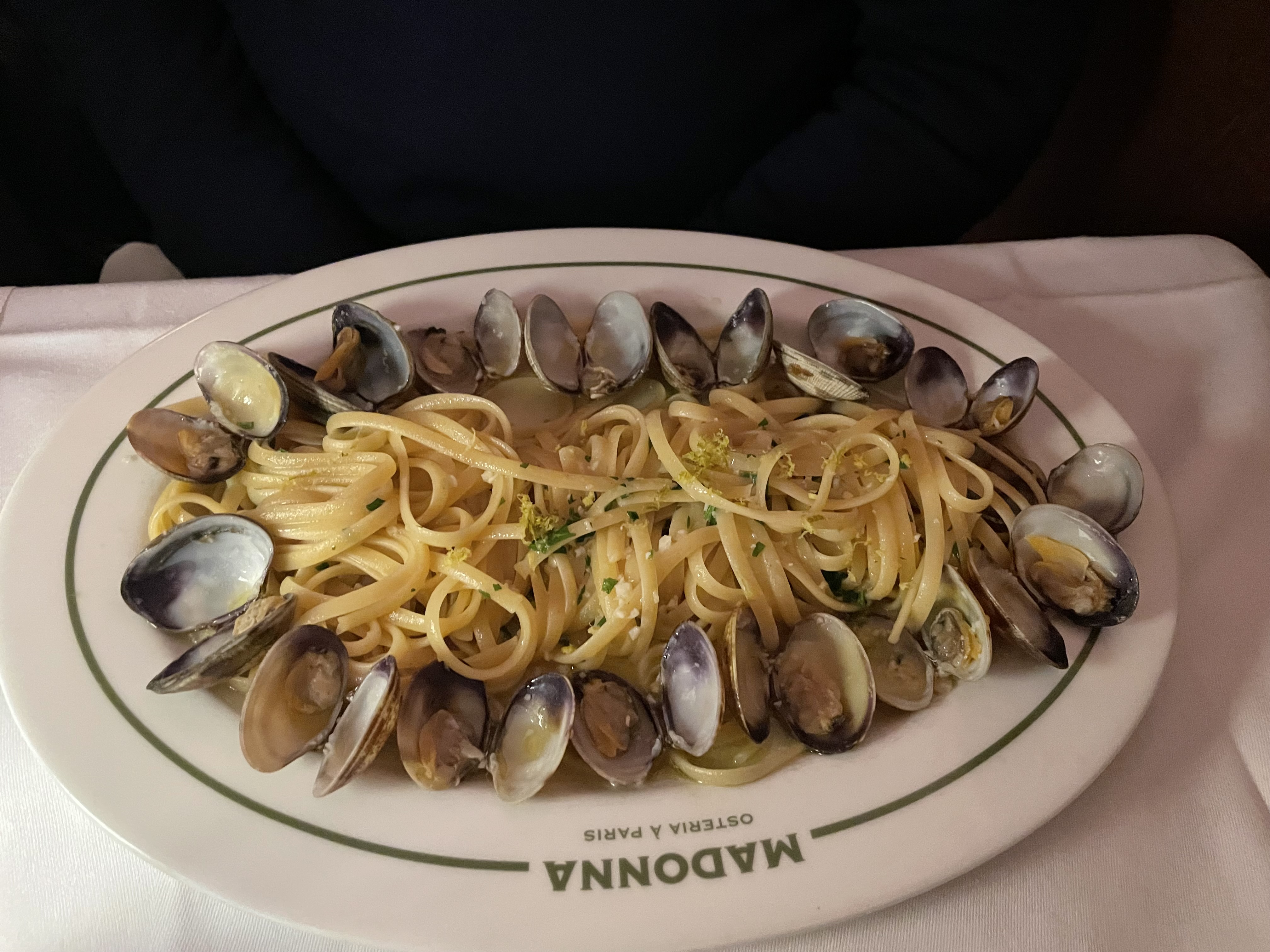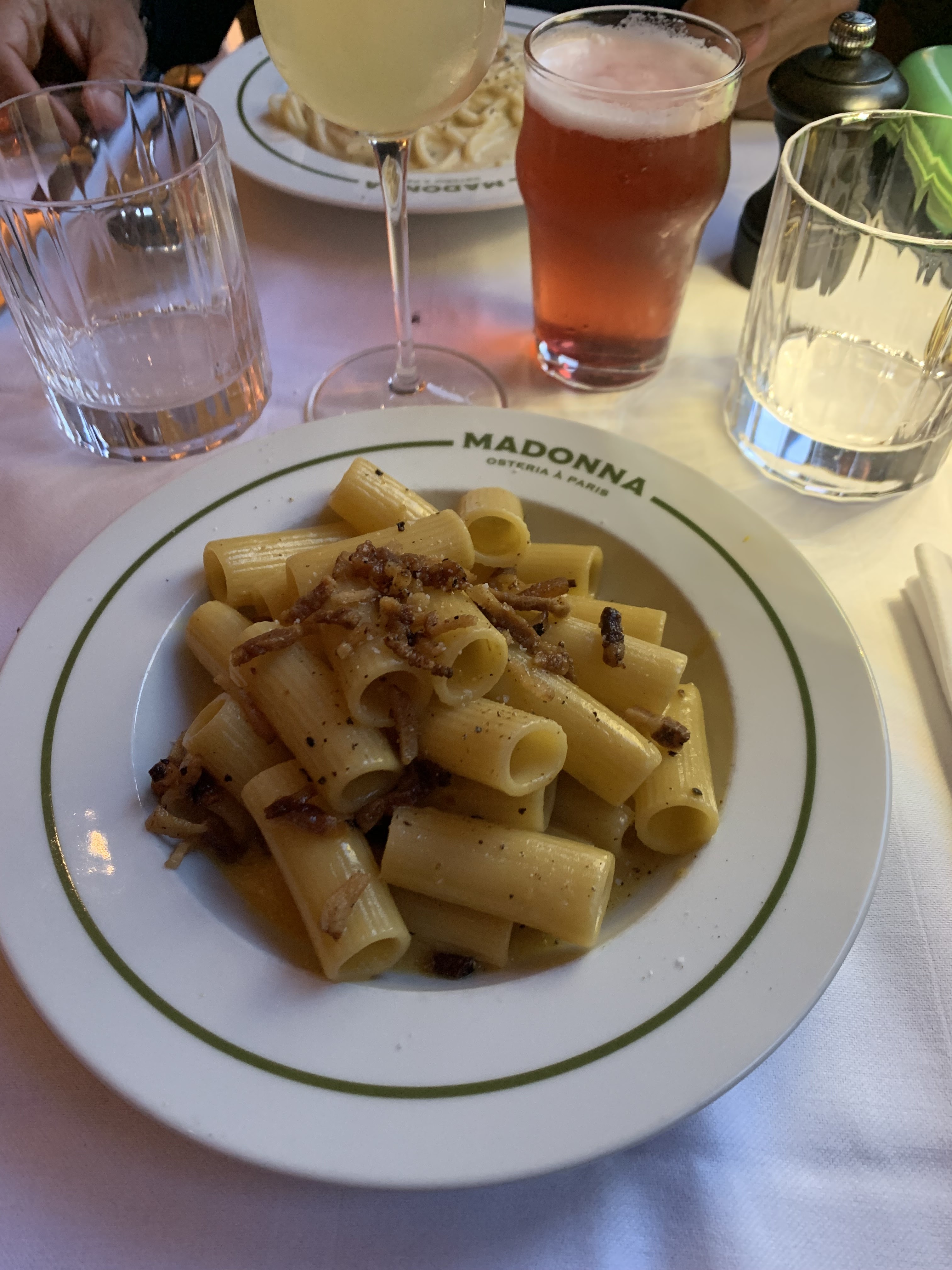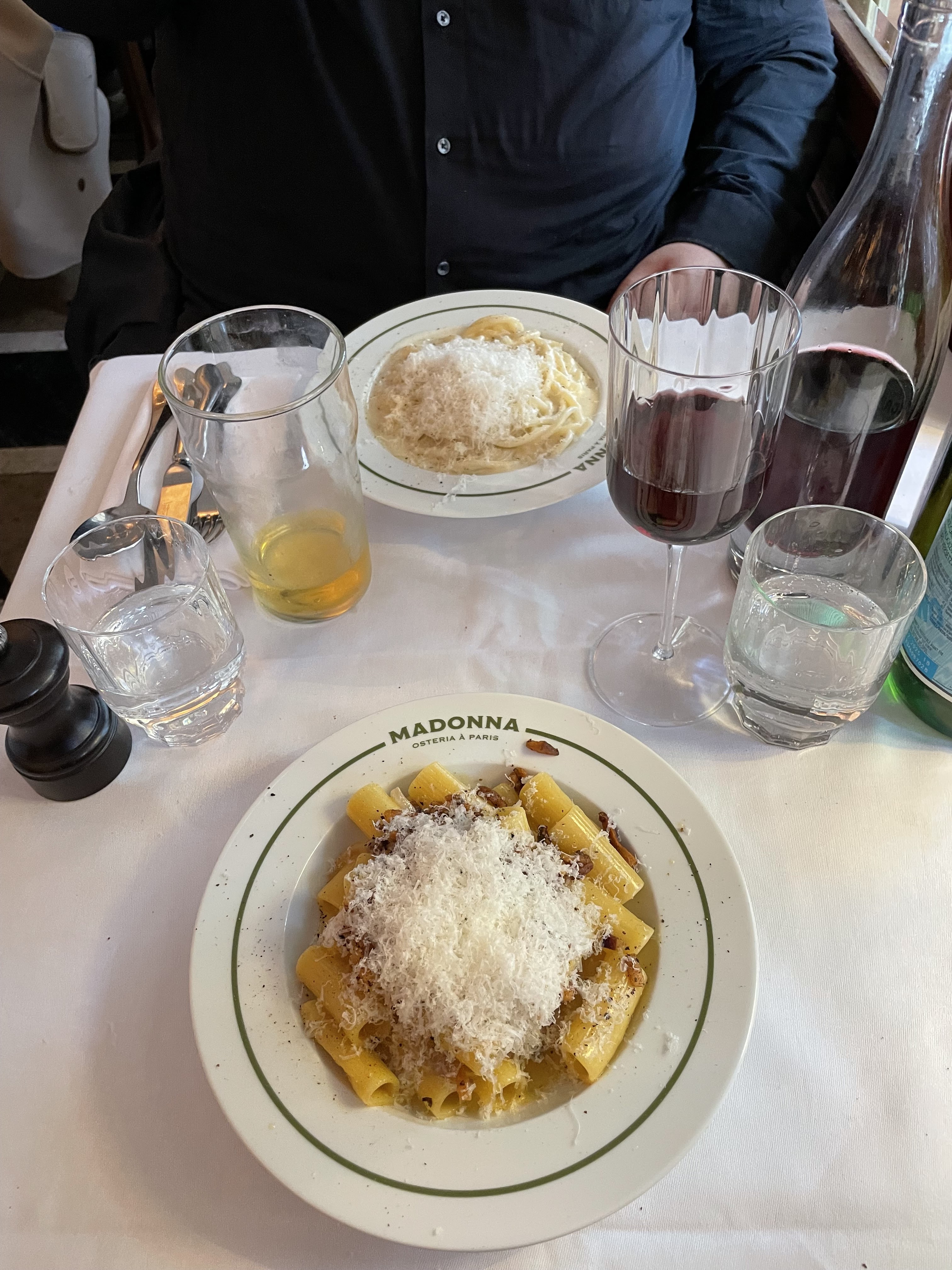 J’ai bien aimé mon dîner à Madonna, le personnel était adorable et les plats étaient bons. Le cadre est joli et le restaurant a beaucoup de succès. Cependant, vous avez une certaine proximité avec les tables d’à côté du genre 10cm qui vous sépare, je ne viendrais pas forcément ici pour un tête à tête en amoureux par exemple. Il y a beaucoup de restaurants italiens dans la capital, Madonna faisait parti de ceux que j’avais envie de tester mais bien que j’ai été satisfaite, il n’y a pas « d’éléments » (un plat, un rapport qualité prix, un cadre incroyable…) qui fait que je reviendrais.
