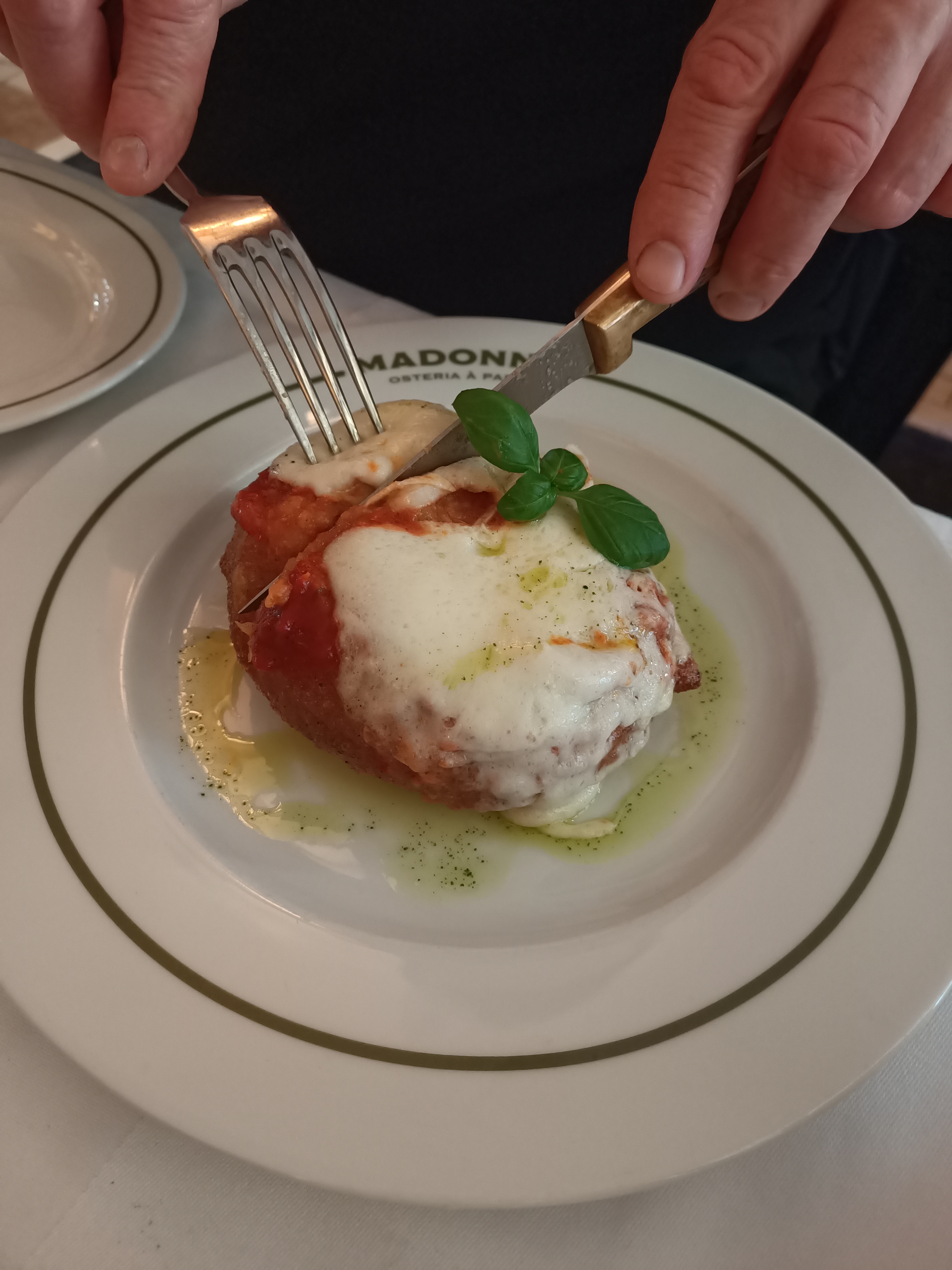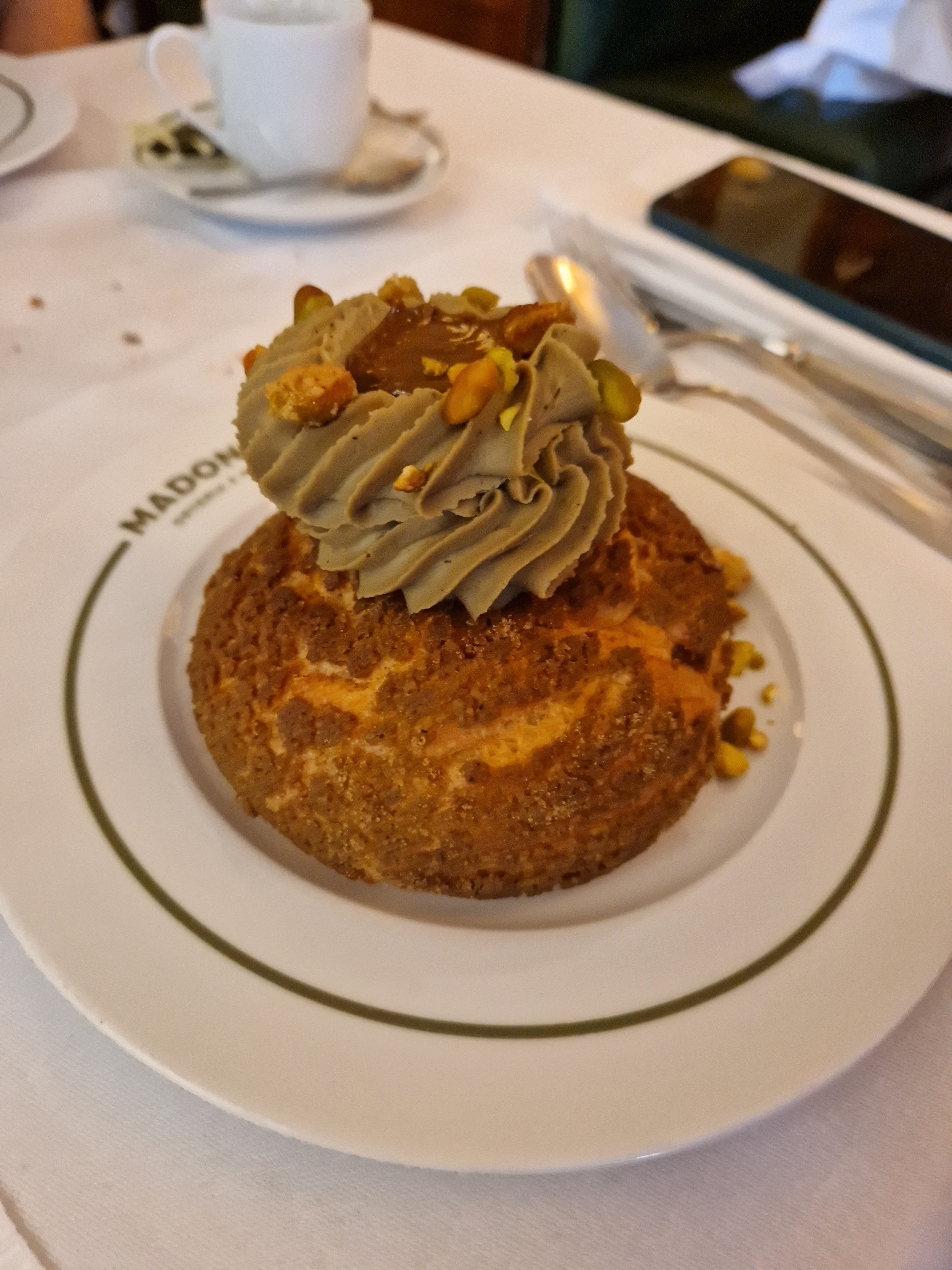 Madonna Osteria, un restaurant milanais où les plats sont à tomber ! Gros coup de ❤️ Nous avons partagé la focaccia et le cuore di arancino croccante. On a ensuite dégusté les spaghetti enrobés d'oursins frais, le risotto aux gambas et les spaghetti cacio e pepe. Que dire ? C'était très très bon 😋 On a toutes envie d'y retourner pour goûter les autres plats de la carte tellement c'était un delice 🔥 Pour le dessert, on a craqué pour le tiramisu minute et le chou al pistacchio 😍 On a passé une soirée parfaite dans un resto où il y avait une ambiance de dingue 😊 ! Tout le personnel était adorable 🥰 On y retournera, c'est sûr et certain 😋 Réservation conseillée.