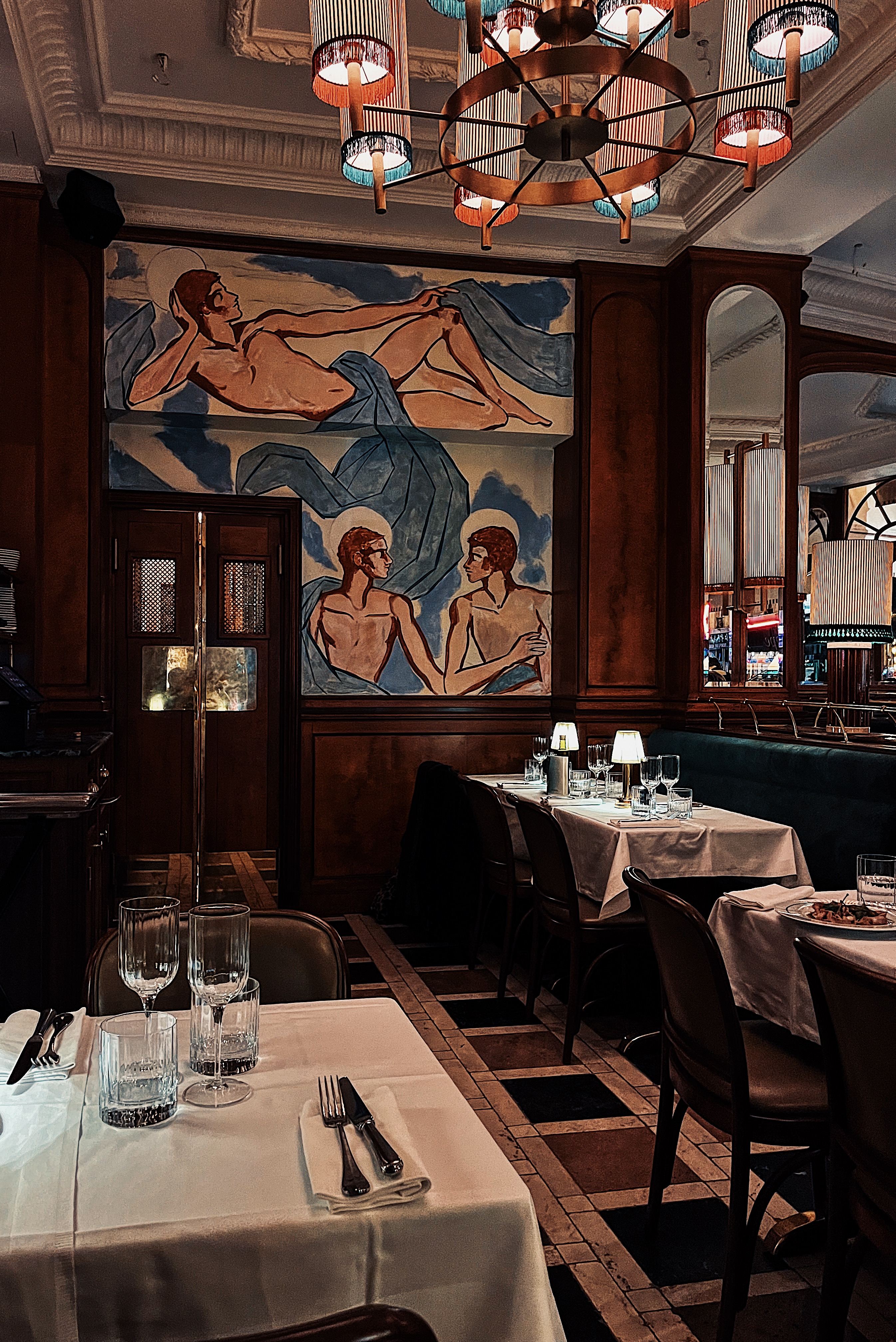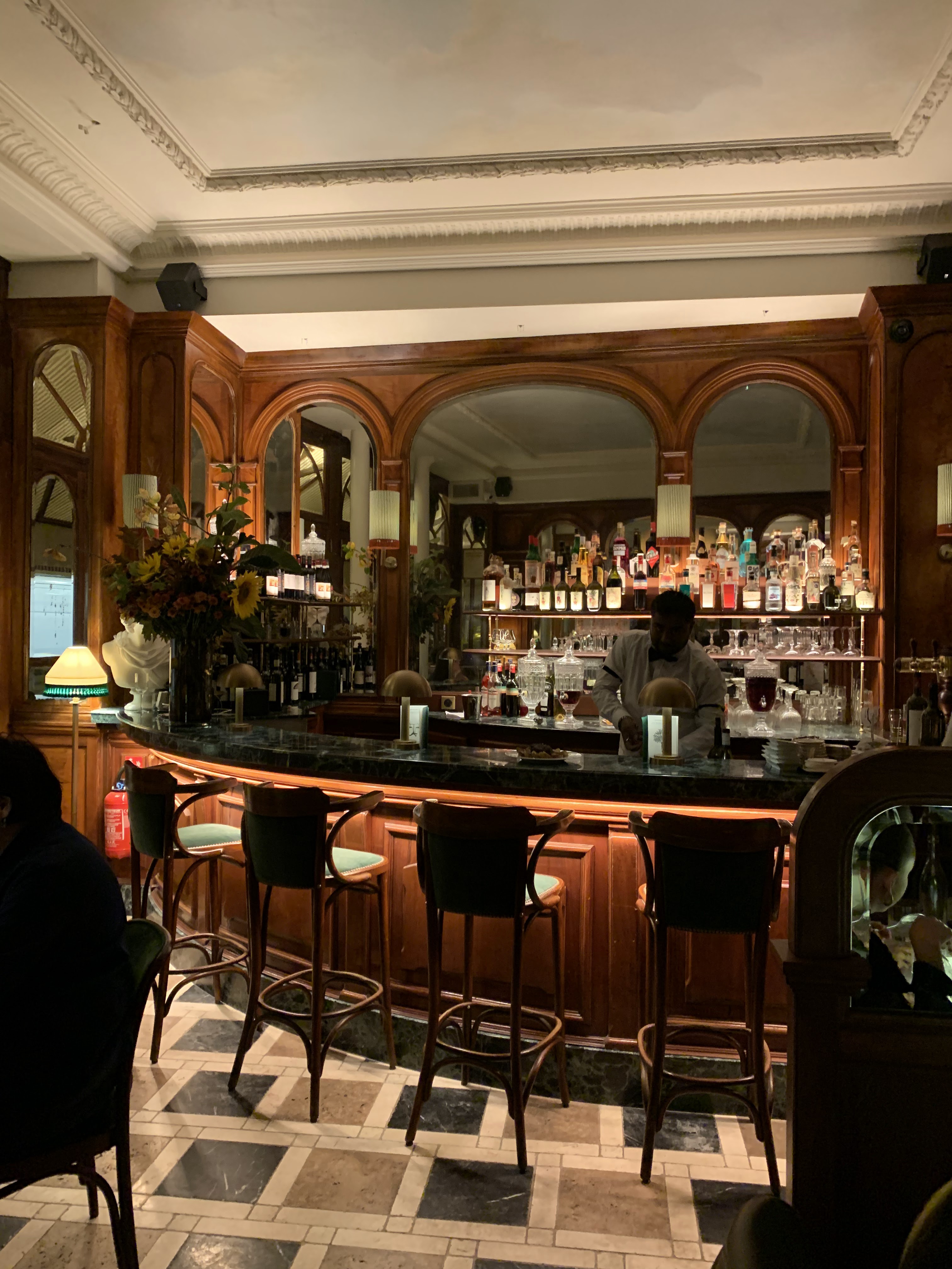 Un endroit magnifique grâce au cadre historique et à une ambiance de taverne digne d'une toile de Toulouse-Lautrec...bruyant, vivant, de très bon aloi. Menu majoritairement italien mais aussi une formule avec des plats de cuisine française essayant d'être créative (encornets avec des morceaux de clémentine arrosé d'huile d'olive mais sans alchimie) mais de très bonne qualité. Pour les passionnés de comptabilité, une proposition à 21 euros mais qui augmente avec entrée plat et dessert et 3 verres de vins plus une eau gazeuse à 44 euros par personne. Cela dit avec un peu d'imagination vous passerez un bon moment parisien de la fin du XXème s.