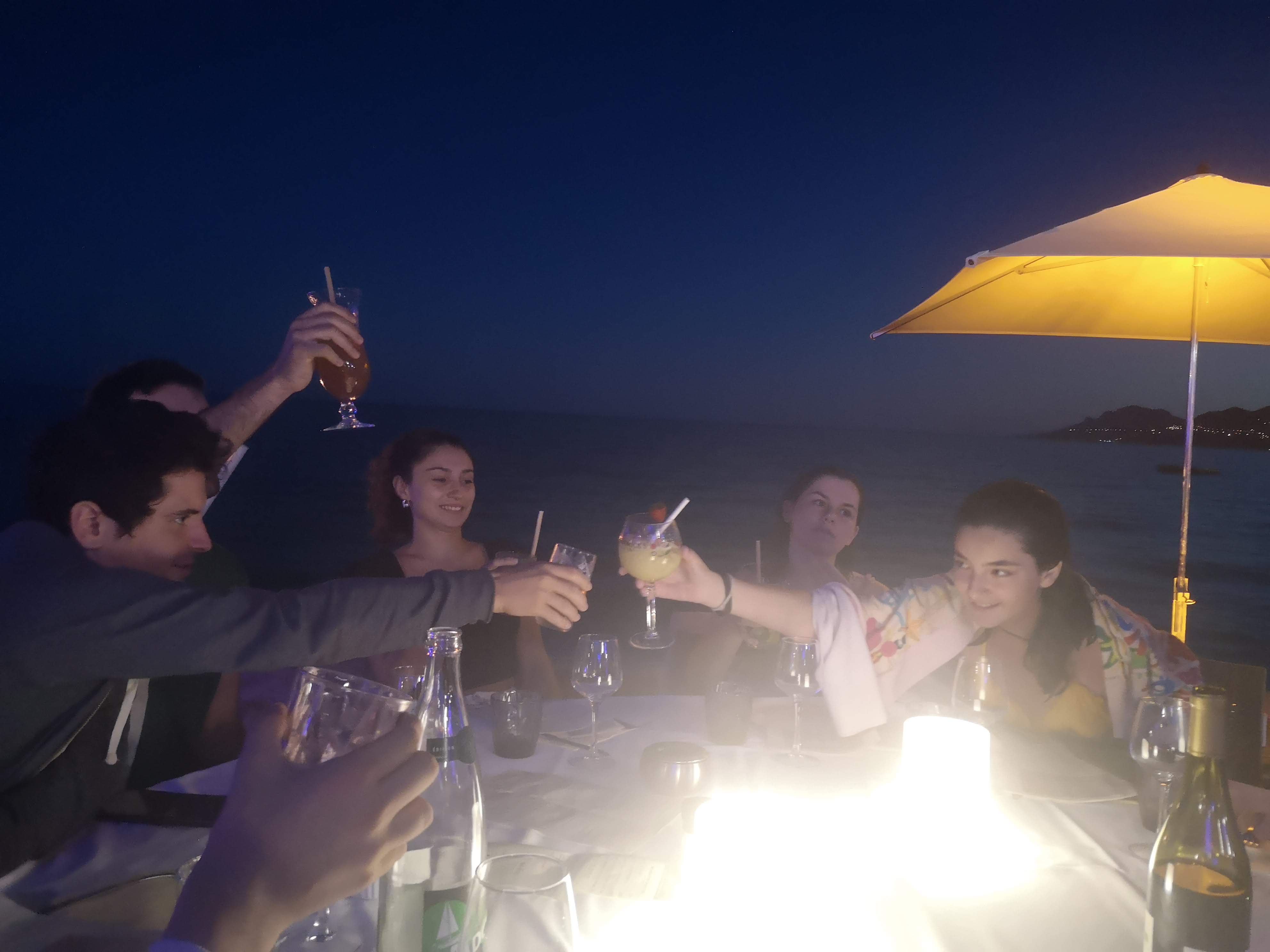 Agréable soirée avec des amies, les pieds dans le sable face au dey d'artifice du 15 août. Plats très bons, copieux et beaucoup de choix pour les végés. Service très agréable. Très beau lieu. Merci à vous