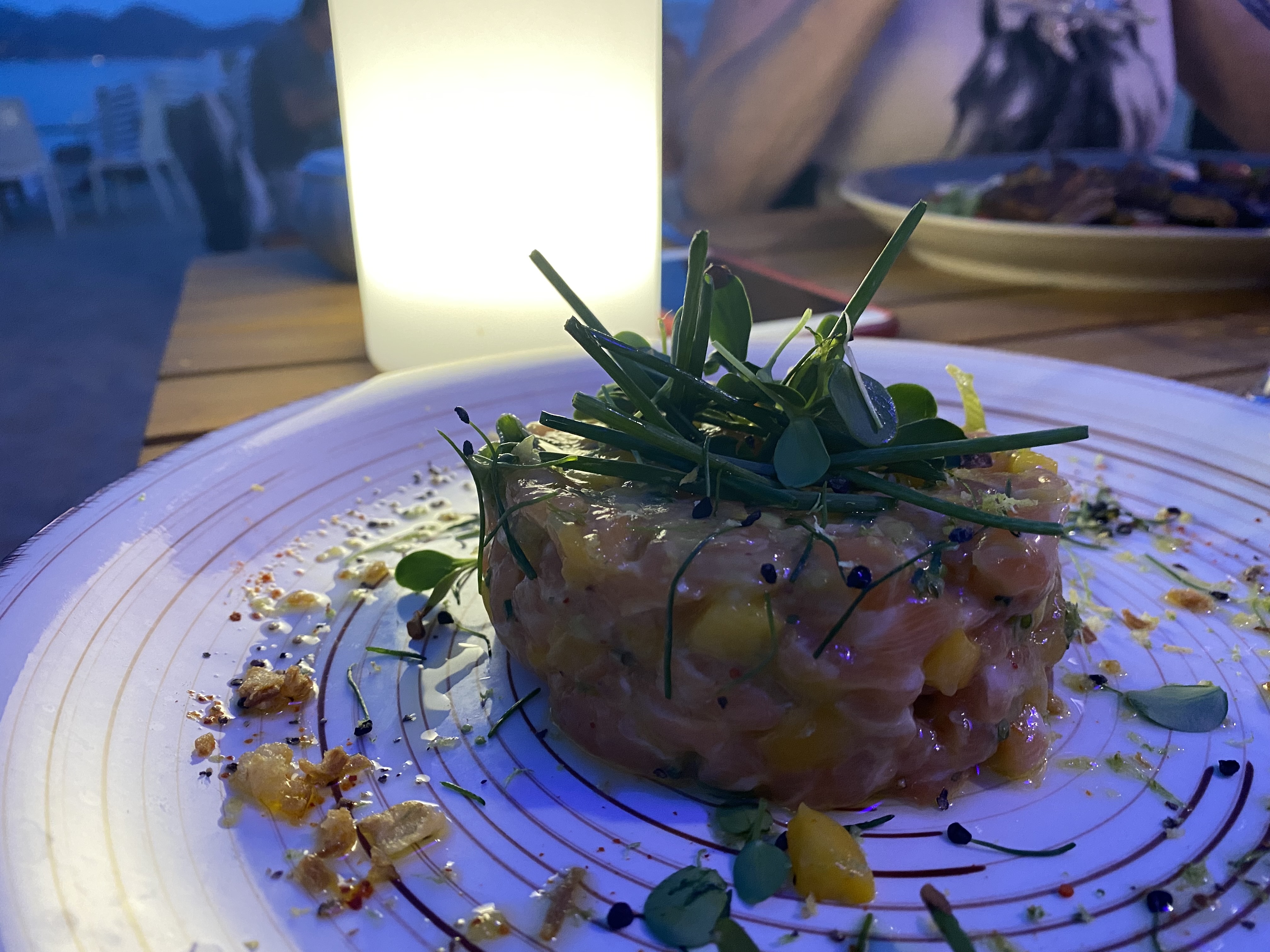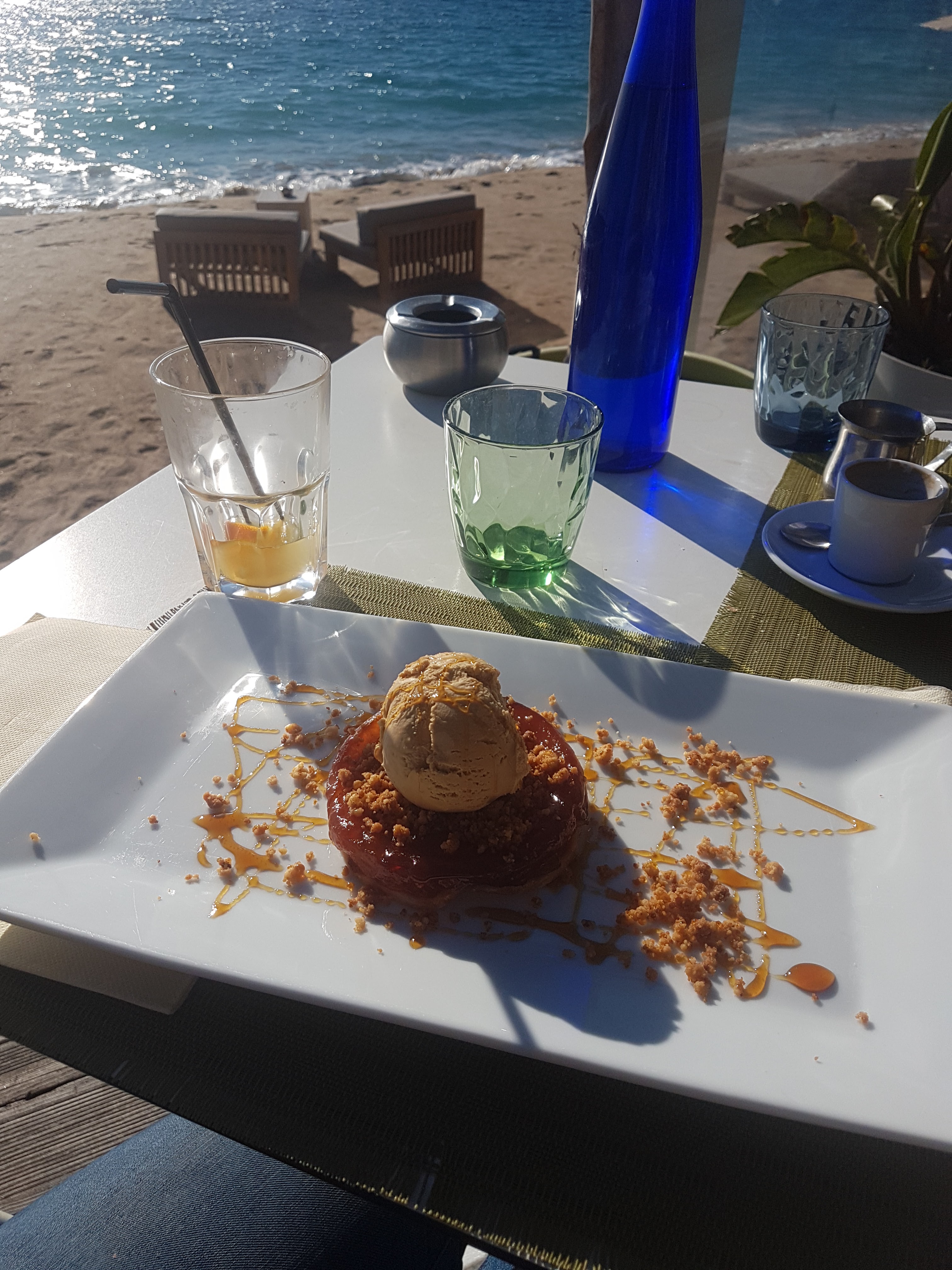 Cadre agréable les pieds dans le sable, personnel chaleureux et aux petits soins. Les tapas etaient savoureuses et genéreuses en quantité. Cependant les plats manquaient clairement de saveurs, et aussi de présentation dans l'assiette. La brandade de morue etait séche et sans gout, le risotto etait croquant, manque de cuisson... En gros vous allez payer cher pour le cadre mais la qualité des plats n'est pas a la hauteur