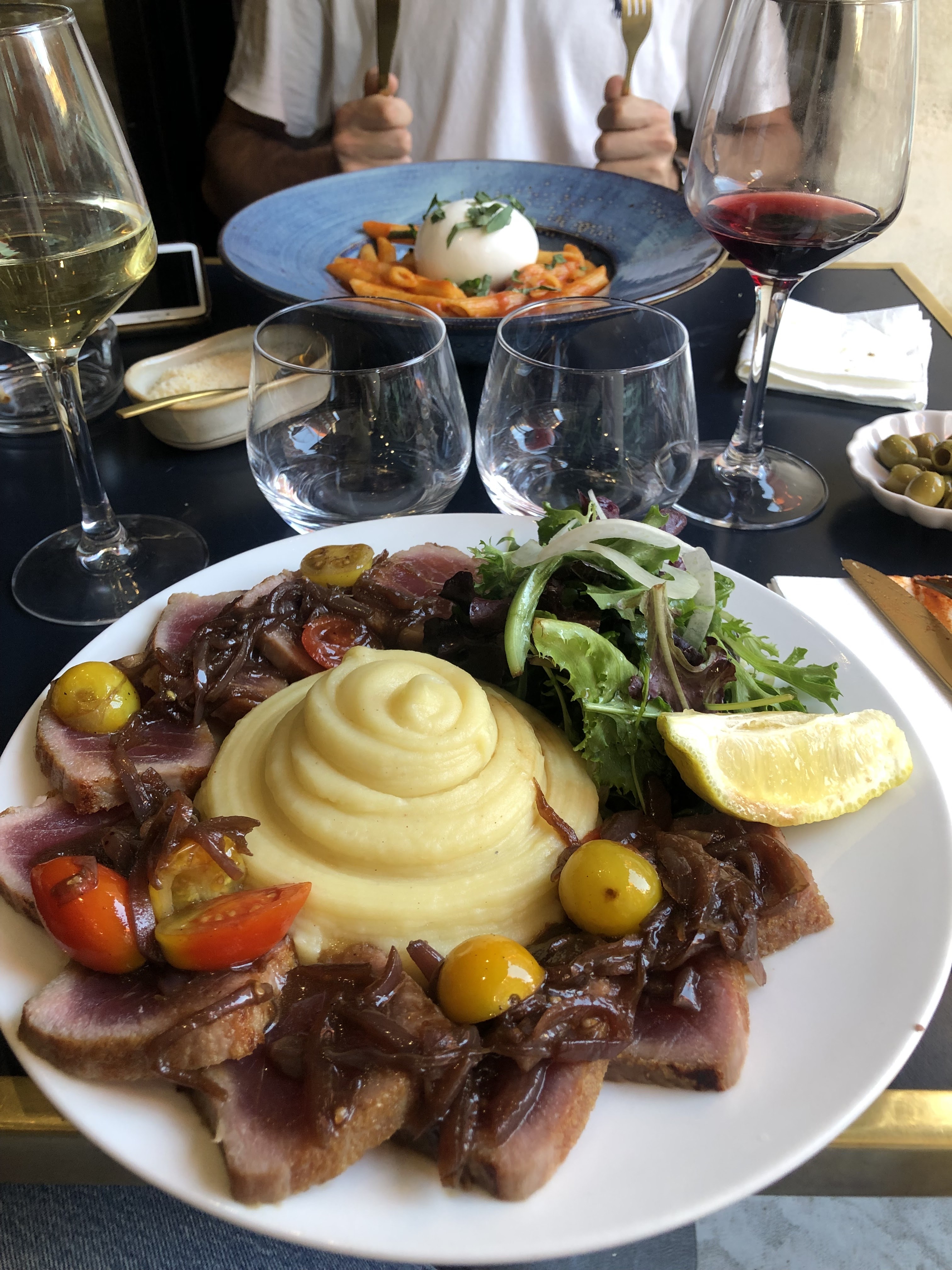 Pizza Burrata inmanageable + 30 euros en prime. Elle ne vaut pas son prix. Je vous la déconseille Pates, assez bonne :)