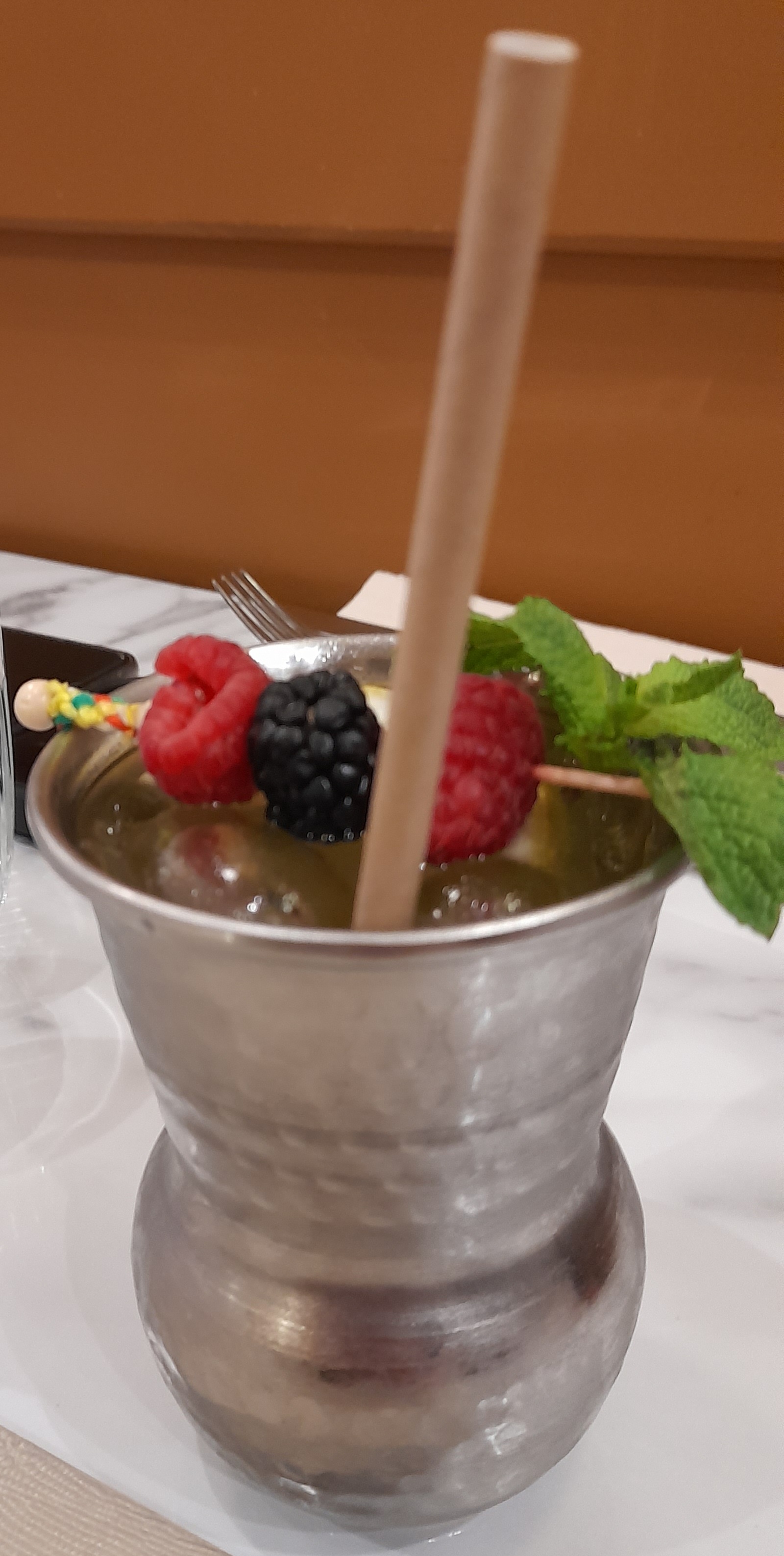 Très bon repas pour notre 1er restaurant indien, et bon cocktail à un prix sympa. Cadre et service agréable, je recommande !