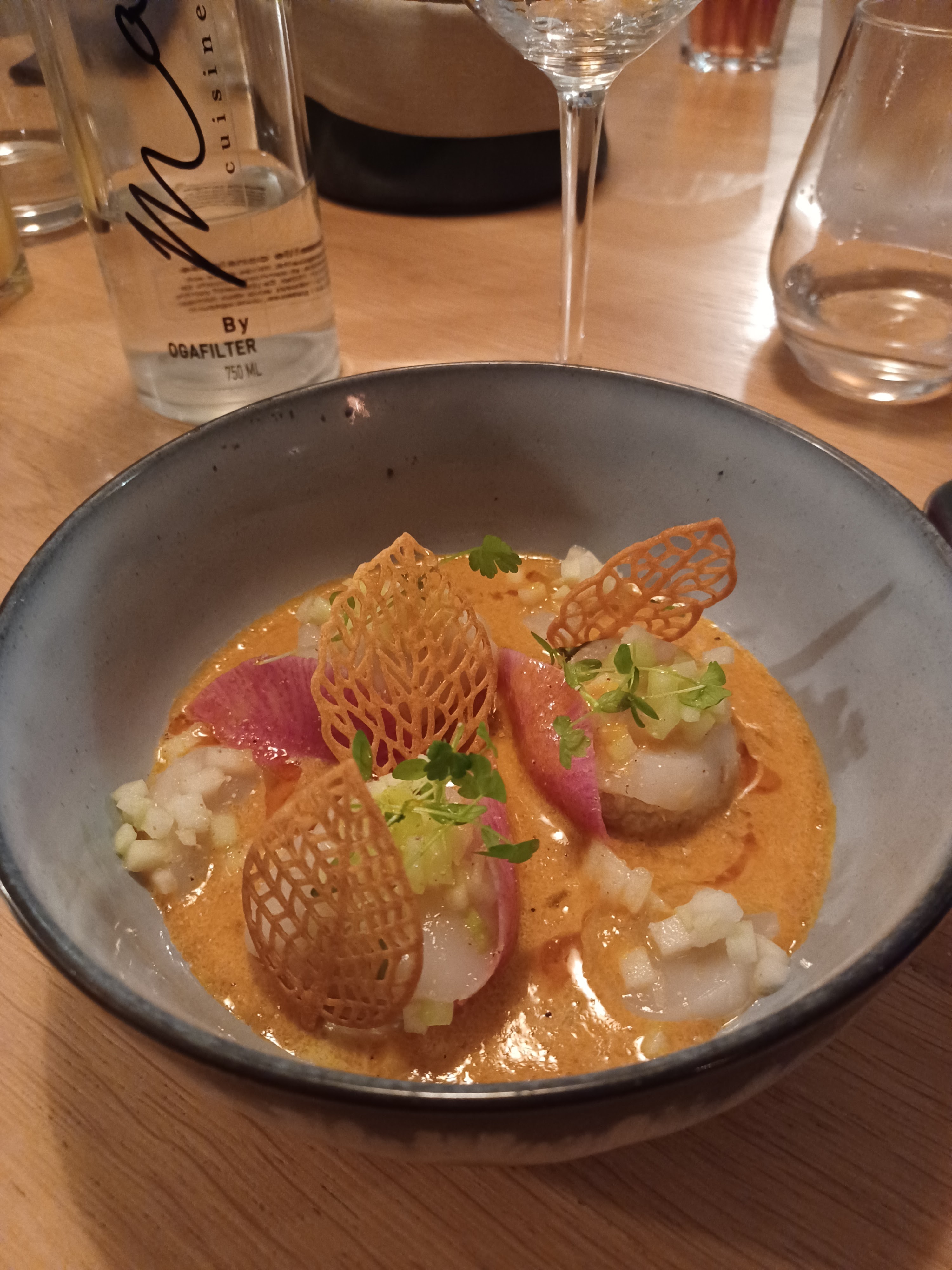 Un endroit très agréable serein reposant Une cuisine toute en finesse Il y a un équilibre parfait des saveurs c'est un pur moment Une équipe au top et un chef accessible Une très belle expérience