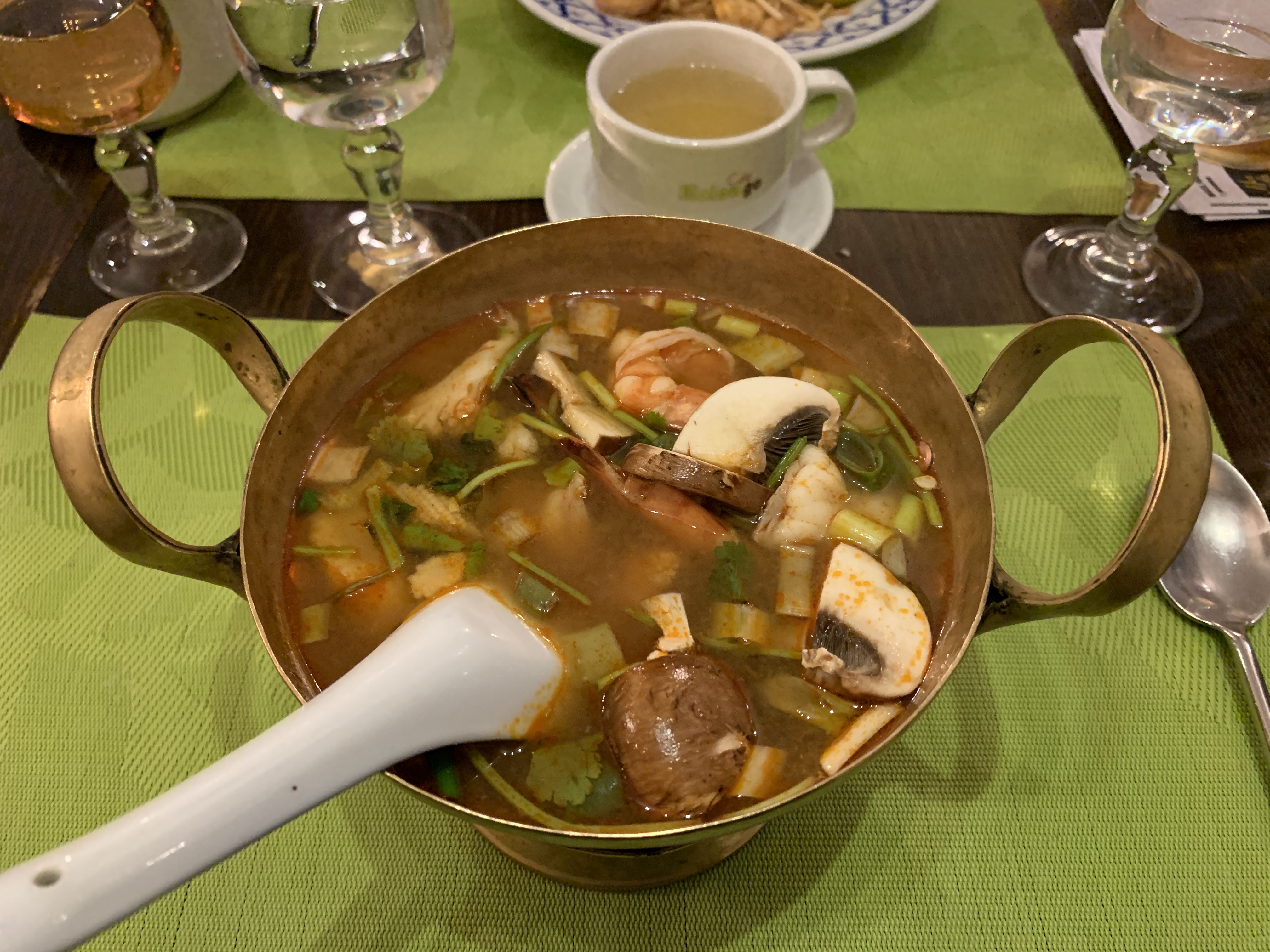 Un restaurant qui reste ouvert tard même en basse saison, avec un accueil souriant et une carte très dense c'est déjà bien. Un joli cadre avec de vraies serviettes c'est encore mieux. Des plats cuisinés comme en Thaïlande c'est excellent. C'était tard et nous avons commandé des soupes aux crevettes (excellentes) très bien présentées dans leur chaudron de cuivre, un classique Thaïlandais le Paad Thaï (très bon) et une salade Thaï aux fruits de mer (bon). Le dessert était une crêpe Thaï plutôt réussie. Pour les amateurs de cuisine thaïlandaise, certes nous ne sommes pas au pays mais c'est très correct.