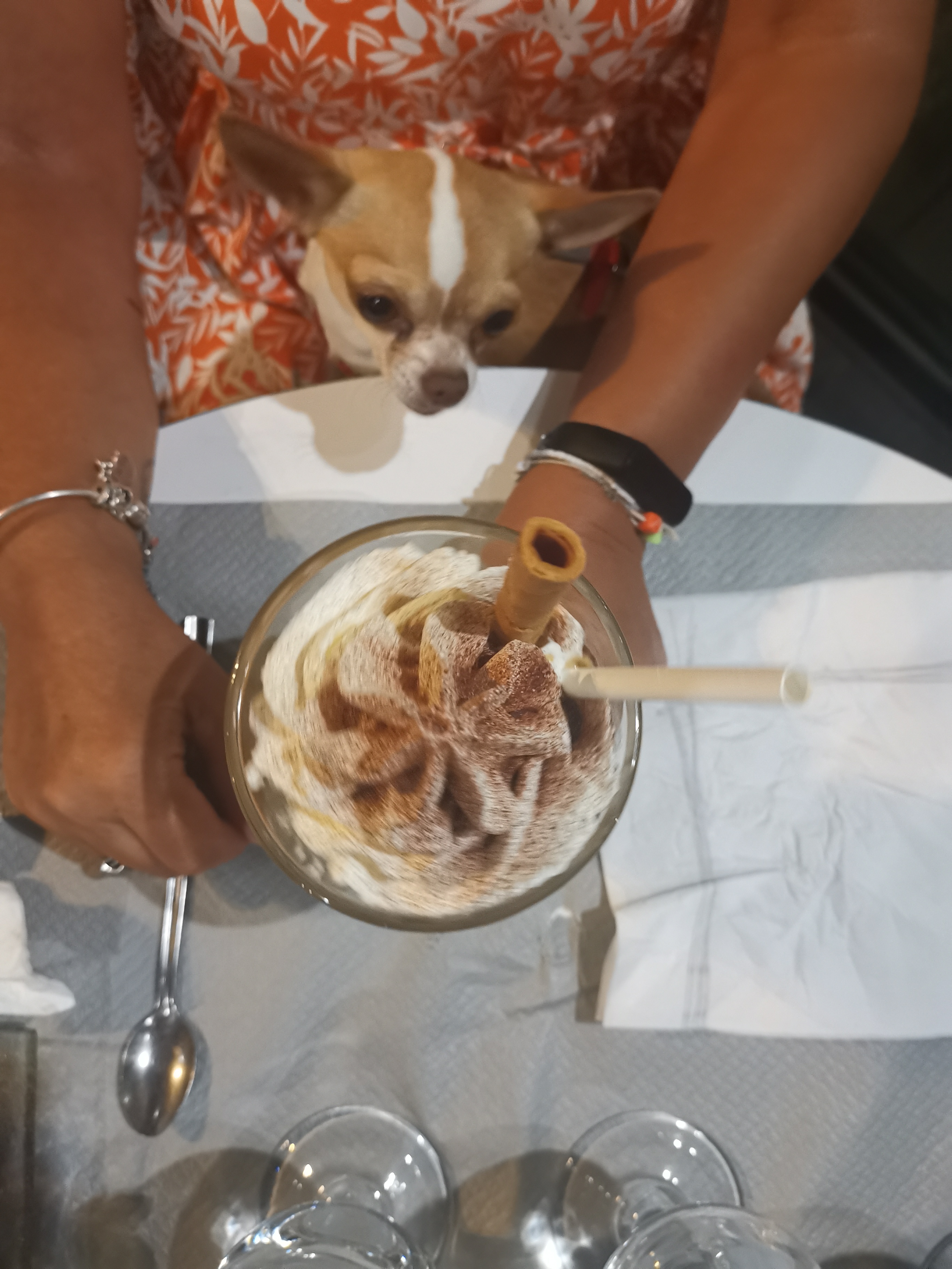 Emplacement top pour boire un verre ld soir. Mojito bien fait. La crêpe au sucre était excellente. Et un service top, serveuse rayonnante de sympatie, rare ds le coin . Visite le 28 soir. A noter un bac avec de l eau pour les chiens.