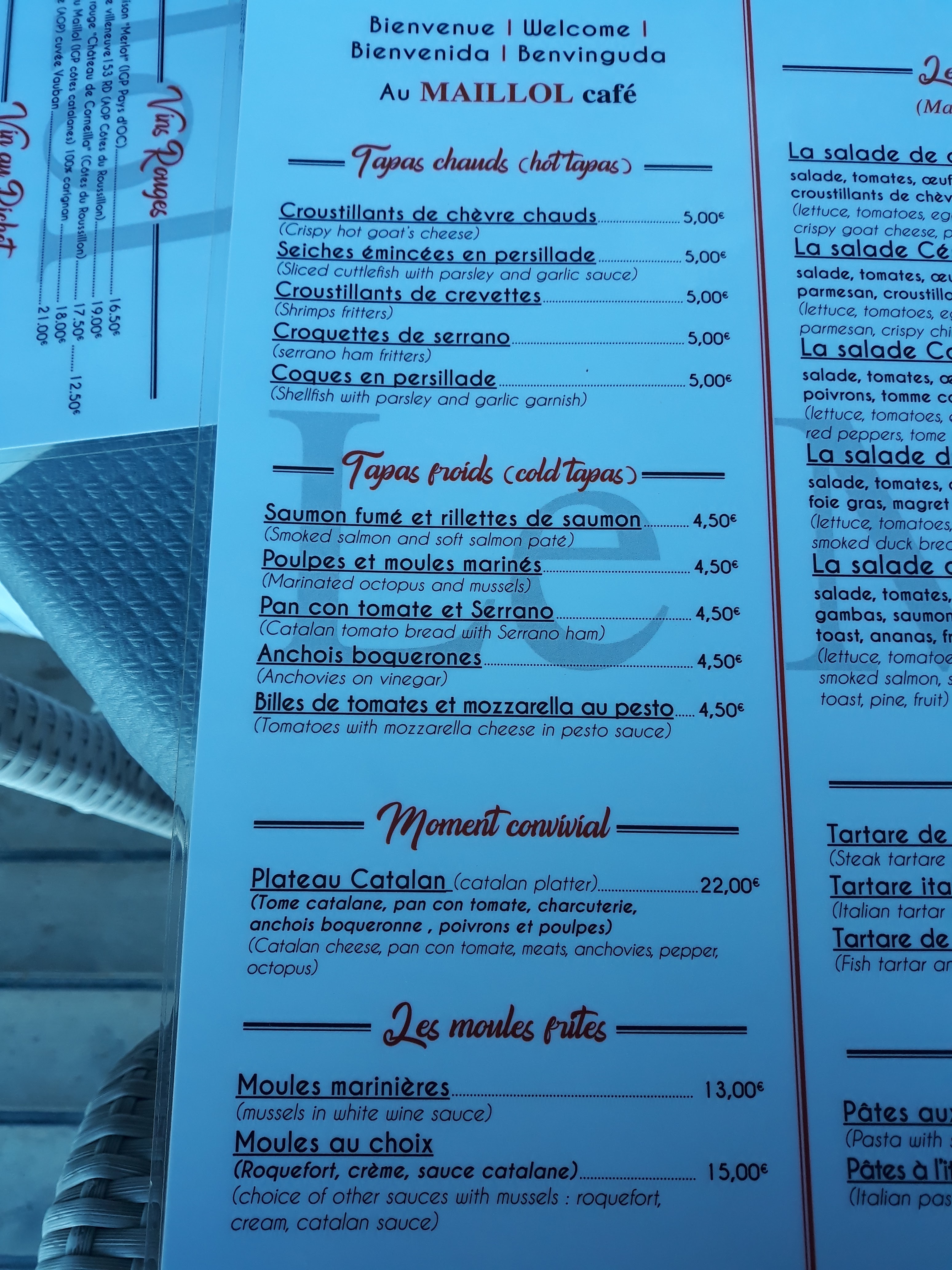 Service agréable et souriant,les plats correspondent à nos attentes, et très beau cadres vue sur mer et prix très raisonnable merci au Maillol Café 👍