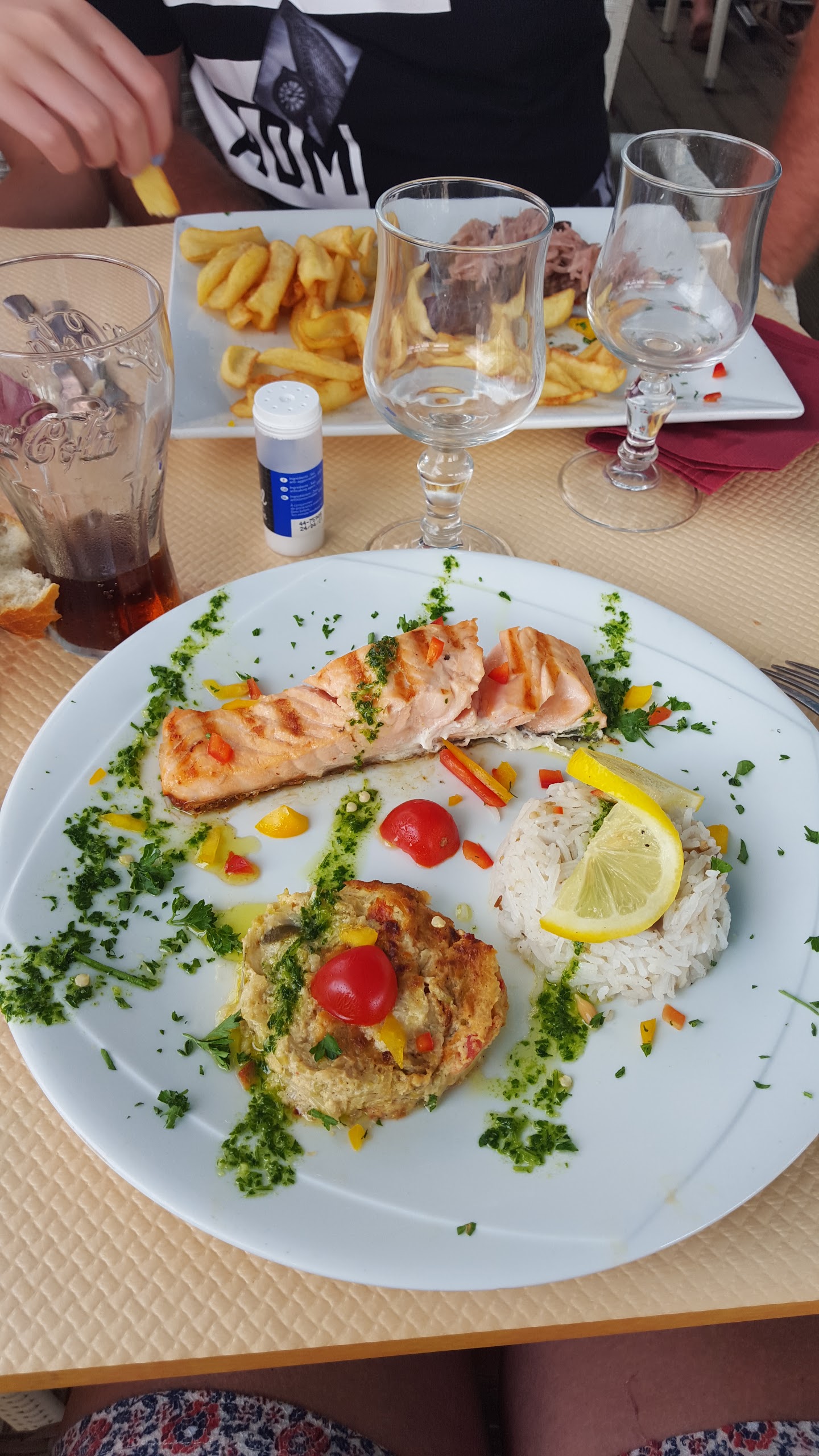 Service pas très rapide convenant aux vacanciers non affamés ou sans enfants impatients. Plats sans plus. Le cadre est agréable, et le calme appréciable mais après être allée côté port, je recommande d'aller plutôt au port pour manger où le choix de restaurants est beaucoup plus varié.