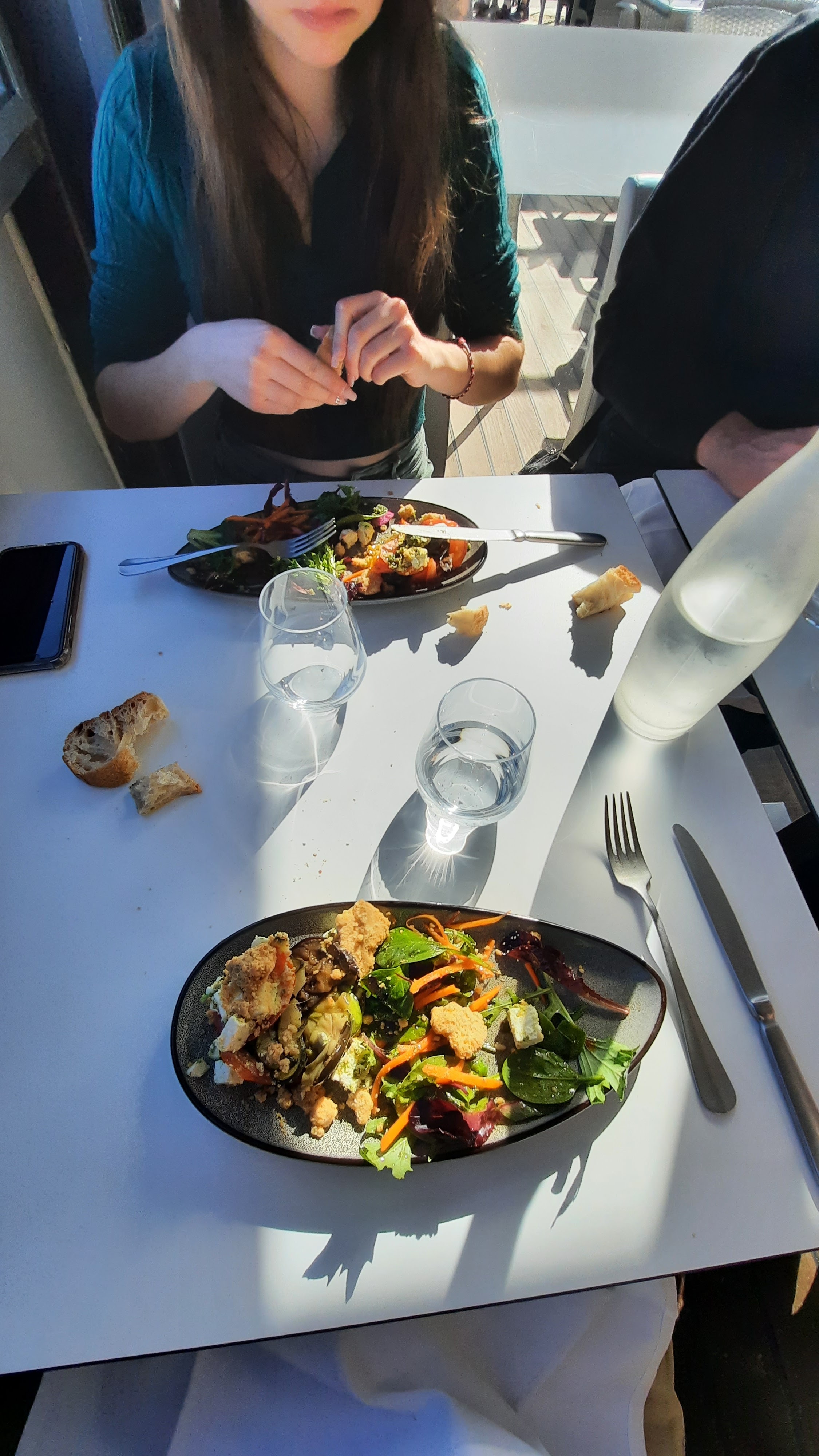 Nous sommes venus prendre à verre puis ensuite déjeuner. Les salades bien , mais par contre un gros bémol sur l,organisation du service. Attendre 20 min nos boissons ,puis ensuite 20 min pour commander et 20 min nos plats et pas d ,eau plate pour notre repas . Commander mais eu. Les serveurs en ont marre de cette mauvaise organisation. Ça promet pour leur saison. Bon courage pour les serveurs qui sont très professionnel