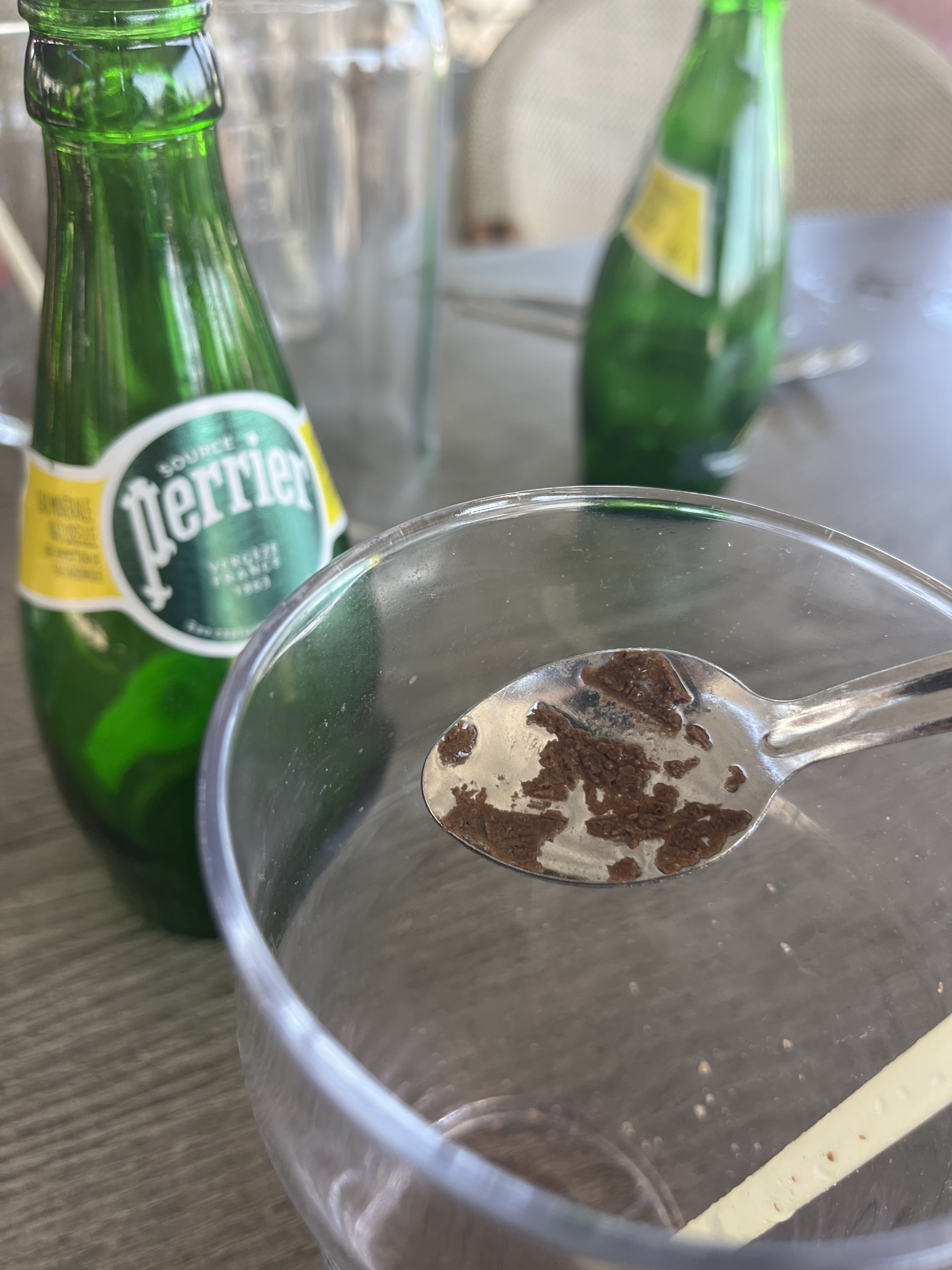 Petit sorbet 3 boules et un Perrier Le tout face à la mer Service correct c’est bien