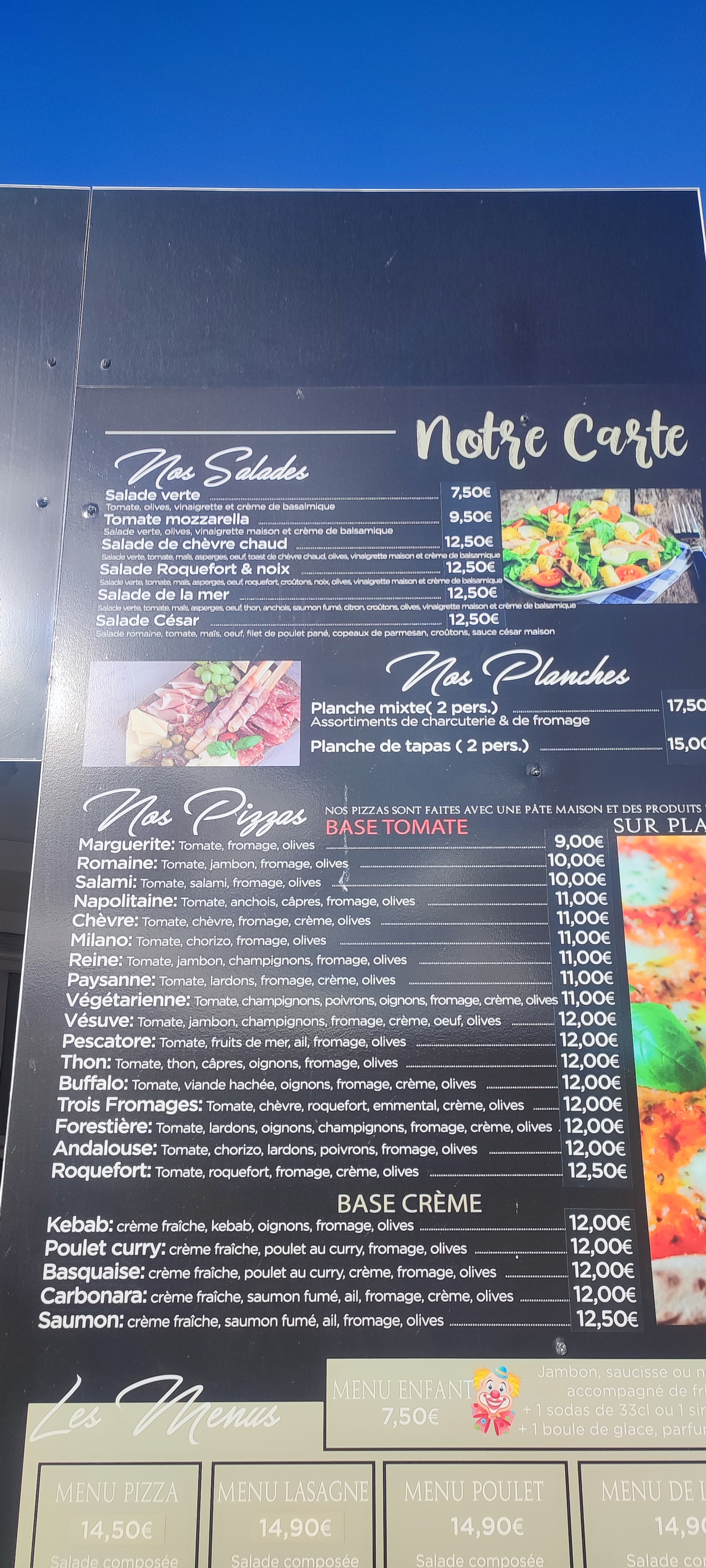 Très bon rapport qualité prix menu pizza crudités à 11€50 .Pizzas bien garnies pâte fine.Pas terrible en revanche au niveau de l'environnement : bordure de route...