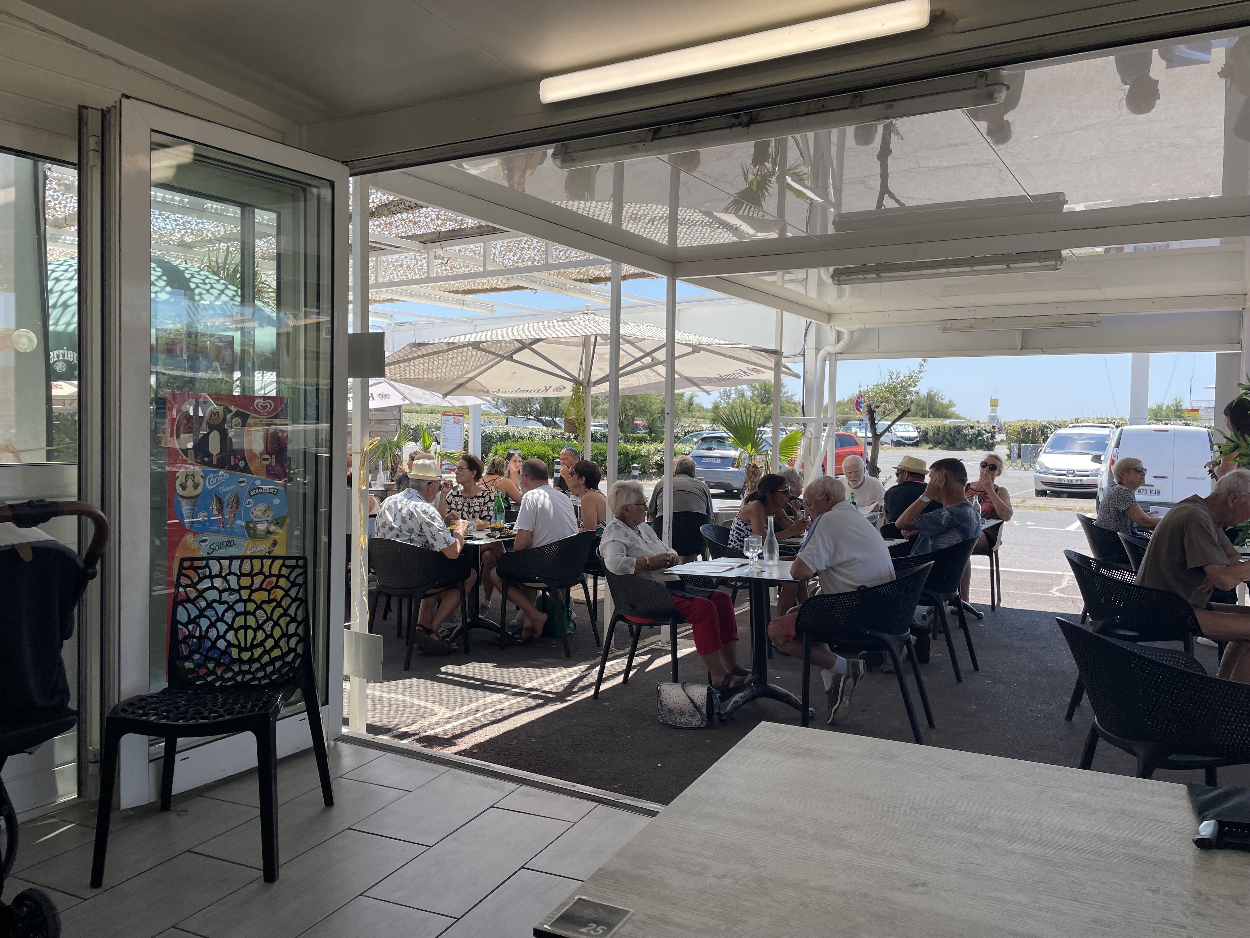 Plus de 20 ans que l’on a pour habitude de venir prendre notre formule petit dej lors de nos vacances au cap d’Agde ! Rien a dire ! Le service est parfaitement assuré, la terrasse est grande, ombragée et dernièrement nous somme venu mangé à 12h avant de reprendre la route, et bien nous n’avons pas été déçu non plus ! Ambiance de vacances conviviale non loin de la mer !