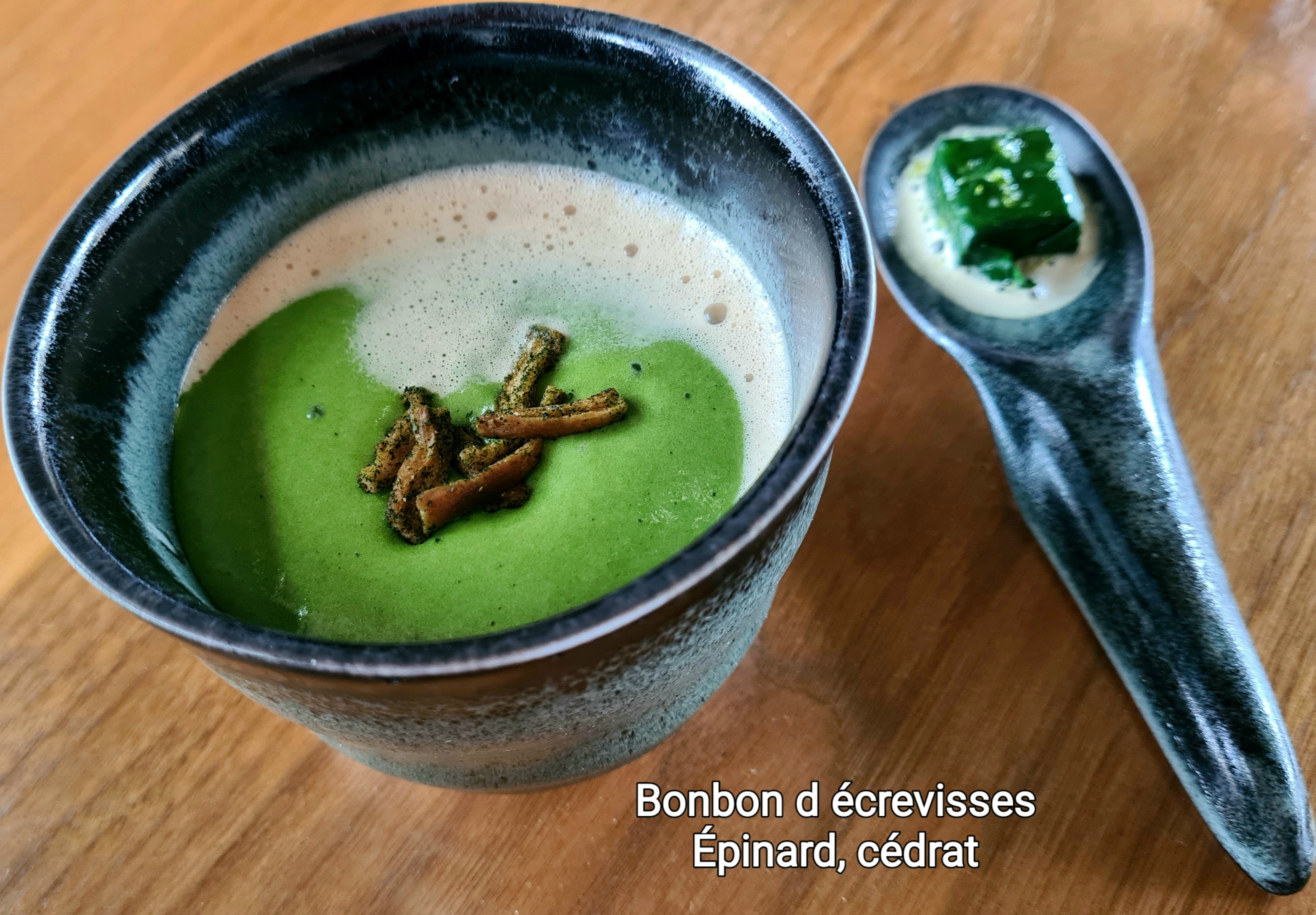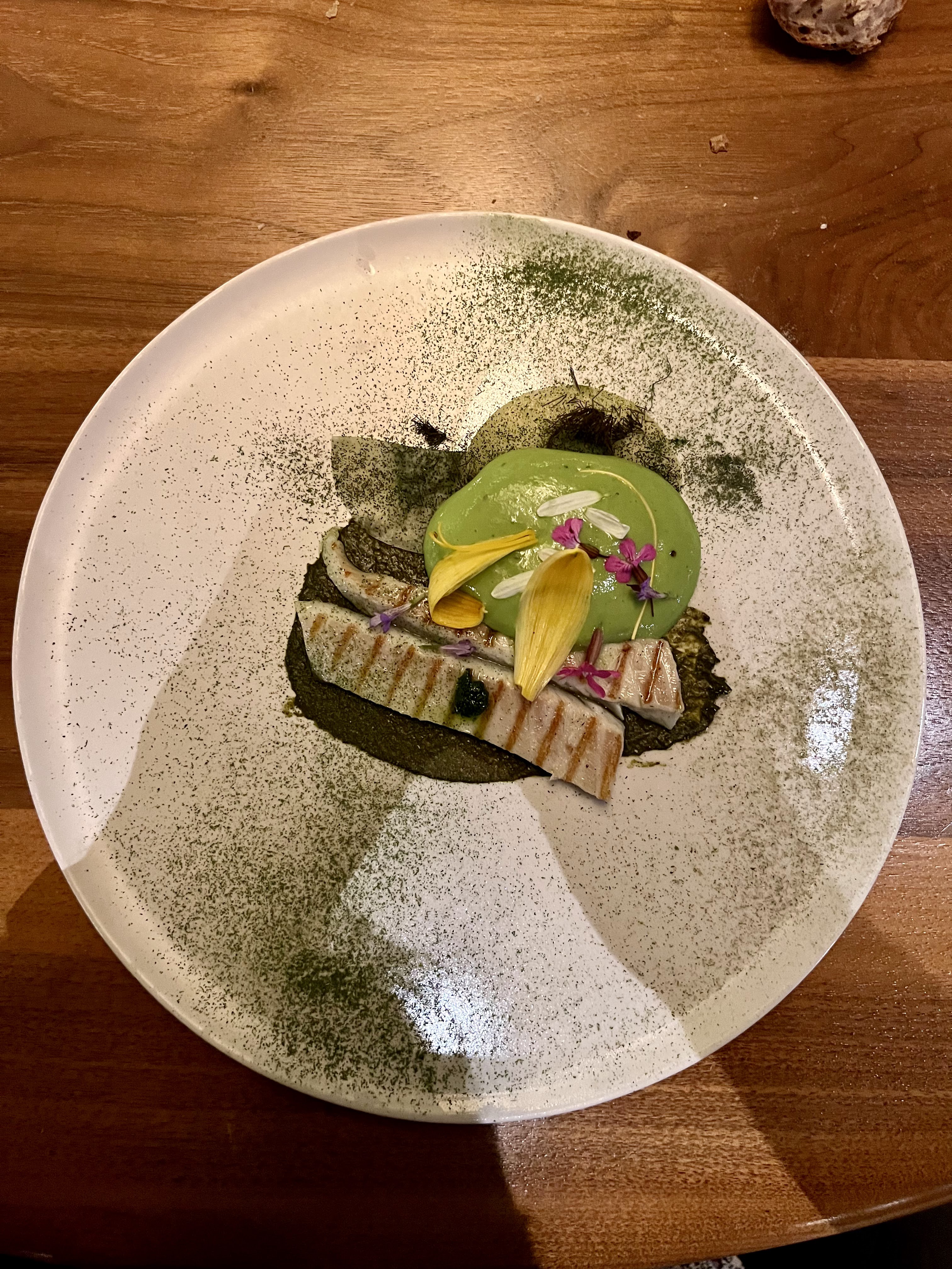 Génial délicieux décalé magique !! à découvrir déguster un univers onirique et pourtant ancré dans la terre une cuisine inventive alliant le local à l inaccessible un service éblouissant et subtil bref une soirée mémorable !☆