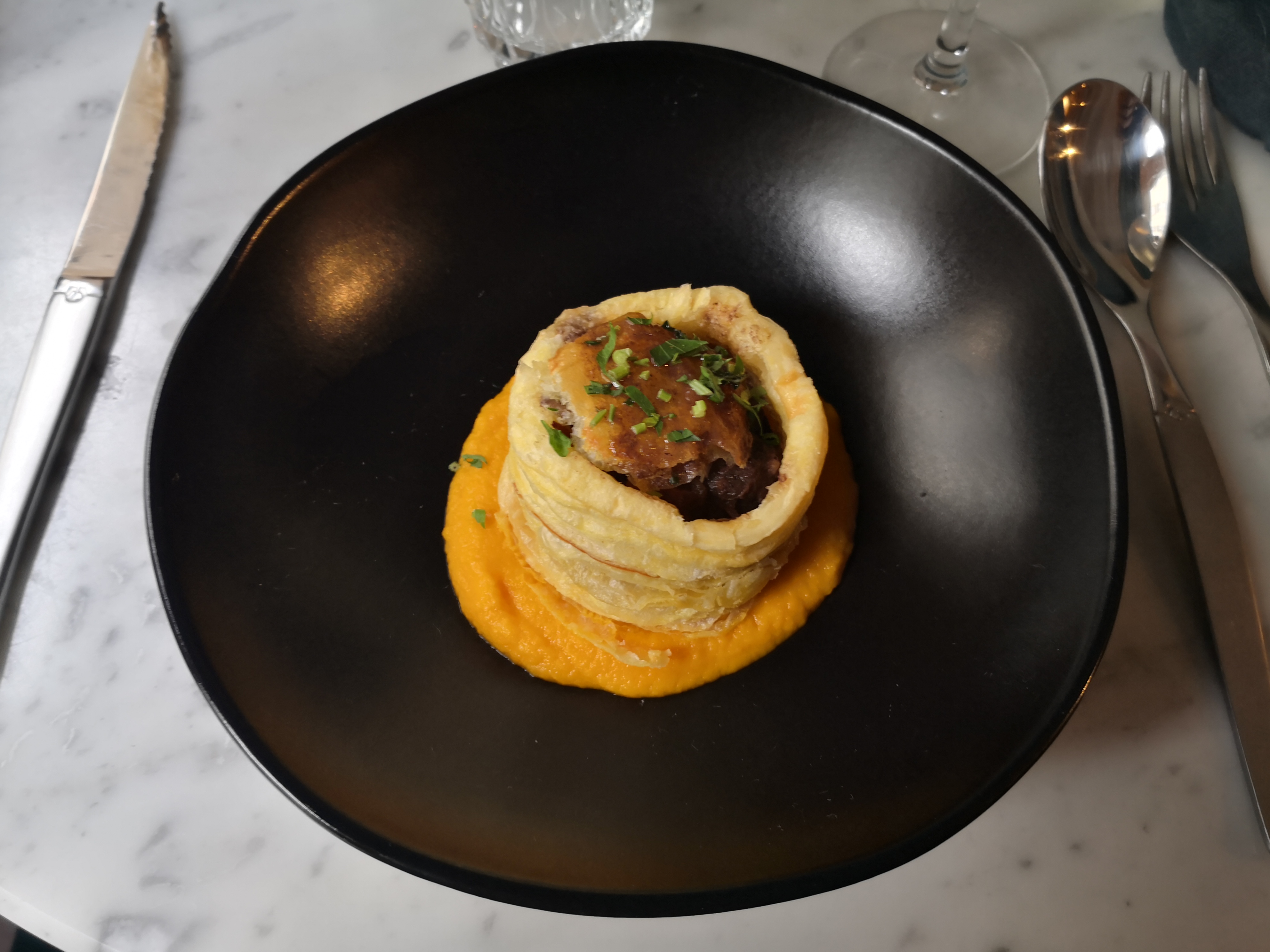 Très belle adresse à Nantes, beau restaurant et service impeccable. Nous avons tout de même été déçu par la cuisson de la thonine qui n’était pas un mi-cuit comme indiqué mais bien trop cuit et du coup sec… j’aurais du le retourner en cuisine. Sinon le plat (26€) manquait de gourmandise… Le dessert était excellent et gourmand !