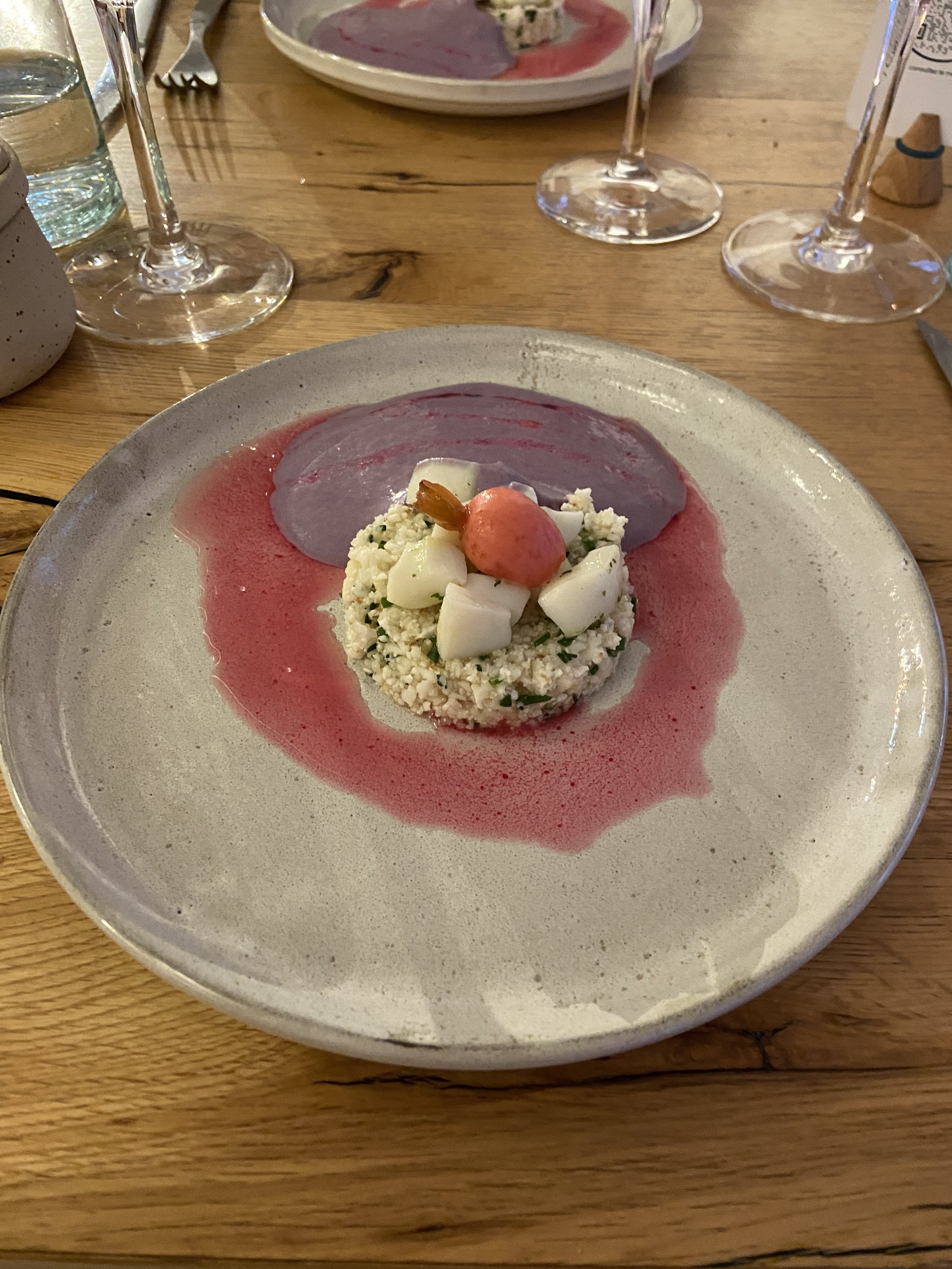 Un vrai concept affirmé que je recommande vivement. Un bon service avec des produits de saison. Deux belles découvertes sur le blanc et le rouge Je recommande vivement