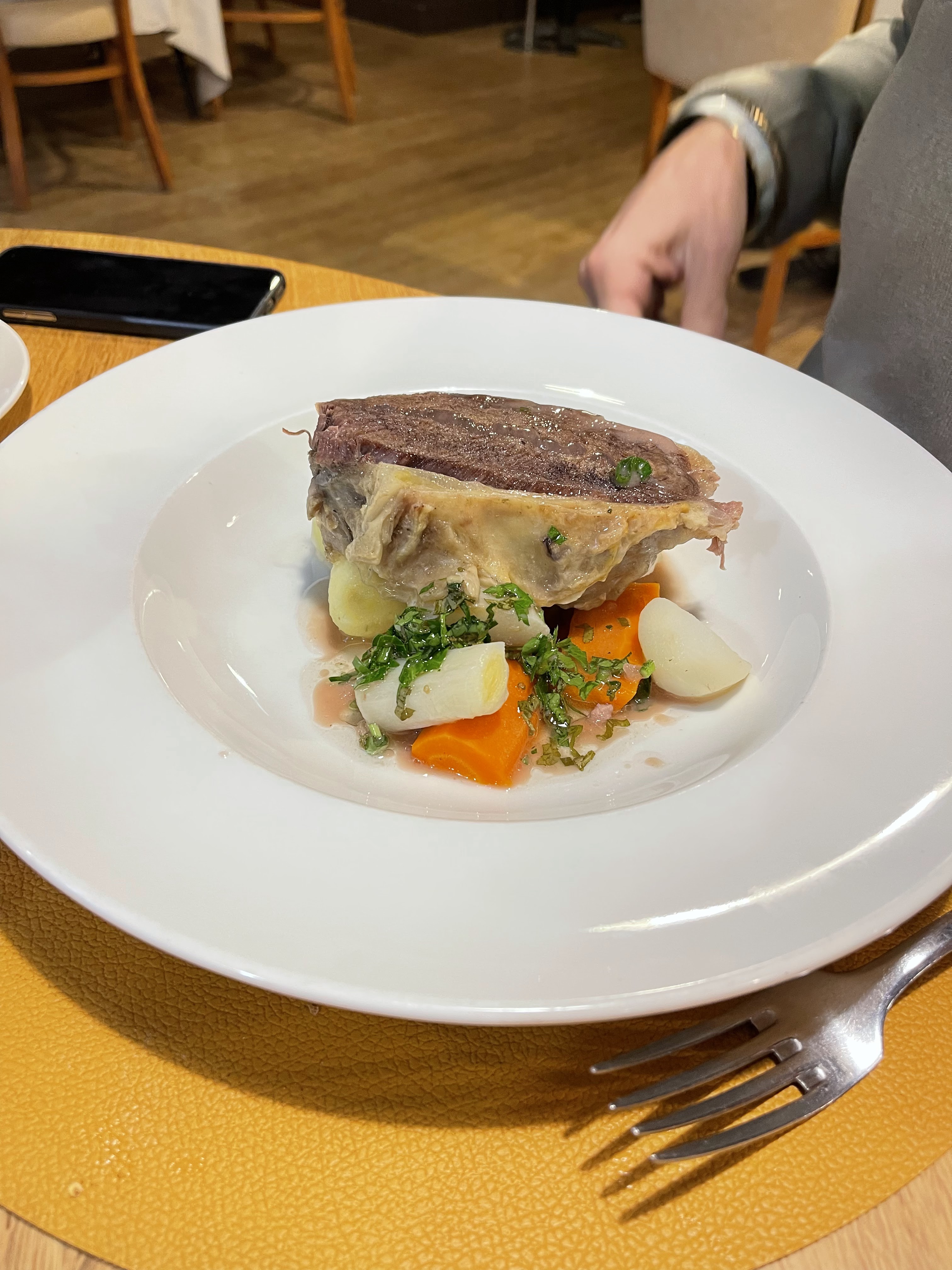 Cuisine bourgeoise très bien exécutée, s'il faut vraiment trouver un défaut je dirais que c'est peut-être un poil salé. Les portions sont généreuses. Le service est agréable et rapide. Le cadre est sympa, pas trop bruyant malgré une salle pleine lors de notre venue.