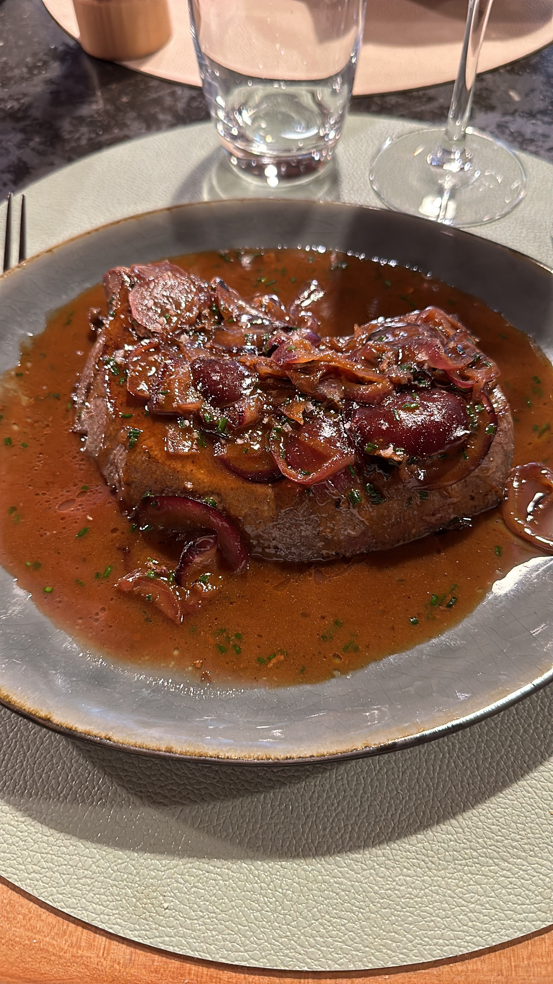Cadre parfait, belle décoration, personnel souriant et aux petites attentions, service assez rapide. En revanche, le prix ne se justifie pas, il y a pas mal d'autres restaurants sur Nantes offrant une qualité similaire à un prix moindre. Nous n'avons pas senti le côté prestigieux en dégustant ces plats. Nous avions pris le pavé de rumsteak, il était très bon et cuit en adéquation avec notre demande. En revanche, on a beaucoup cherché les légumes qui étaient censés l'accompagner... On s'est même demandé si le cuisinier n'avait pas fini le fond du paquet... Sur une simple demande, le serveur nous a amené des légumes et nous avons pu nous régaler :)