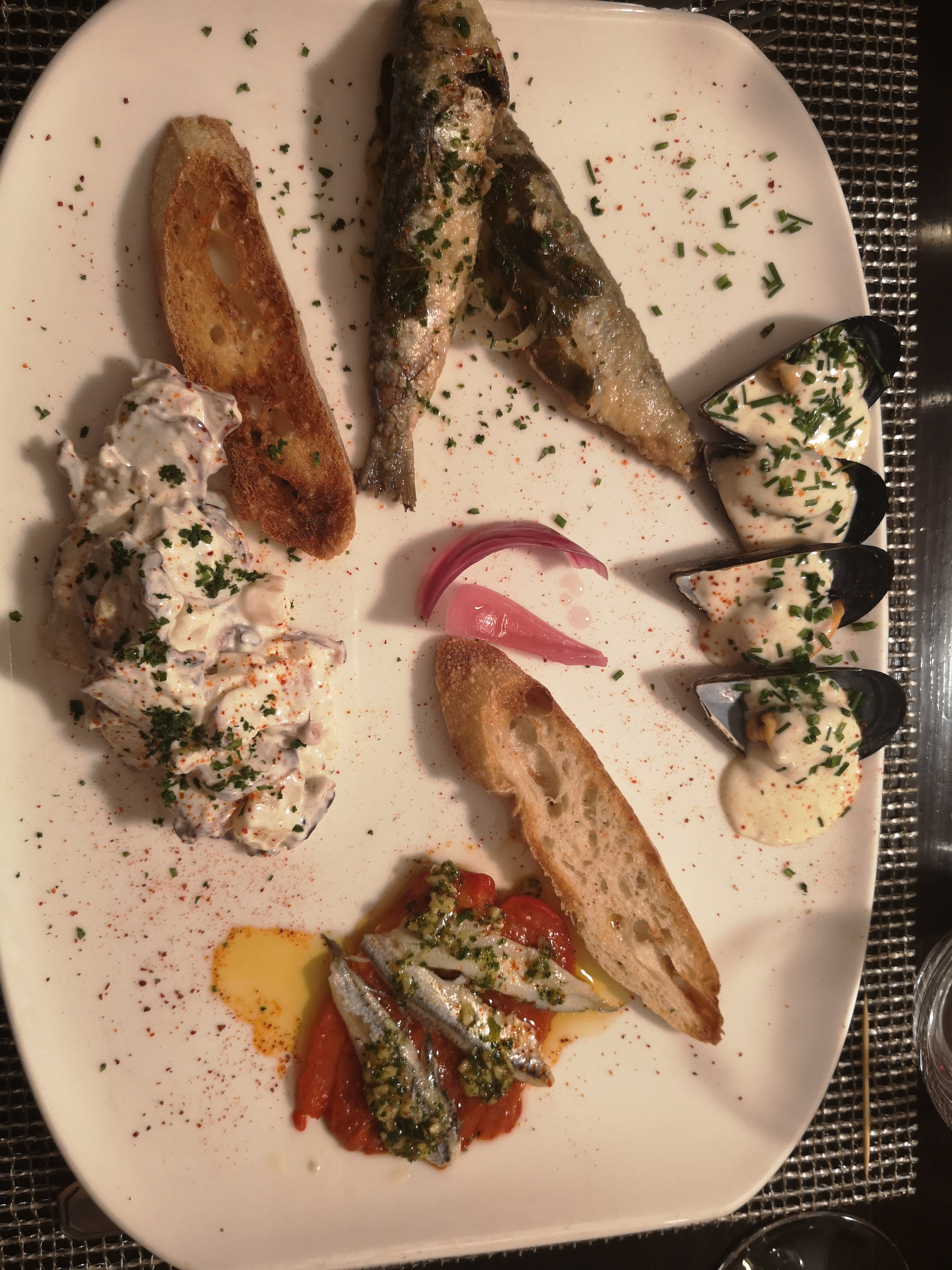 On y a mangé divinement...les coquillages, les moules farcies pt délice😋. Un très bon acceuil et très attentif à l allergie d un membre du groupe... Un Personnel et lieu fort agréable.