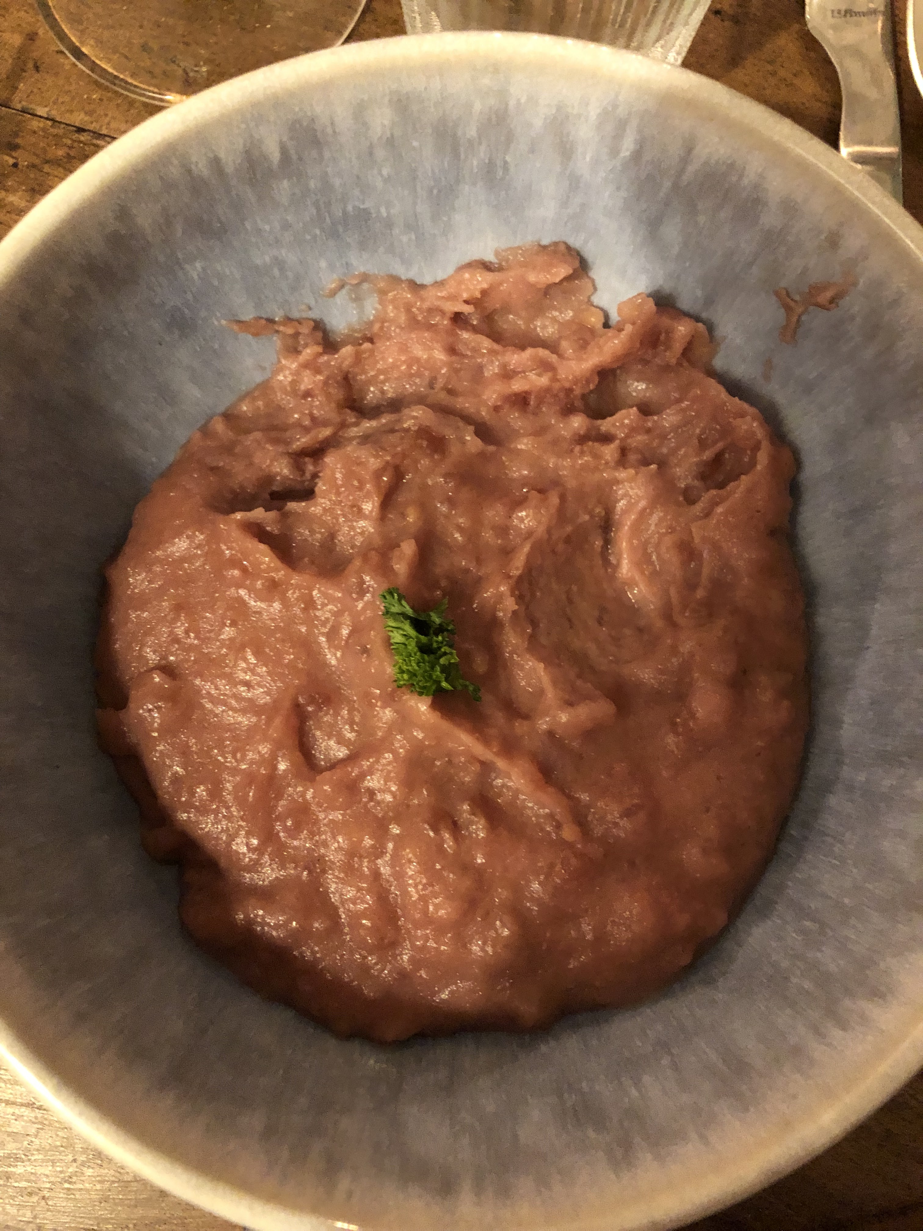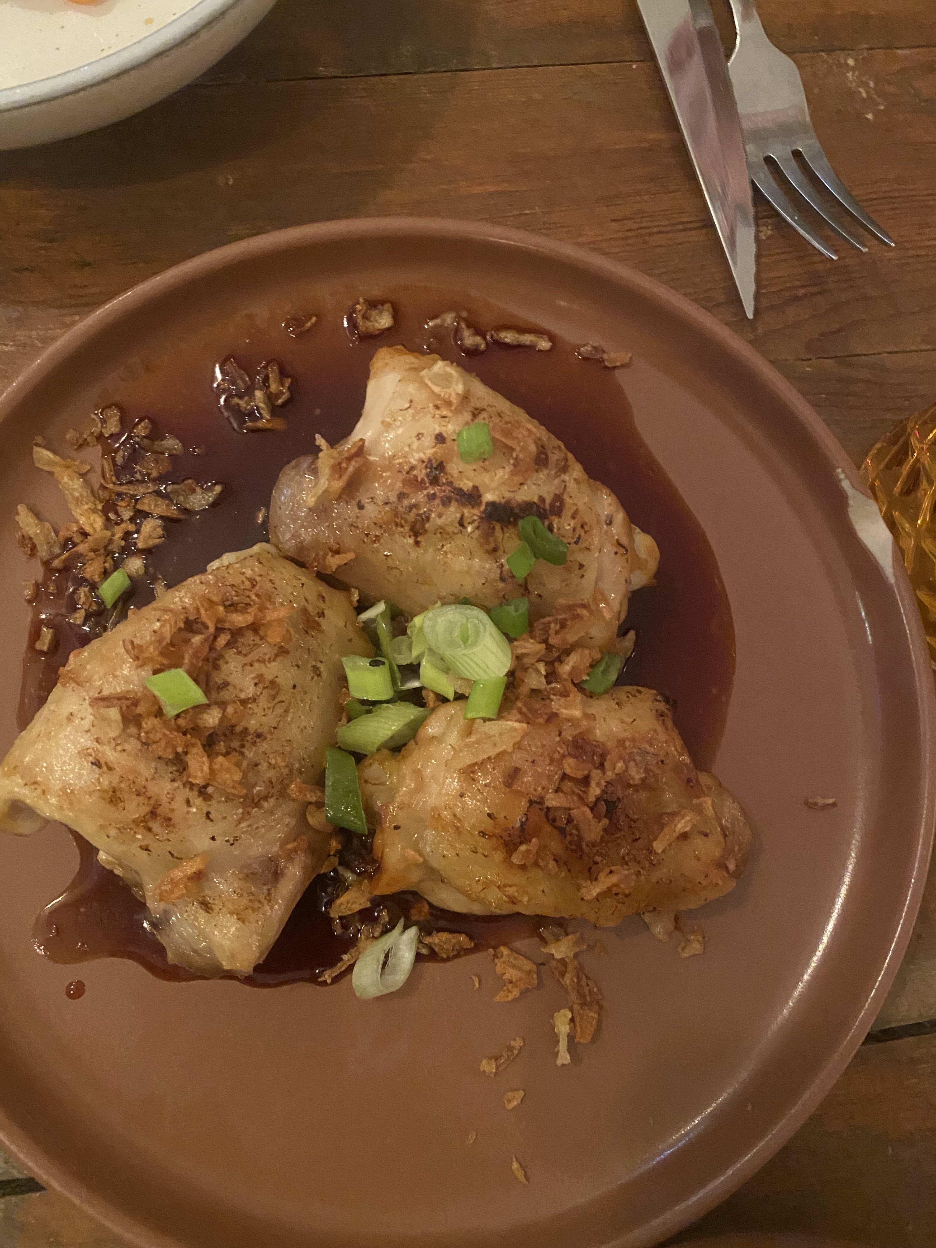 Honnêtement, si le concept de sélectionner l'une des 3 options de viande et autant d'accompagnements que l'on souhaite semble original, sa limite est atteinte presque instantanément. Les portions sont petites - elles pourraient être le double de la taille et vous auriez toujours envie. J'ai commandé le poulet avec une sauce soja si intensément saumâtre qu'elle a dominé toutes les autres saveurs qui étaient censées être là. Les pommes de terre écrasées et la crème étaient savoureuses, mais mal servies. Les fuites bourrées se contentaient d'éclabousser d'une persillade réinventée. Les nouilles de carottes pleines de saveurs, mais encore une fois, de la taille d'une tapas. Mon invitée avait commandé du canard qui avait été cuit si lentement qu'elle avait jeté des morceaux de viande crue - pour le bœuf, peut-être, mais il vaut peut-être mieux l'éviter pour le magret. Enfin, la dissonance cognitive entre la déco rustique et les prix gastronomiques doit être abordée. Les sièges sont constitués de chaises d'école en bois dur qui claquent et grincent lorsque vous vous asseyez. Les tables en bois ont tendance à absorber et à retenir les gouttes de nourriture et de boisson, les laissant collantes au toucher, même lorsqu'elles sont essuyées. Mais pour un tarif simple, nous nous attendions à des tarifs plus élevés. Avec le vin, le déjeuner pour trois coûtait environ 140 €. Pour le spot et les portions, j'espérais normalement payer un tiers de moins.