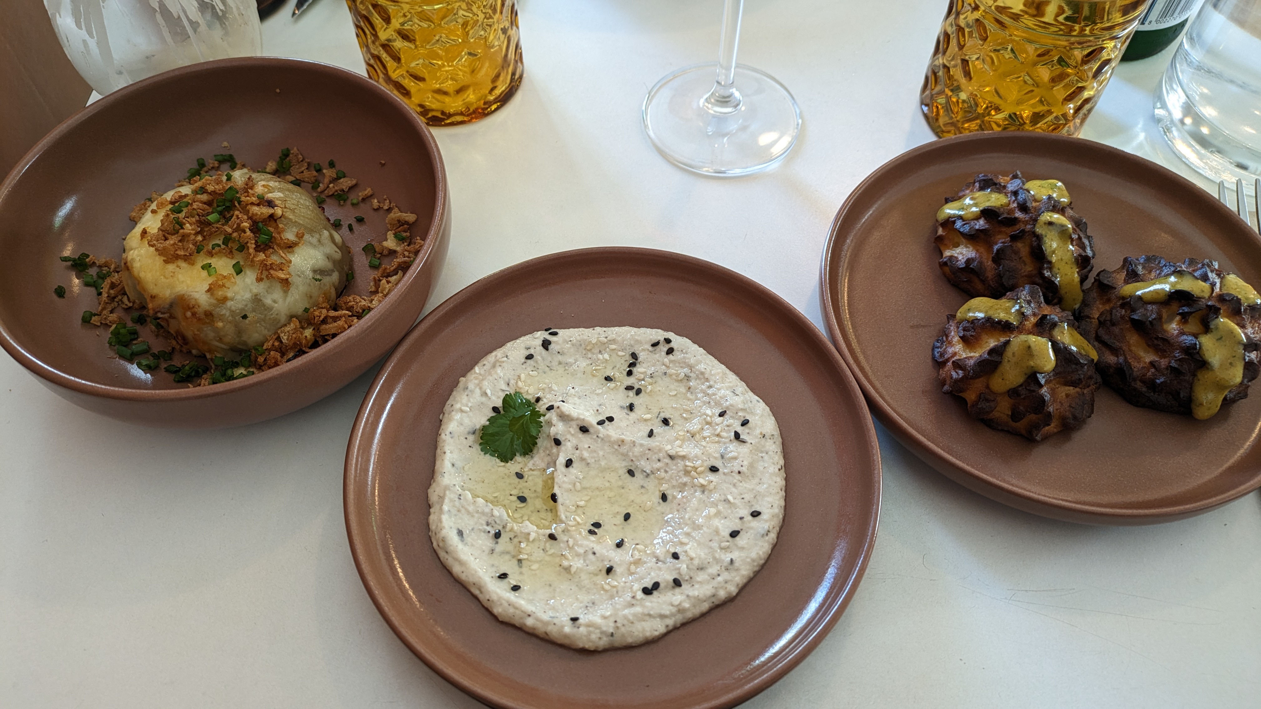 Endroit charmant et cuisine merveilleuse! Nous étions 6, avons pris toute la carte et tout se marie très bien! Tous les légumes sont savoureux, parfaitement assaisonnés, les boulette de kefta superbes et le travers de porc à tomber! Pour les desserts, pensez à les réserver en arrivant il n’y en aura peut etre plus à la fin! La pêche rotie et le snickers 2.0 sont très bons! Personnel au p’tit soin, déco soignée on reviendra quand il fera beau pour le jardin! La carte change tous les 2 mois il parait!