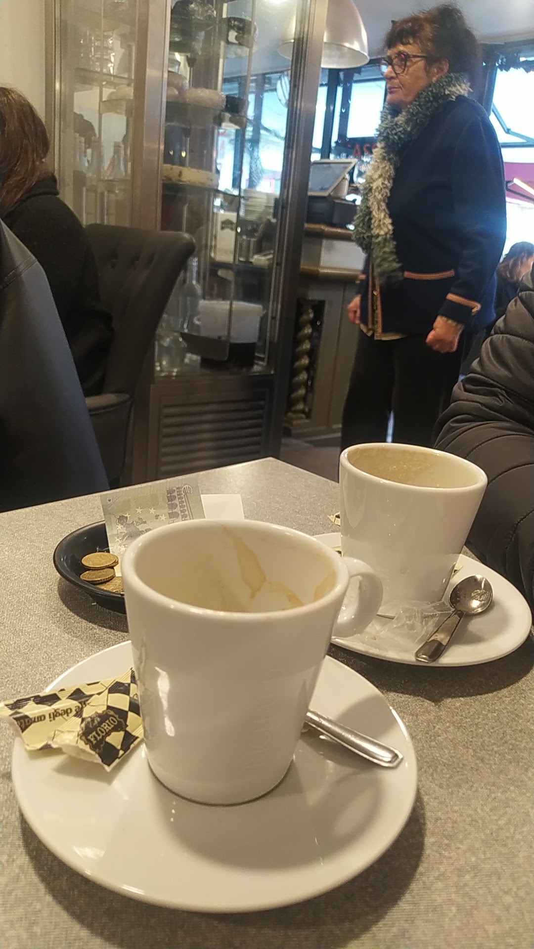 Bel endroit pour prendre un café. Le serveur qui notait nos commandes était vraiment sympa mais il y avait d'autres serveurs qui n'étaient pas très accueillants. De plus, ils n’avaient pas de menu écrit sur une carte mais sur un tableau noir qu’ils avaient toujours sur eux. Bon expresso après tout