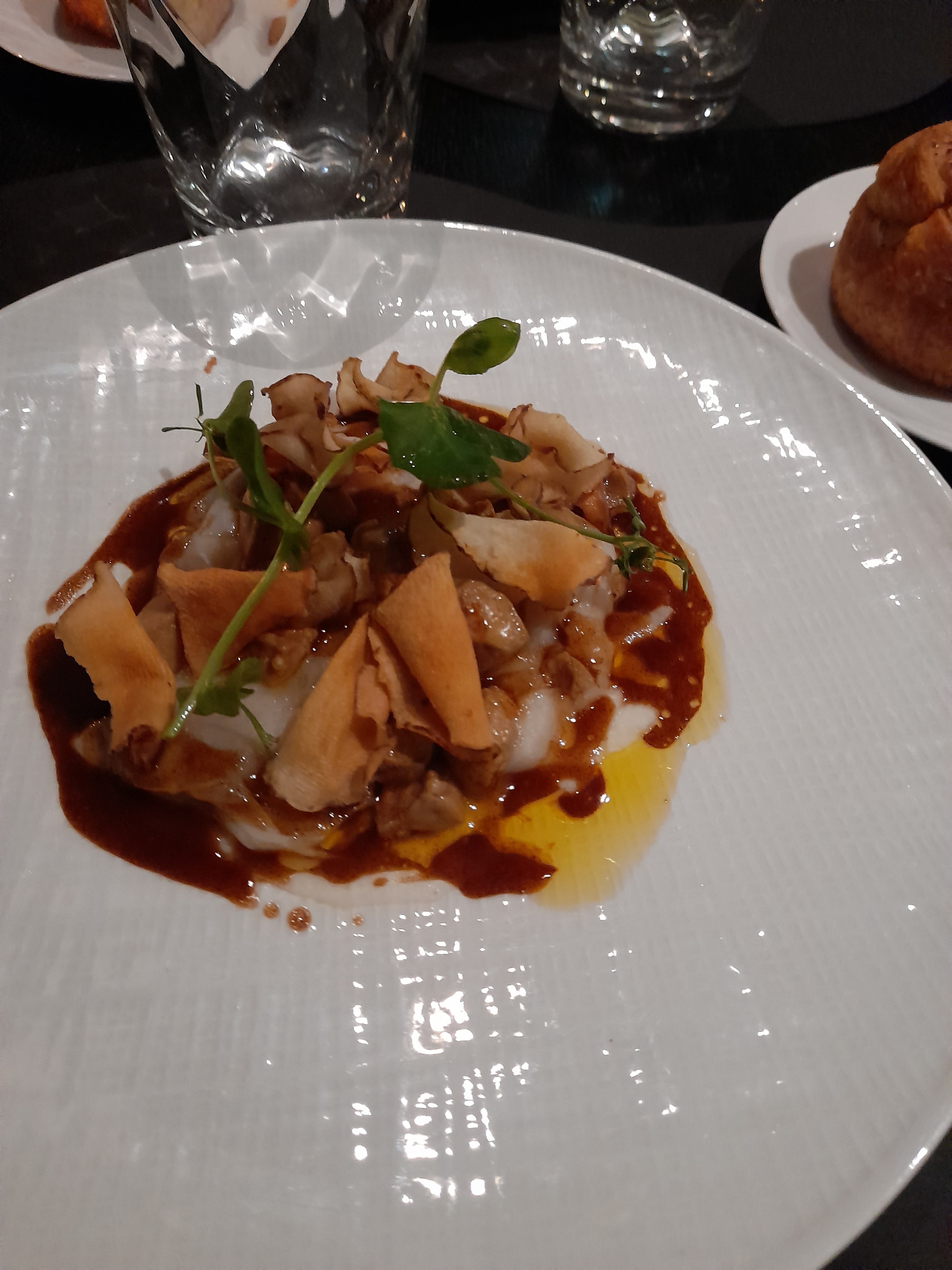 Un delice ! Beau et bon. Des menus surprenants et le personnel au petits soins. Nous avons également beaucoup apprécié la visite du chef à notre table et ses explications. Sans oublier une déco design et une ambiance trés agréable.