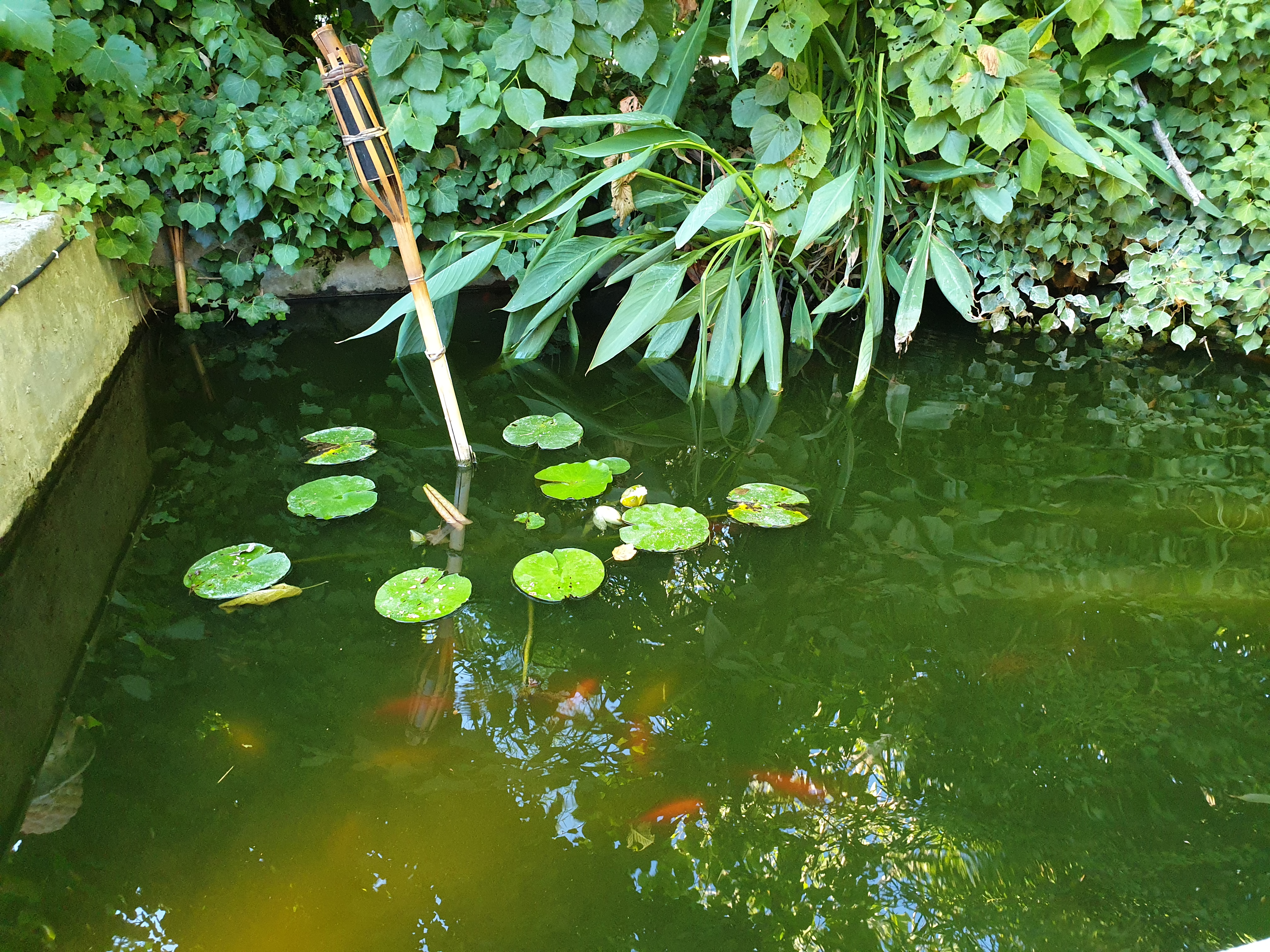 Cadre exceptionnel. Aperçu dans un jardin calme et enchanteur à côté d'un bassin d'eau de la rivière. Le personnel est très accueillant.
