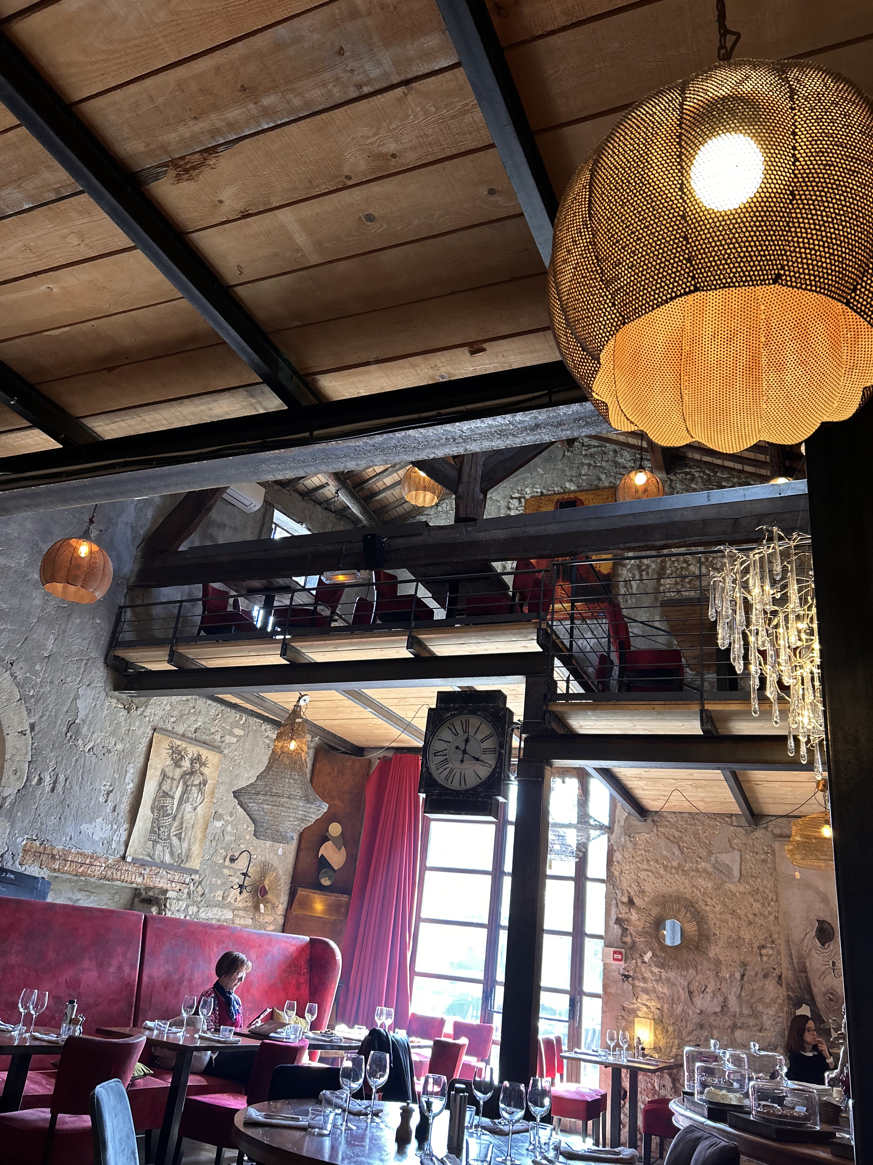 Super lieu découvert aujourd’hui. Le lieu est simplement atypique mêlant le décor d’un corps d’une ancienne grange avec le style loft. Dommage que le temps ne s’y prêtait pas mais la terrasse est tout aussi chaleureuse. La cuisine y est excellente et relativement abordable. La serveuse malgré son jeune âge était très professionnelle et sympathique. Petit plus: la boutique permettant d’acheter le vin bu à table ( beaucoup moins cher ). A découvrir
