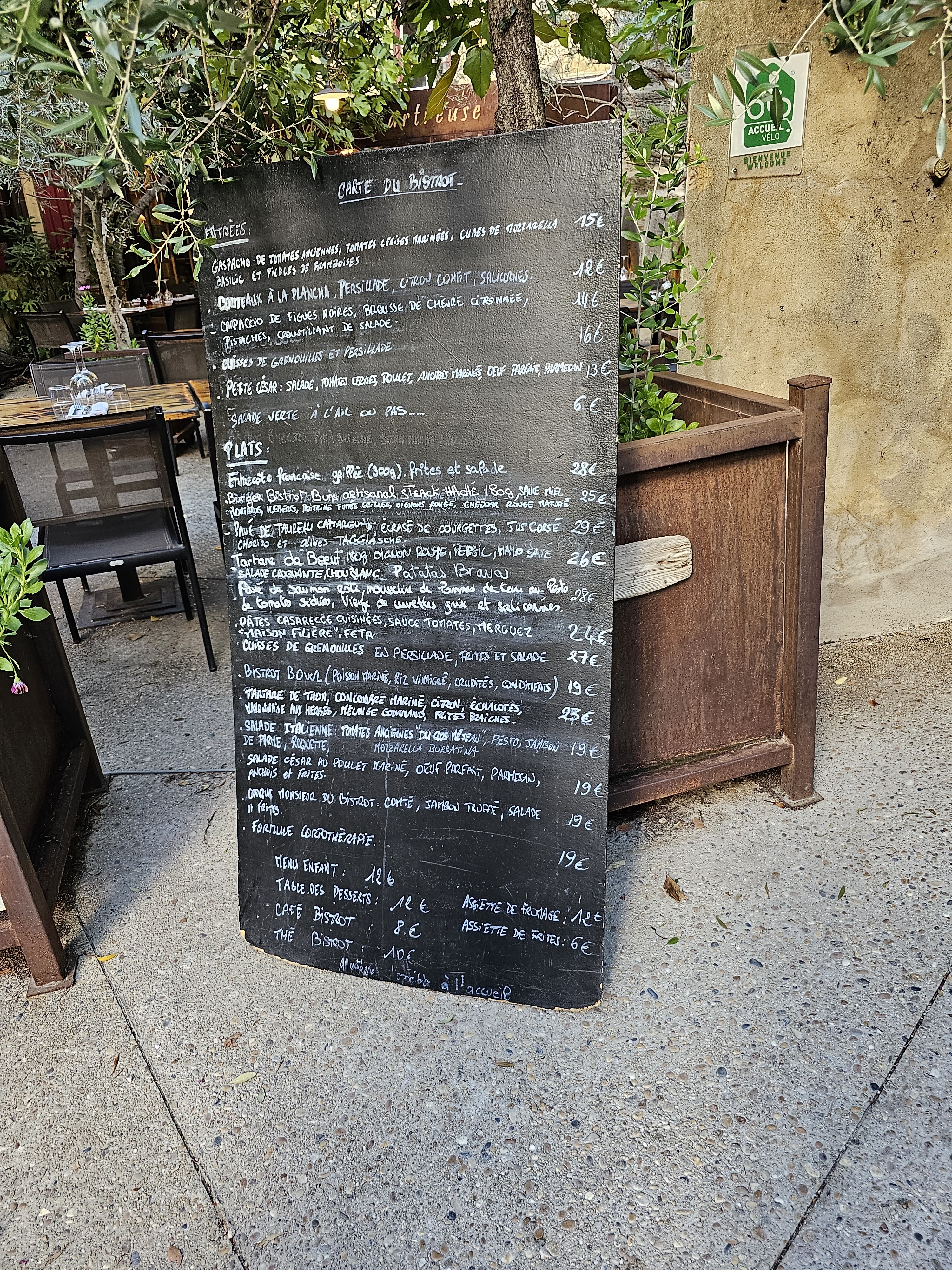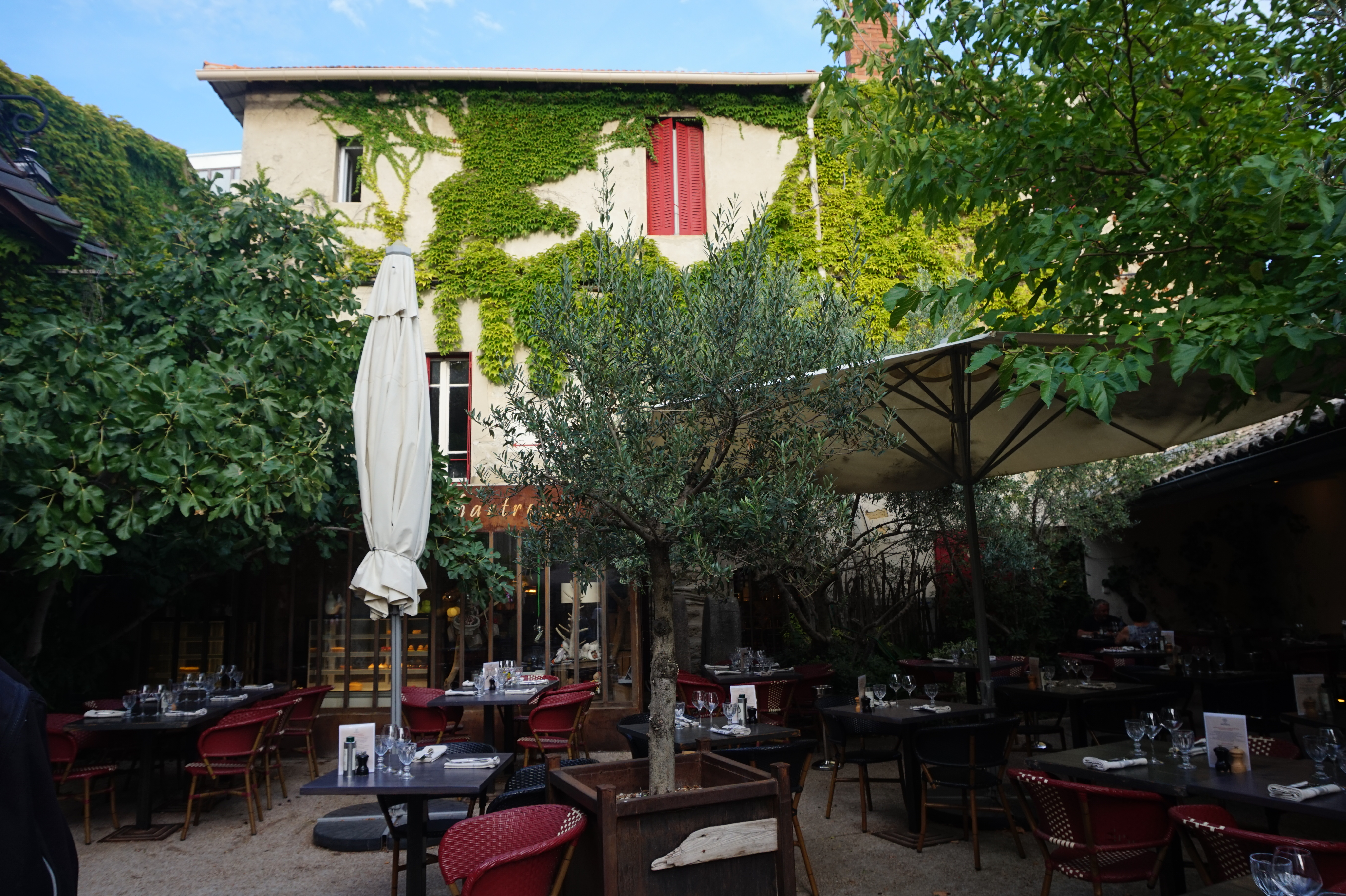 Au détour d’une ruelle nous découvrons ce lieu plein de charme une magnifique terrasse ombragé, un intérieur art déco, arrive la carte et la première déception, croque monsieur, burger etc heureusement des cuisses de grenouilles étaient proposées parmi le reste, accompagnement unique proposé « des frites ». Au vu du lieu je m’attendais à des plats plus travaillés. Une étoile en moins pour le manque de créativité des plats et pour le service, l’équipe n’est pas souriante ou accueillante. Dommage car ce resto a beaucoup de potentiel et il manquait peu pour que notre expérience soit parfaite.
