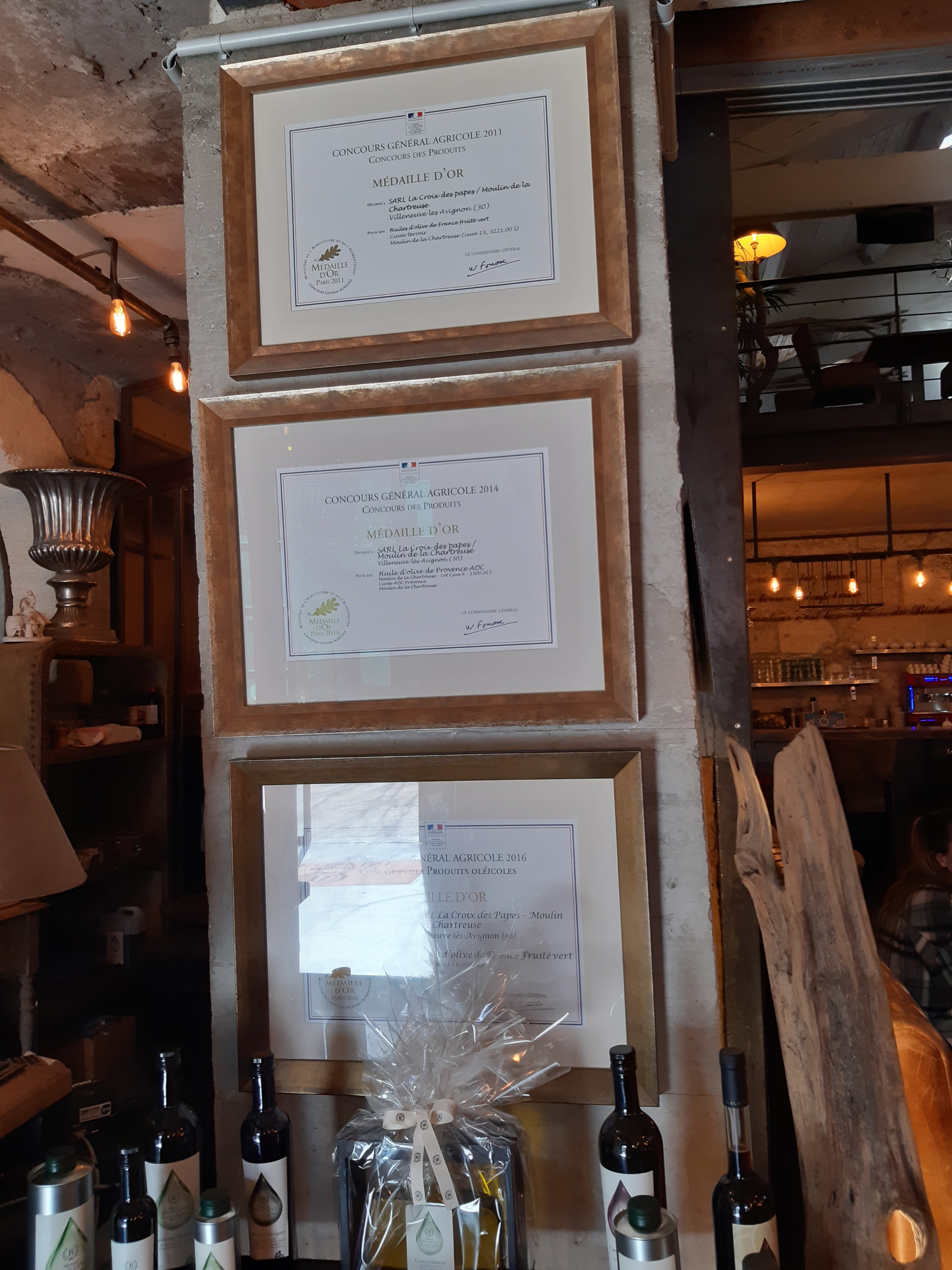 Nous y avons déjeuné hier midi Nous ne connaissions pas et nous sommes arrivés dans un cadre enchanteur!! Tout était parfait! L'accueil du personnel. La décoration est exceptionnelle et très atypique. C'est immense et plein de choses à découvrir ! Le repas était excellent !! La Foccacia à l'huile d'olive offerte à notre arrivée, était exceptionnellement délicieuse . Nous reviendrons c très certainement des que possible. Nous habitons sur Bagnols-sur-cèze.. Je recommande vivement!! Merci à la jeune serveuse qui c'est occupé de nous. Elle se reconnaîtra nous avons le petit chien blanc!! Et merci à la dame de la boutique pour les explications sur l'huile d'olive À très bientôt