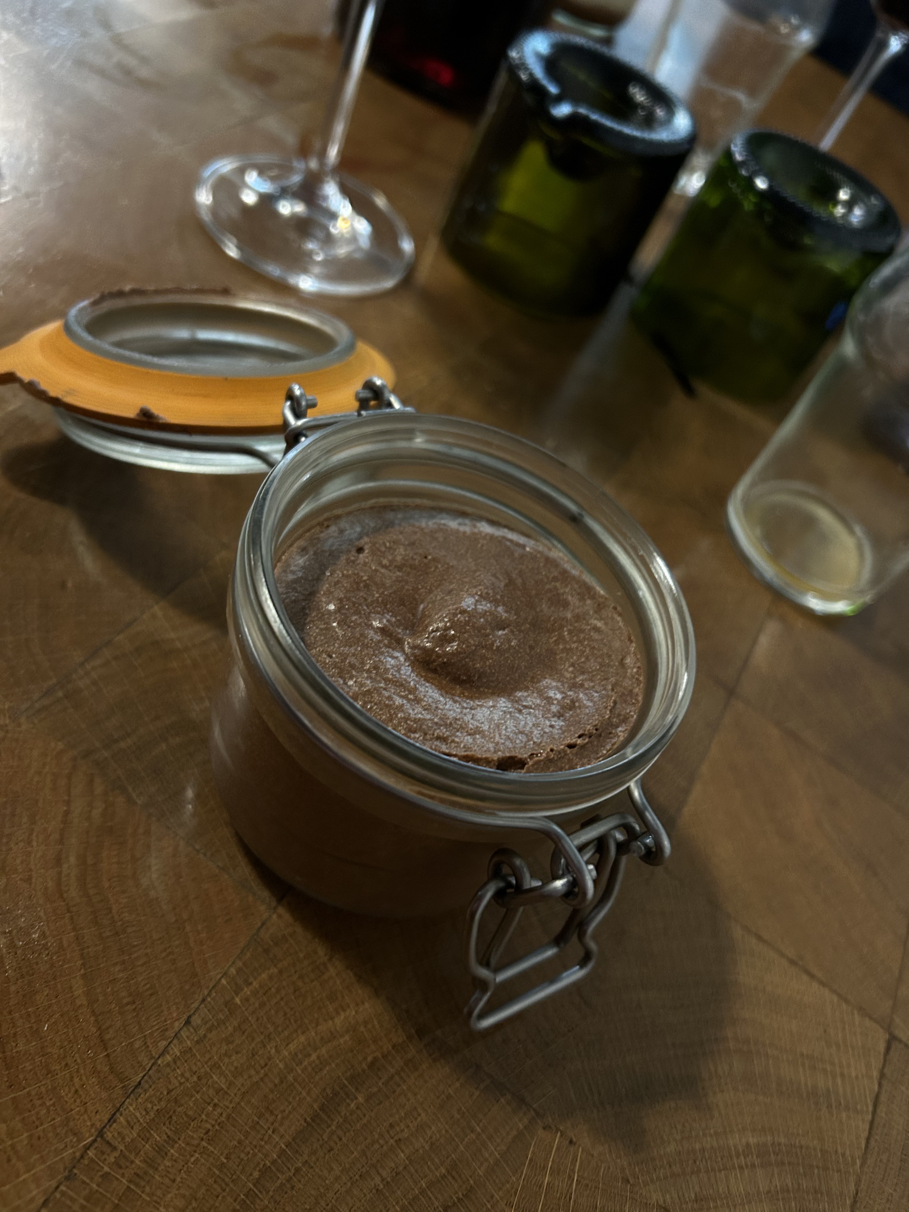Principe de dingue ! Le principe et un rappel de la boucherie, les table son des billots, chaque détail a était très bien pensé. Plat unique, côte de bœuf de 1kg à partager ou à manger solo (ça passe bien) En apéritif pâtés servit comme chez le charcutier dans son papier Ensuite arrive la côte cuite comme on demande, et la le festin commence ! Le vin que l’on paye au centimètre, une très bonne idée ! Puis pour finir par une petite mousse au chocolat maison, un délice.