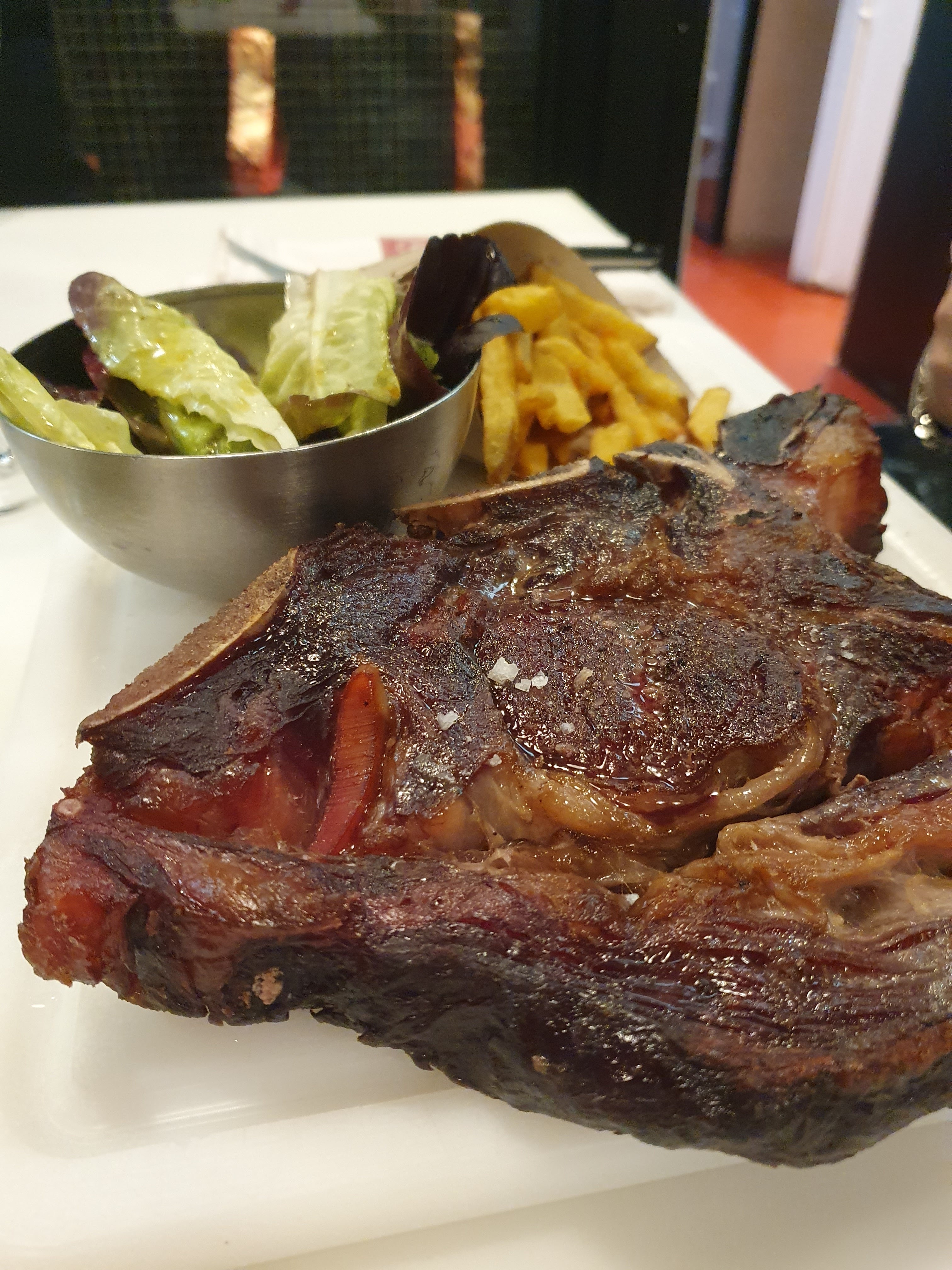 Restaurant uniquement de côtes de bœuf de 1kg , très bonne viande on en a pour son prix !
